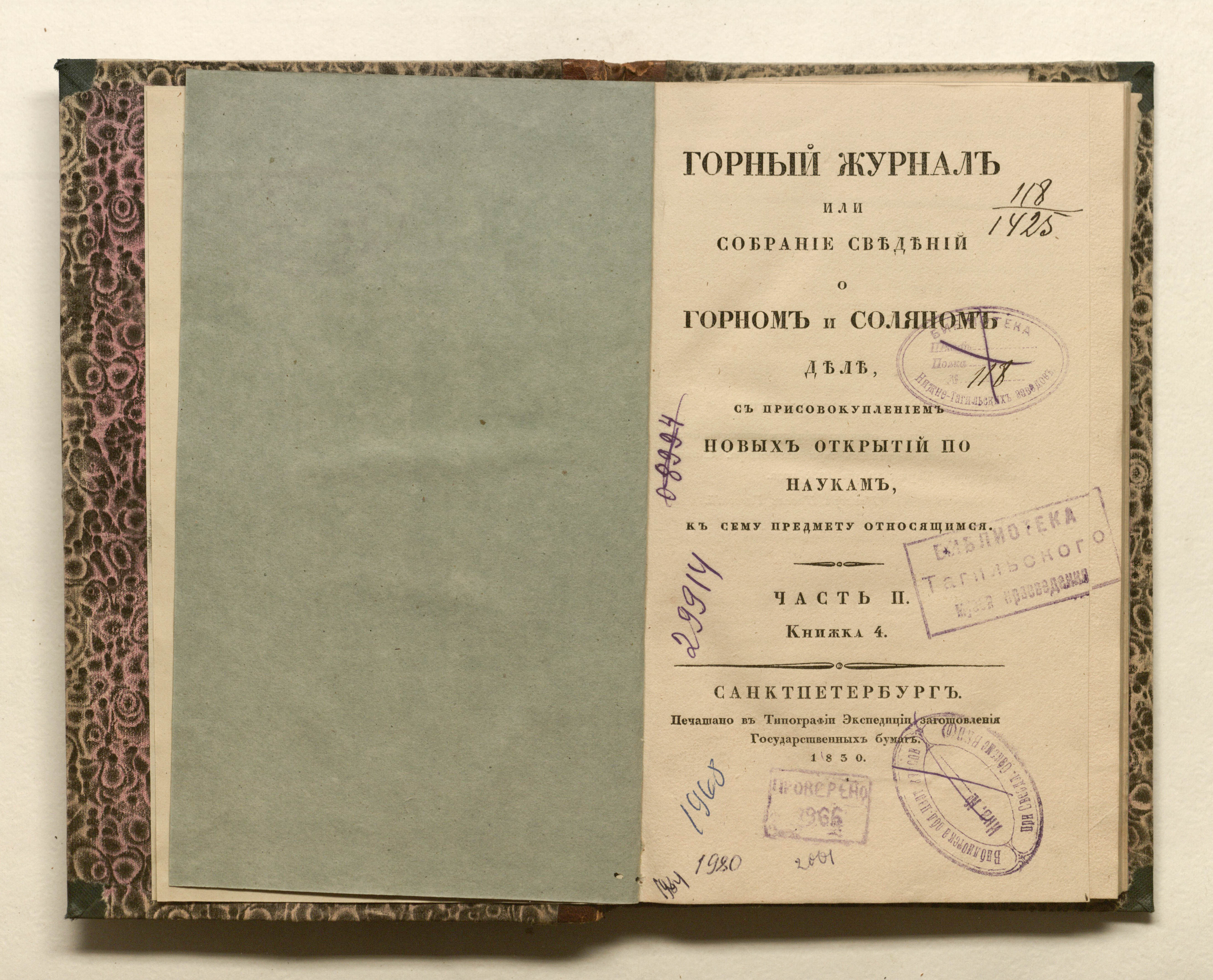 «Библиотека Нижне-Тагильских заводов. № 118» (форзац, изд. обл.);