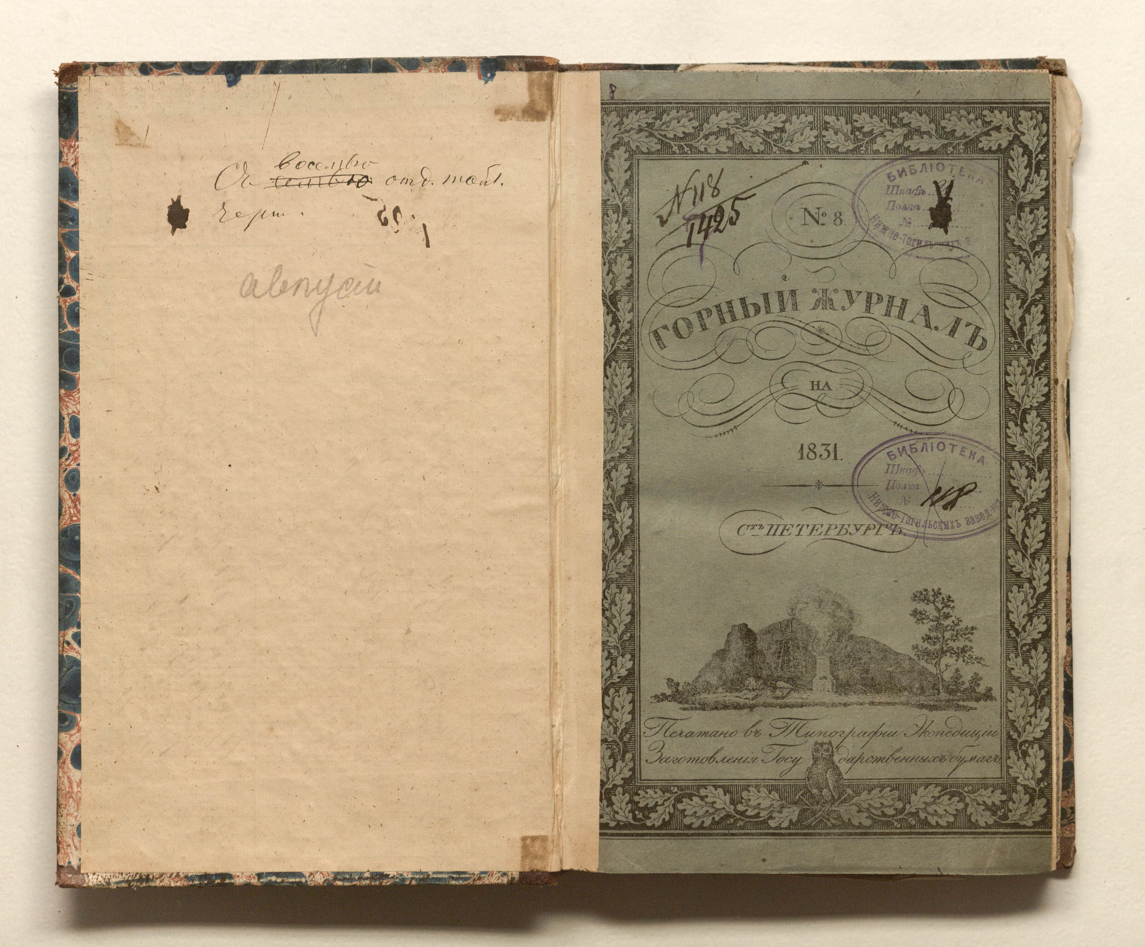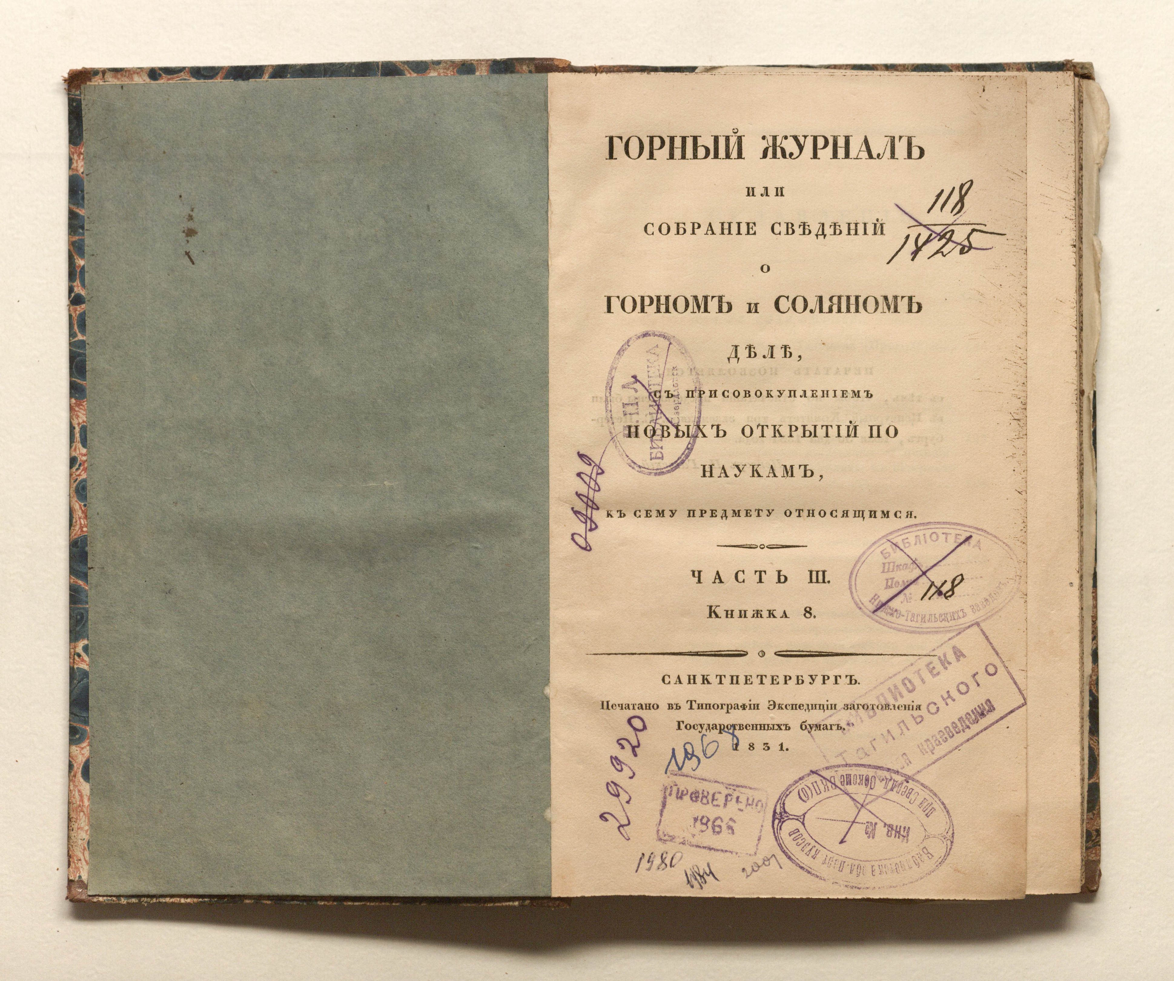 «Библиотека Нижне-Тагильских заводов. № 118» (изд. обл., тит. л.);