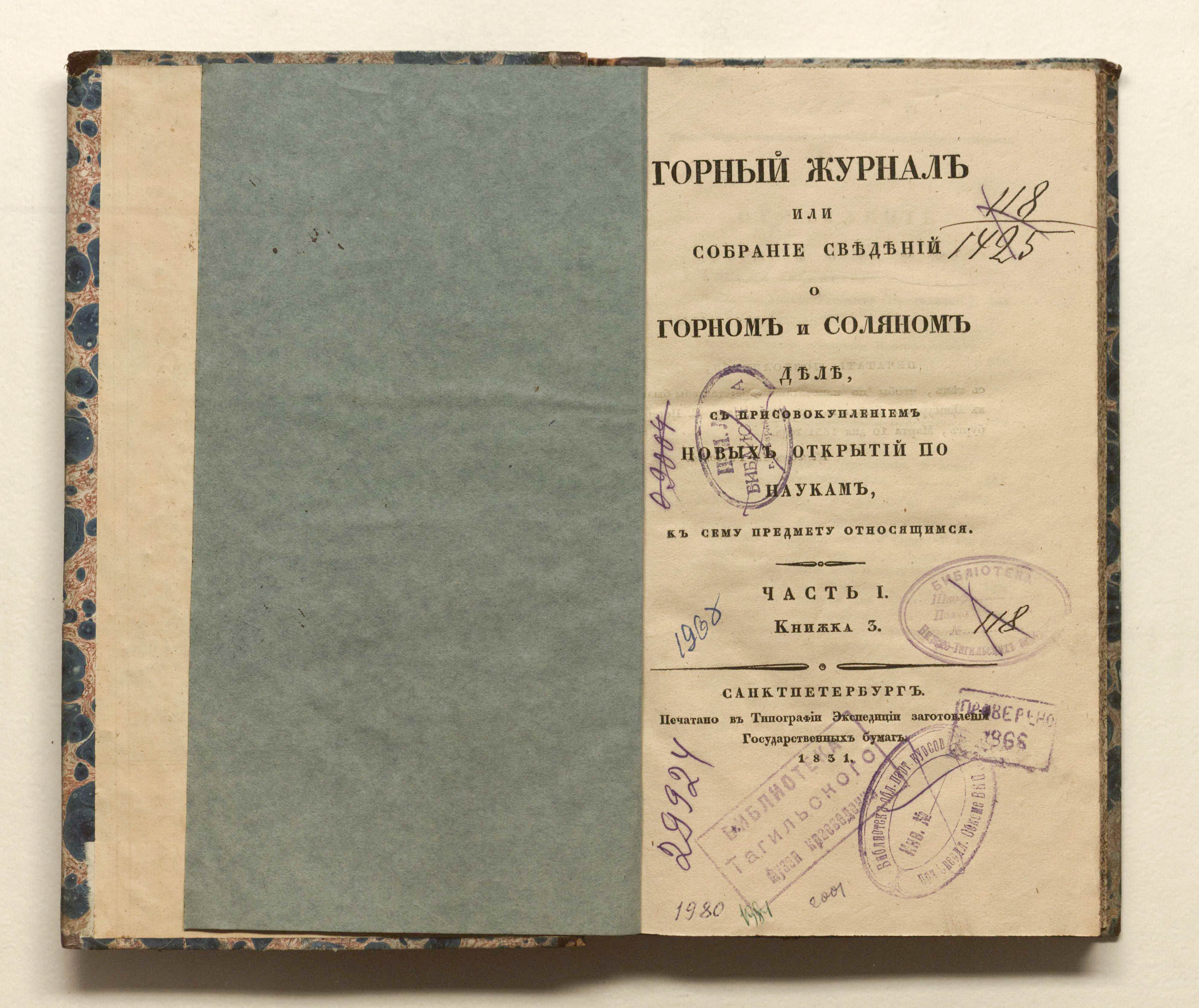 Ч. 1. Кн. 3. – Санкт-Петербург : печатано в типографии Экспедиции заготовления государственных бумаг, 1831. – [4], 332-486, [5] с. : 1 л. Черт. ; 24х14 см.
