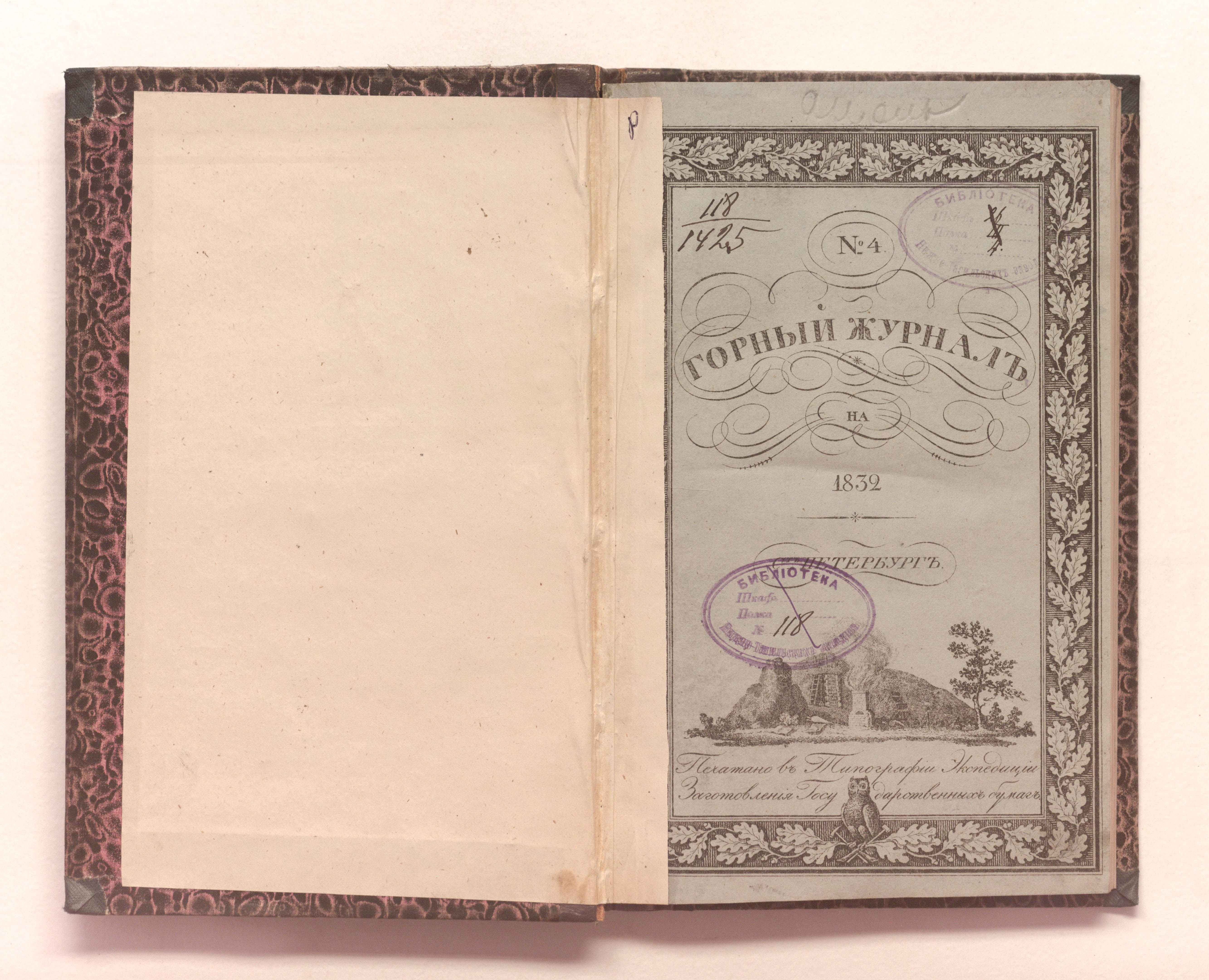 «Библиотека Нижне-Тагильских заводов. № 118» (изд. обл., тит. л.);