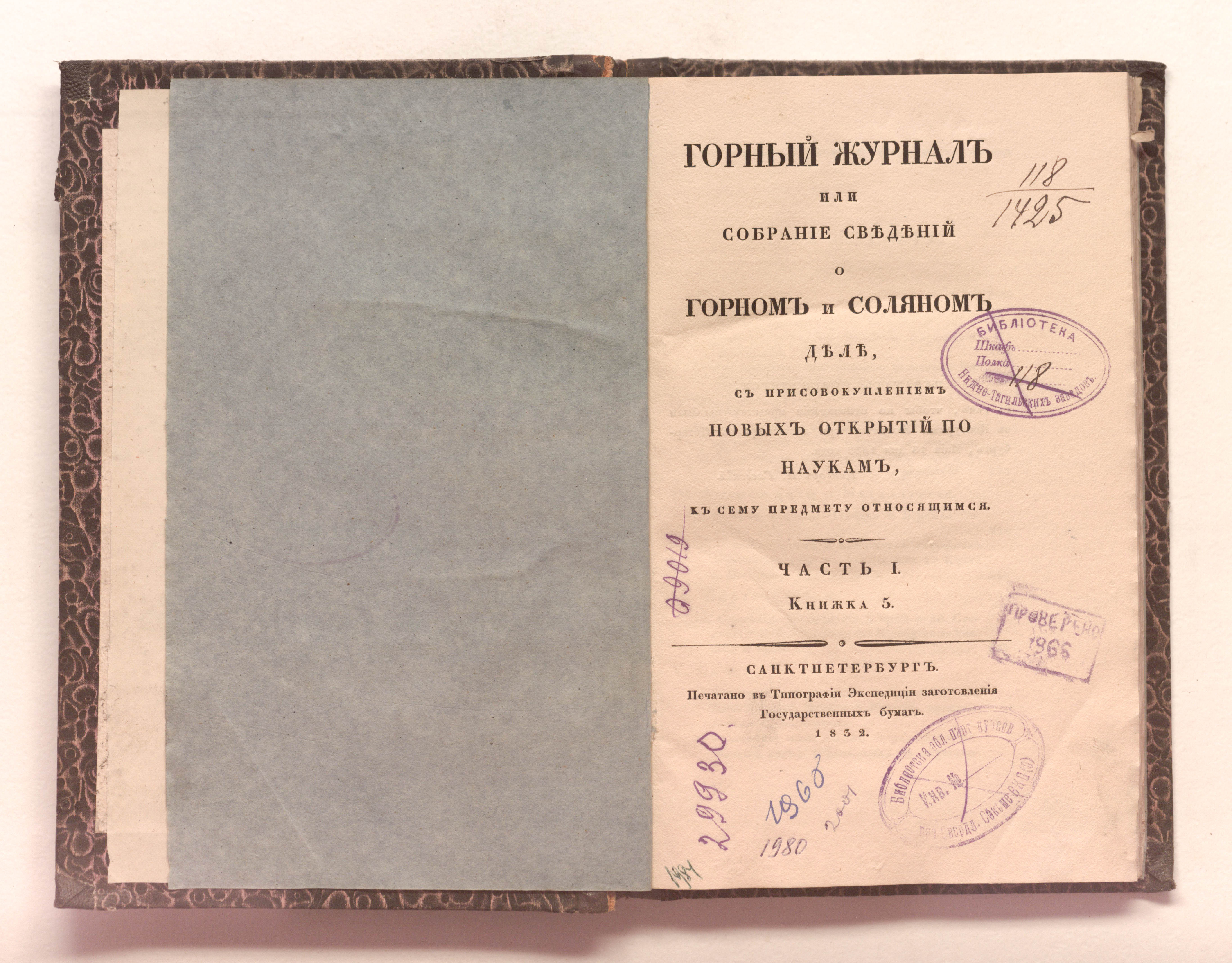 Ч. 1. Кн. 5. – Санкт-Петербург : печатано в типографии Экспедиции заготовления государственных бумаг, 1832. – [4], 155-313 с. ; 23х15 см.
