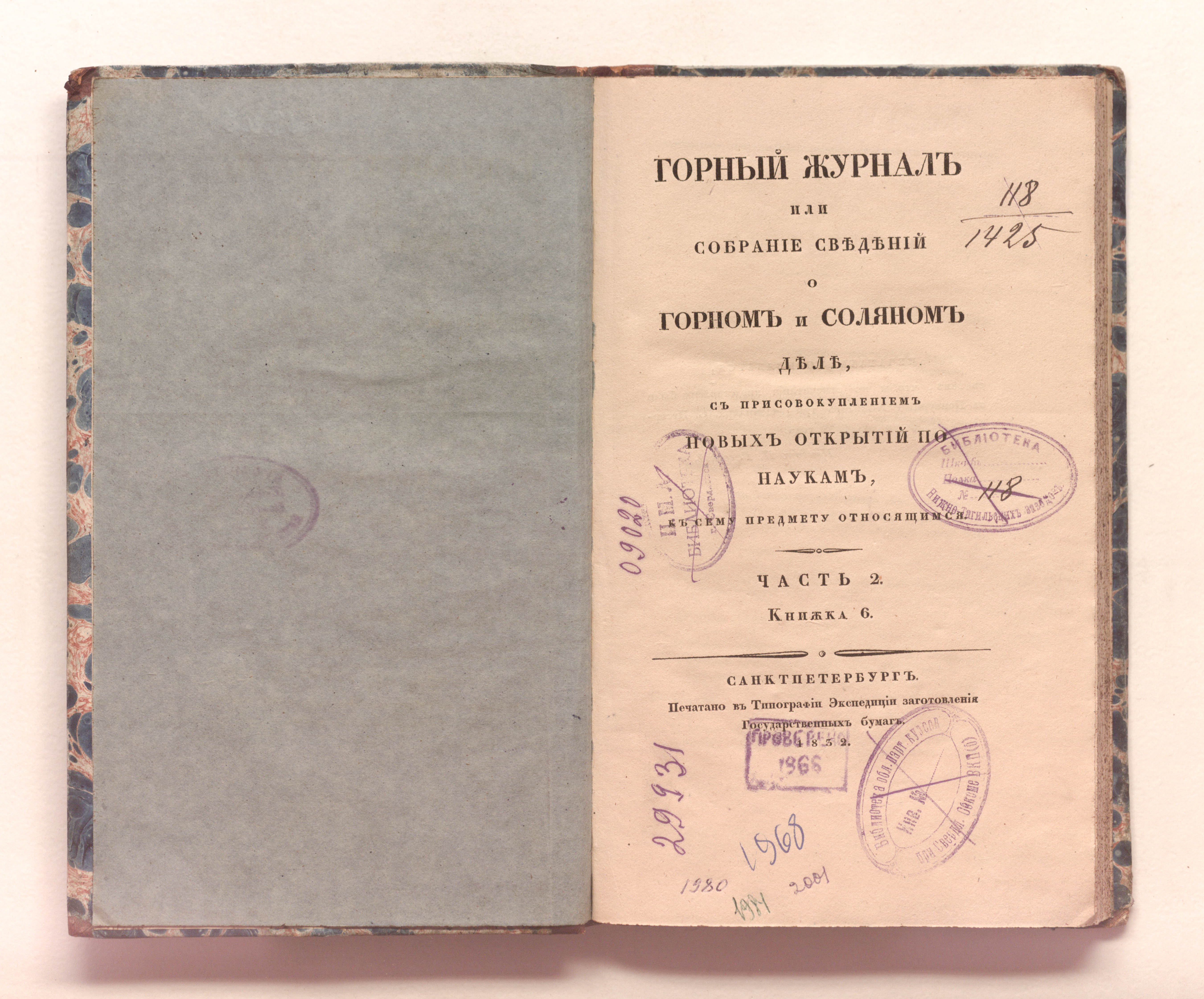 Ч. 2. Кн. 6. – Санкт-Петербург : печатано в типографии Экспедиции заготовления государственных бумаг, 1832. – [4], 315-465, [1], III с. : 2 л. рис. ; 24х14,5 см.