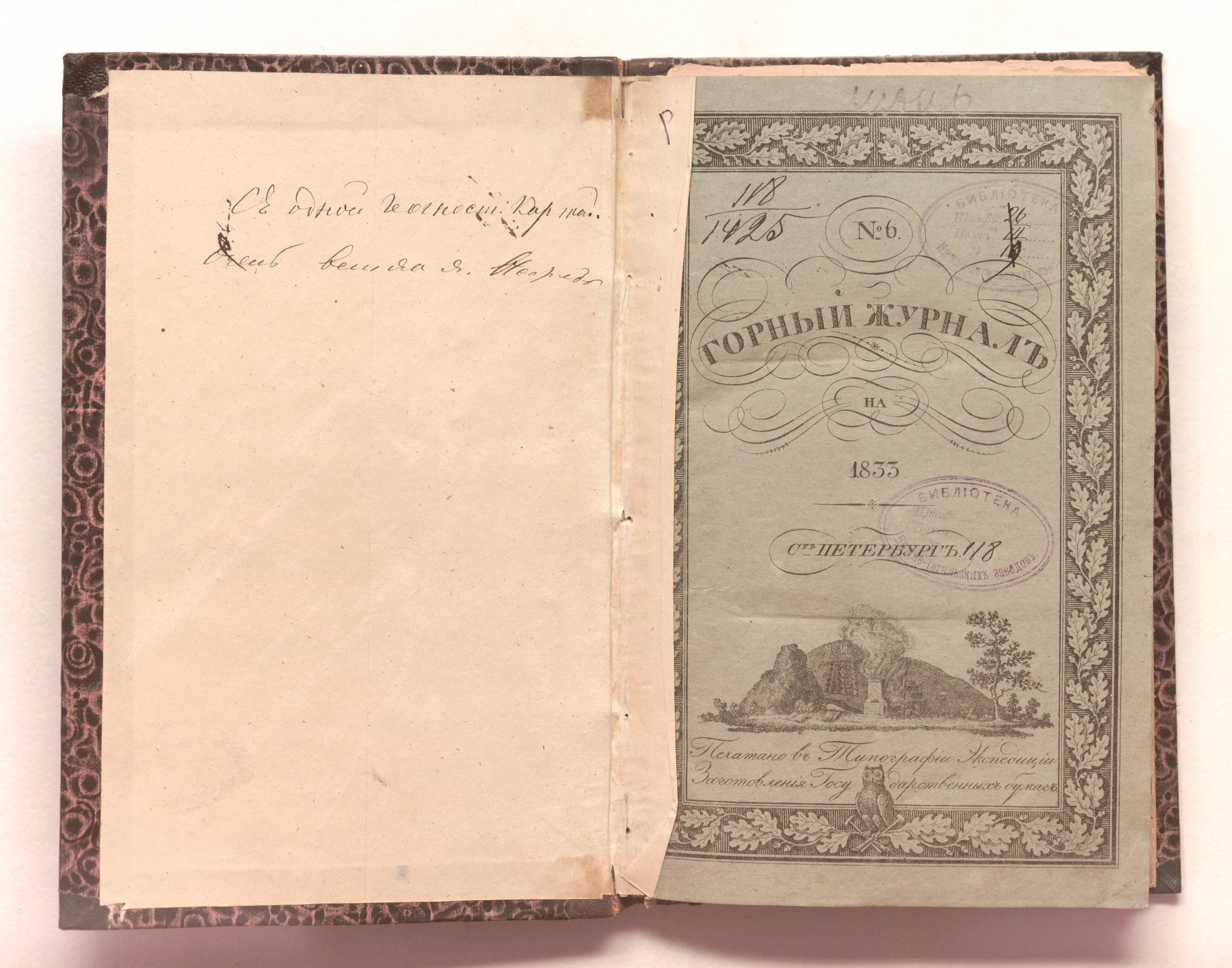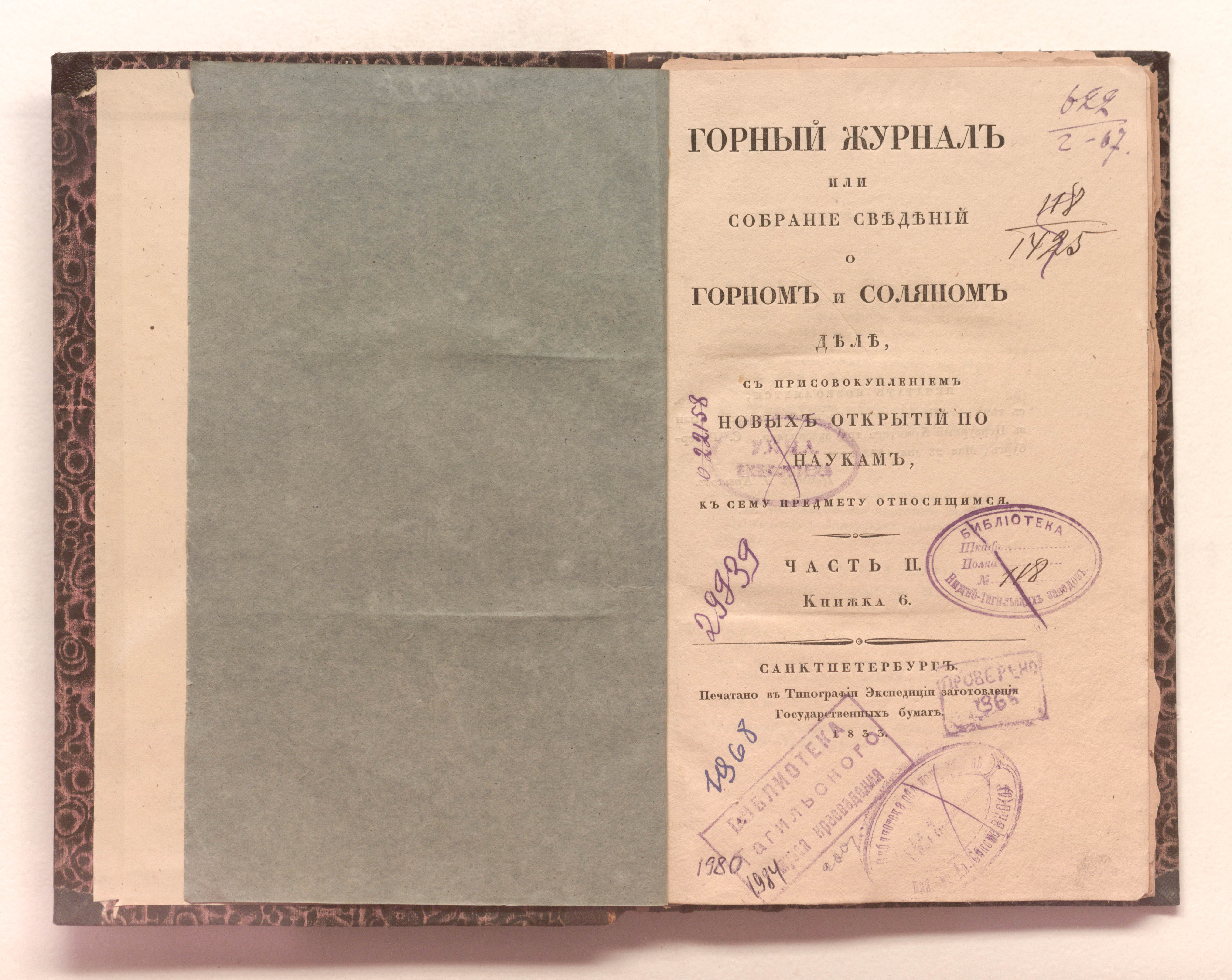 Ч. 2. Кн. 6. – Санкт-Петербург : печатано в типографии Экспедиции заготовления государственных бумаг, 1833. – [4], 283-422, [4] с. : 1 л. карт. ; 23х14,5 см.