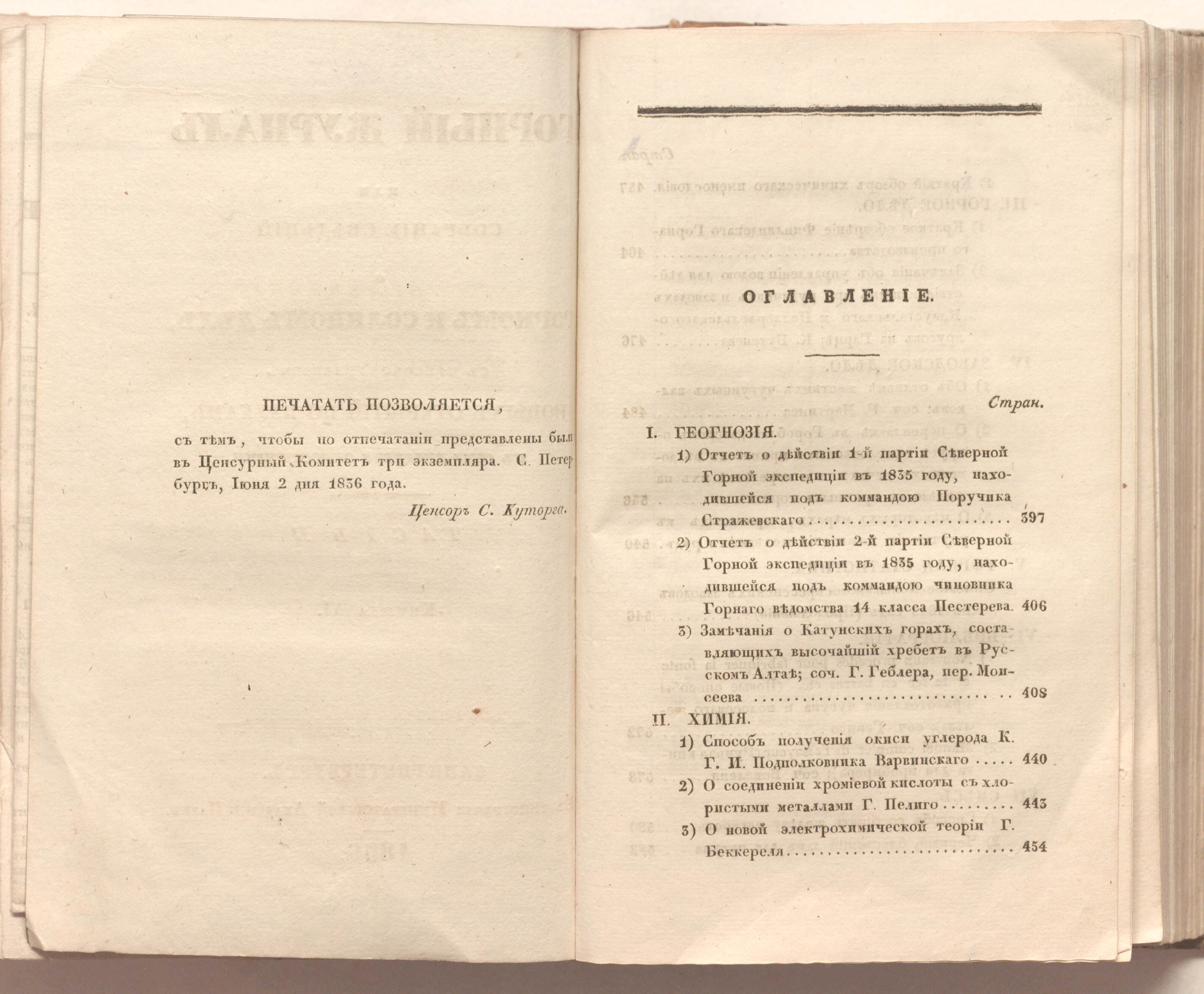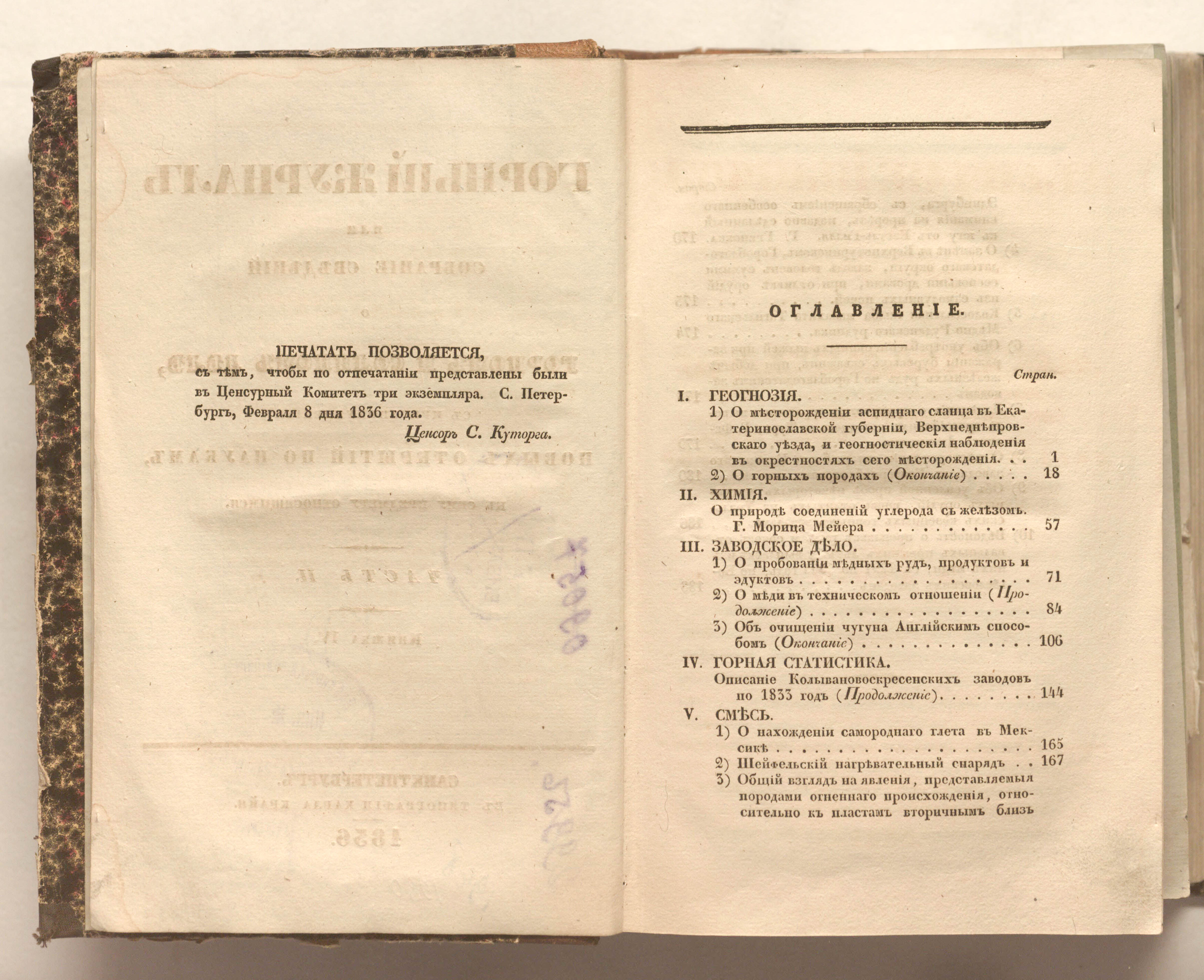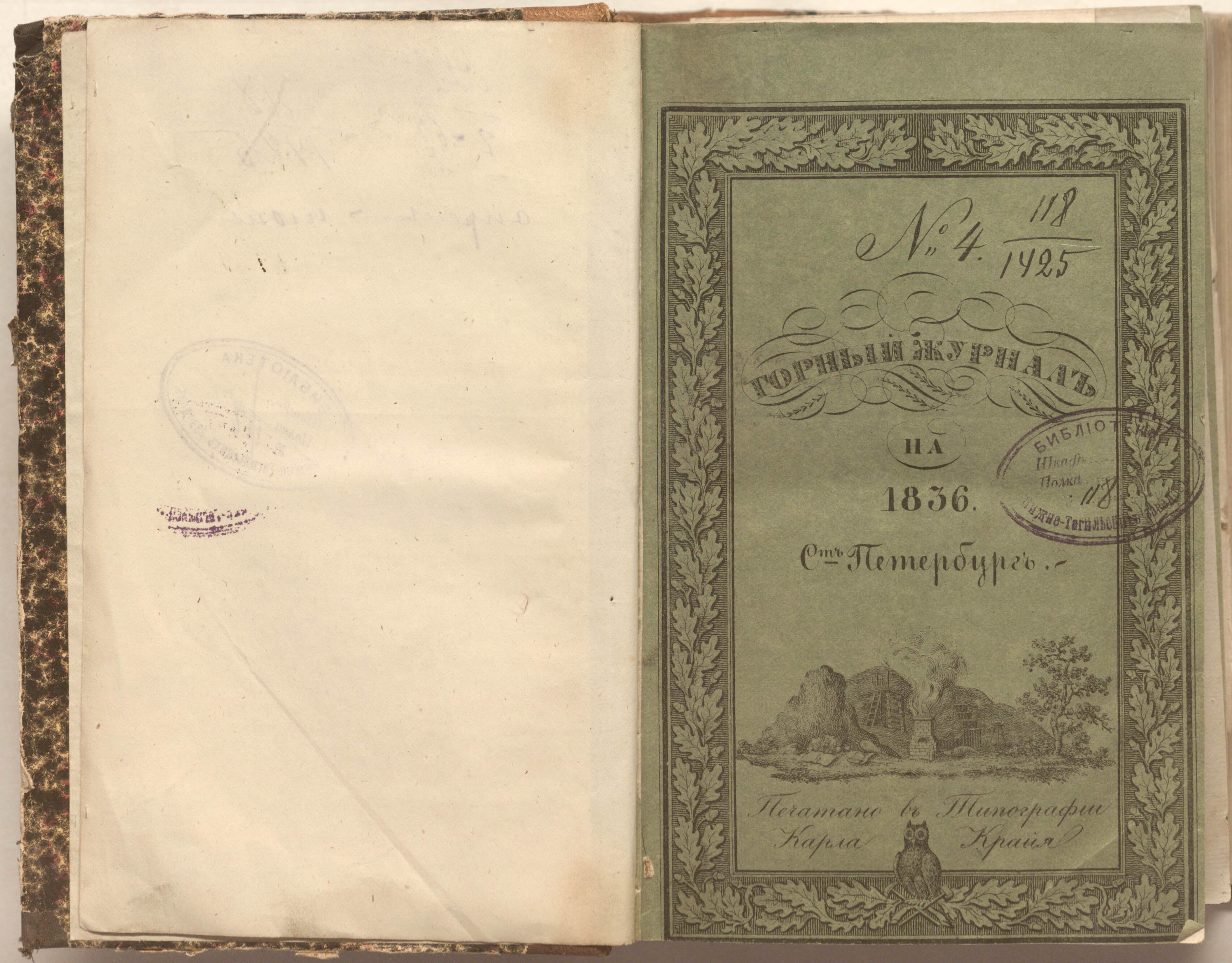 Горный журнал или Собрание сведений о горном и соляном деле, С присовокуплением новых открытий по наукам, к сему предмету относящимся. - Санкт-Петербург : Печатано в Военной типографии Главнаго штаба его императорскаго величества ; в типографии Экспедиции заготовления государственных бумаг ; в типографии Карла Крайя ; в типографии императорской академии наук, 1825 - 1918.