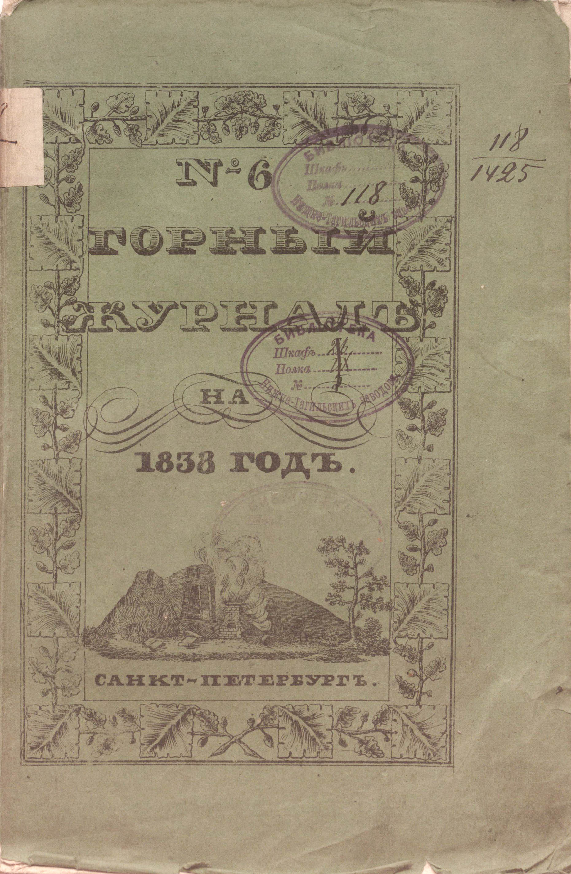 Горный журнал или Собрание сведений о горном и соляном деле, С присовокуплением новых открытий по наукам, к сему предмету относящимся. – Санкт-Петербург : печатано в Военной типографии Главнаго штаба его императорскаго величества ; в типографии Экспедиции заготовления государственных бумаг ; в типографии Карла Крайя ; в типографии императорской академии наук, 1825 - 1918.