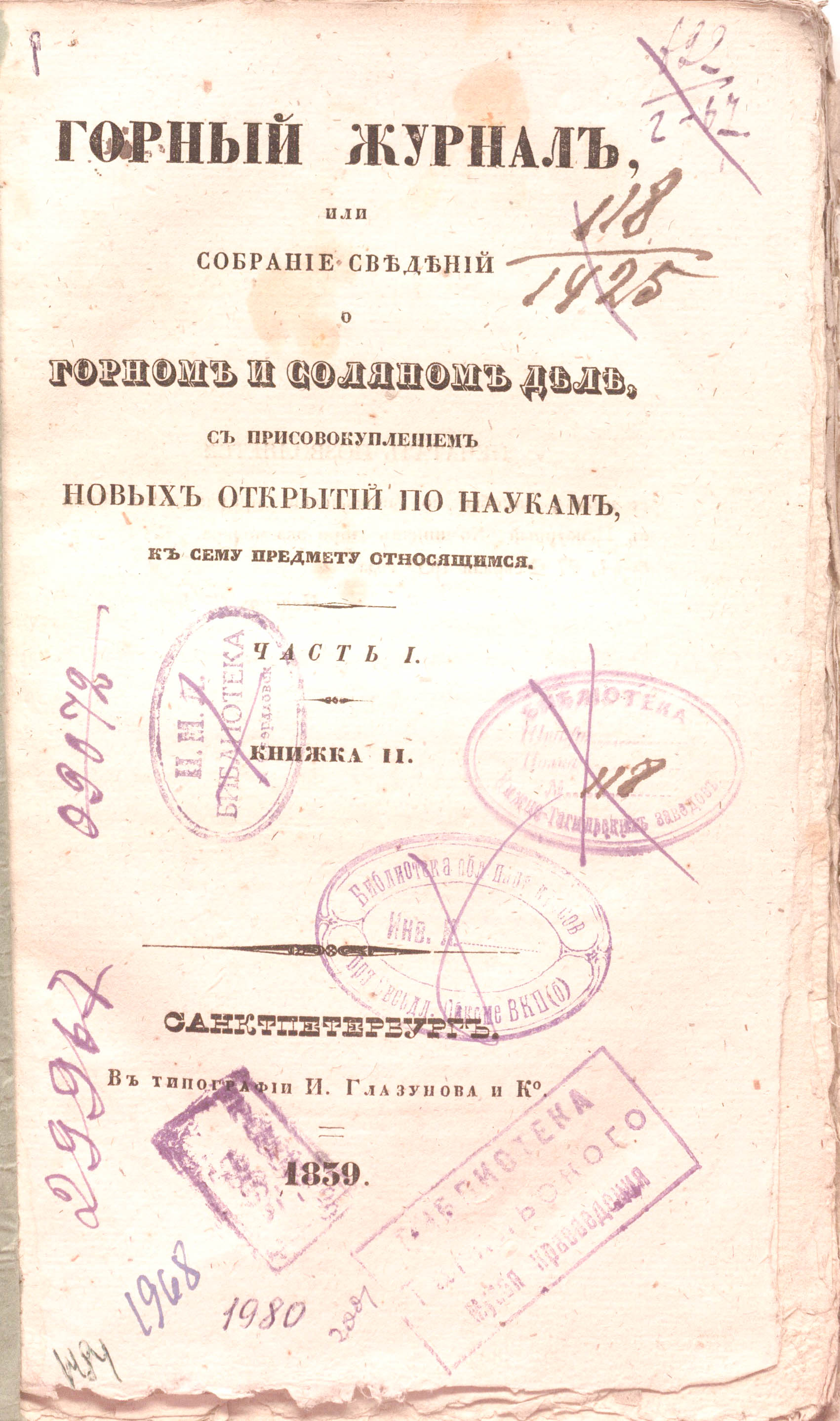 Ч. 1. Кн. 2. – Санкт-Петербург : в типографии И. Глазунова и К, 1839. – [4], 145-289 с. : 8 л. черт. ; 24,5х15 см.