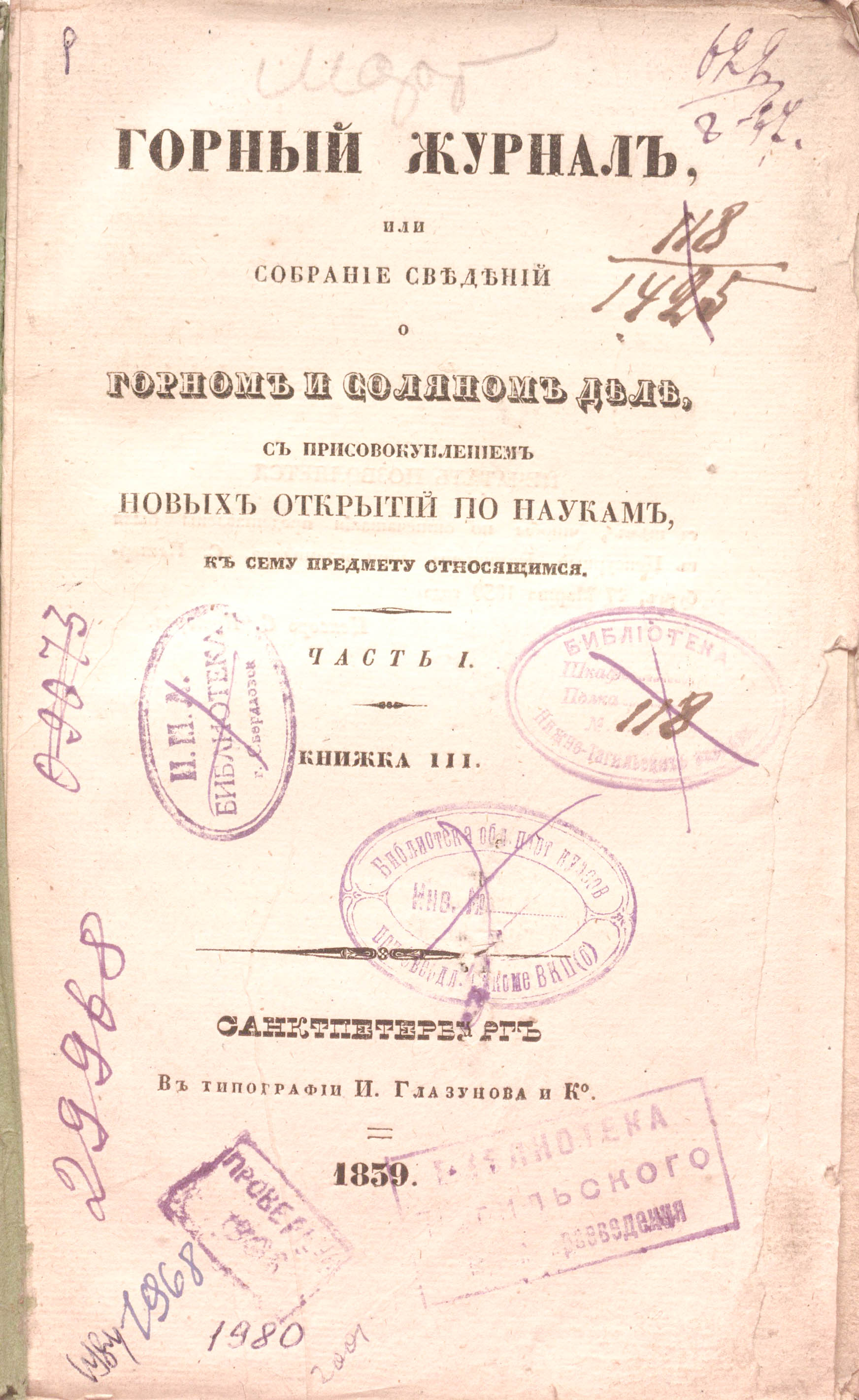 Ч. 1. Кн. 3. – Санкт-Петербург : в типографии И. Глазунова и К, 1839. – [4], 291-456, [4] с. : 6 л. черт. ; 24х15 см.