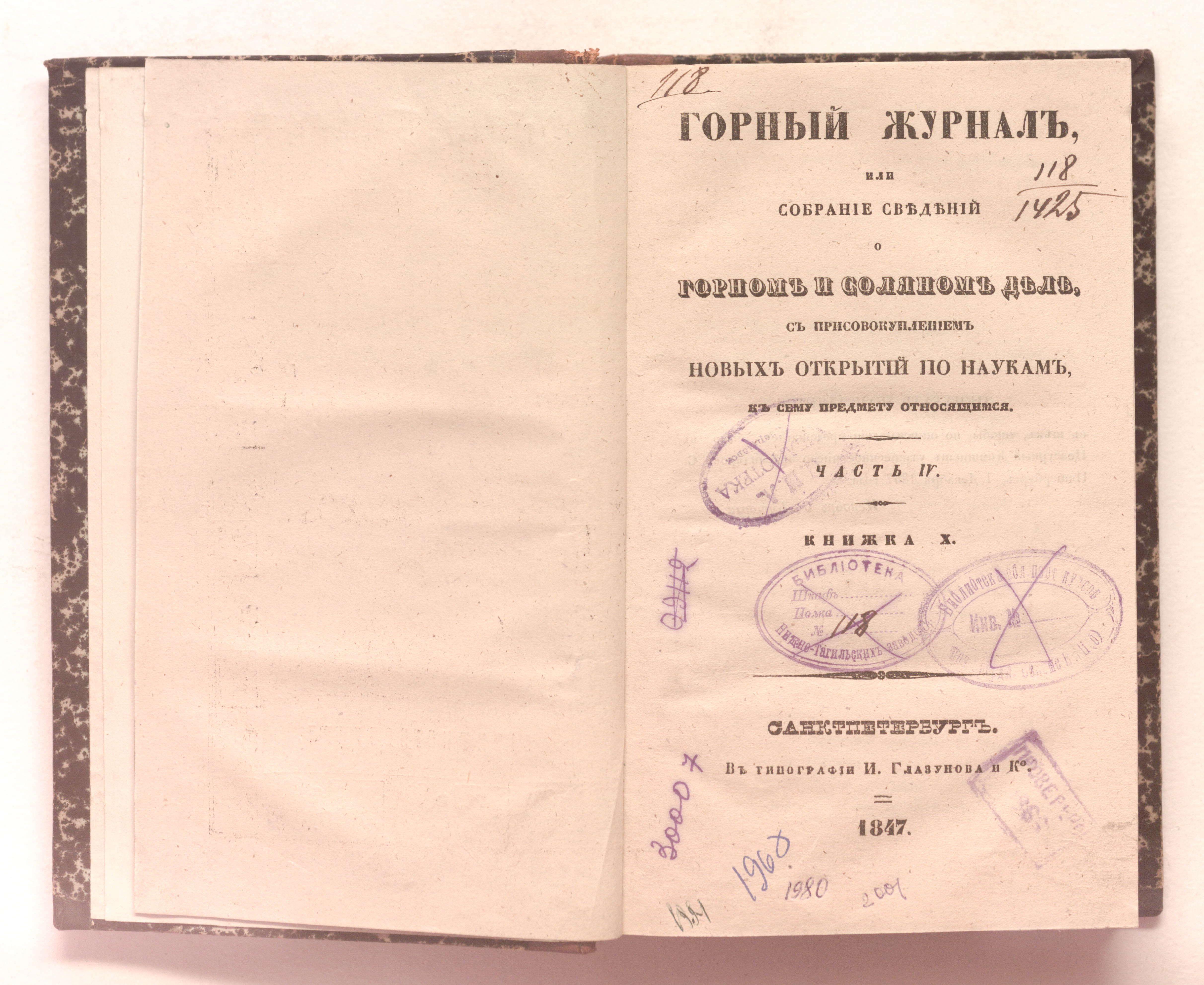 Ч. 4. Кн. 10-12. – Санкт-Петербург : в типографии И. Глазунова и К, 1847. – [4], 480, [2] с. : карты, табл., черт. ; 21,5х14,5 см.