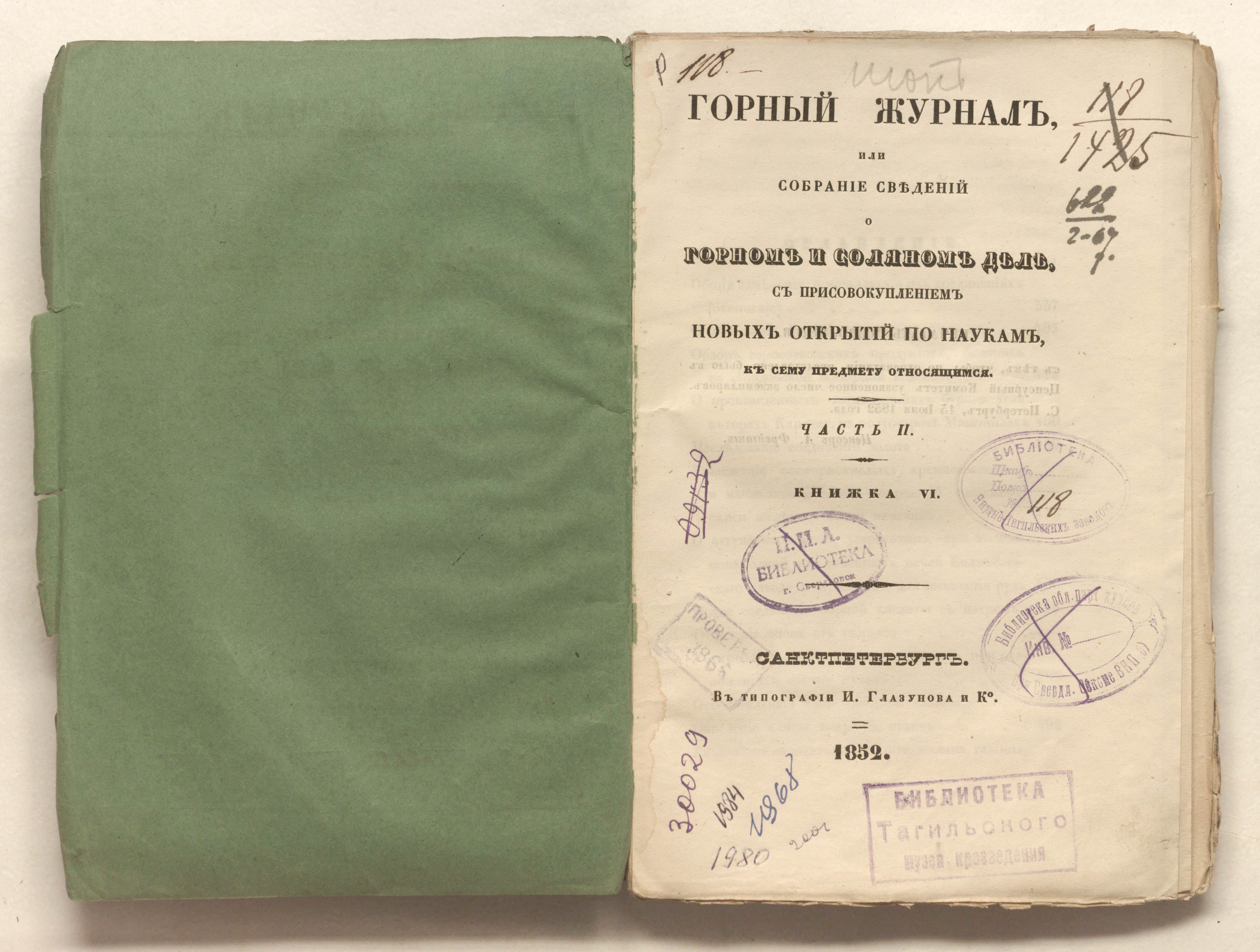 «Библиотека Нижне-Тагильских заводов» (изд. обл., тит. л.);