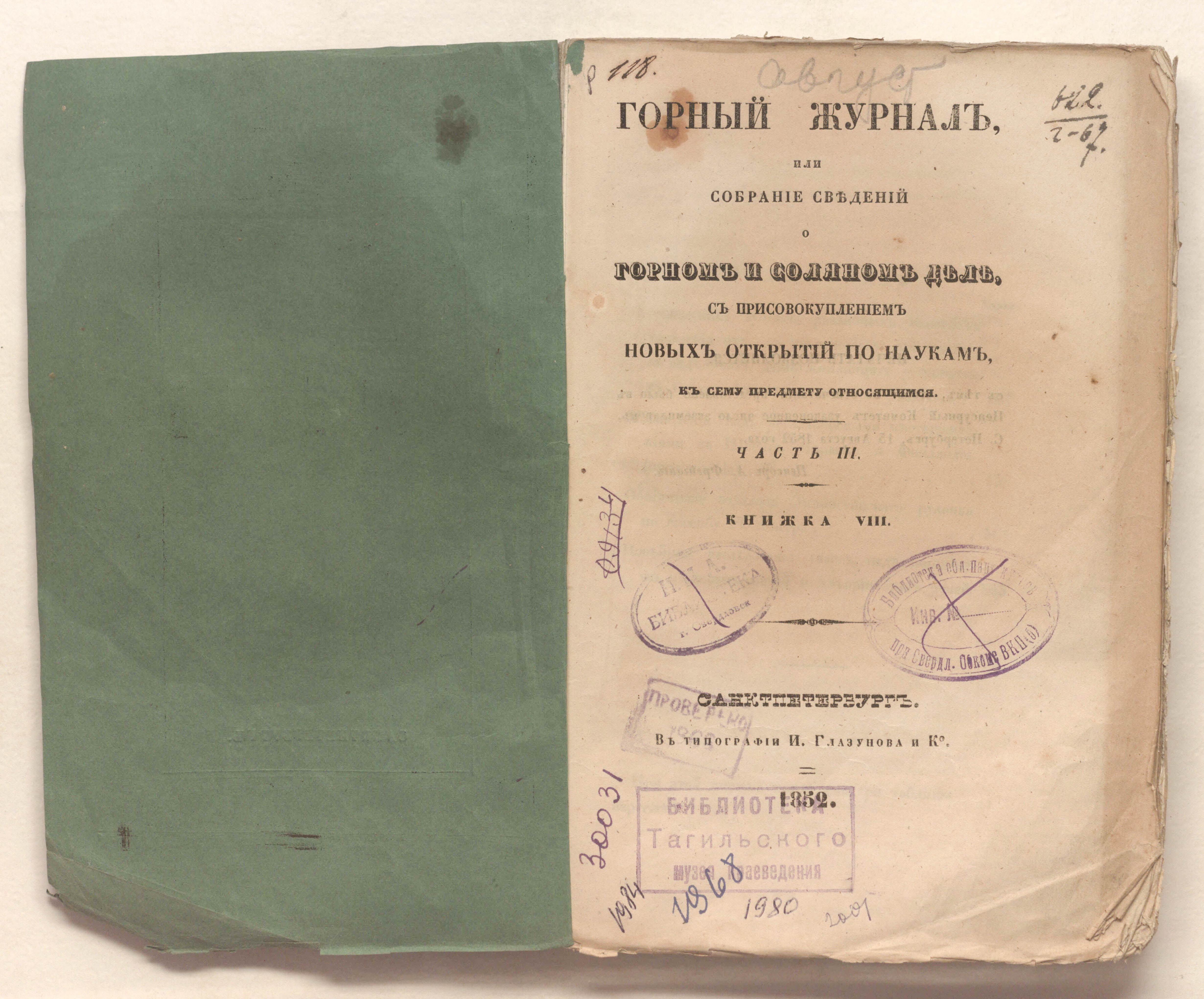 Ч. 3 Кн. 8. – Санкт-Петербург : в типографии И. Глазунова и К, 1852. – [4], 167-373 с. : 3 л. черт. ; 23х15,5 см.
