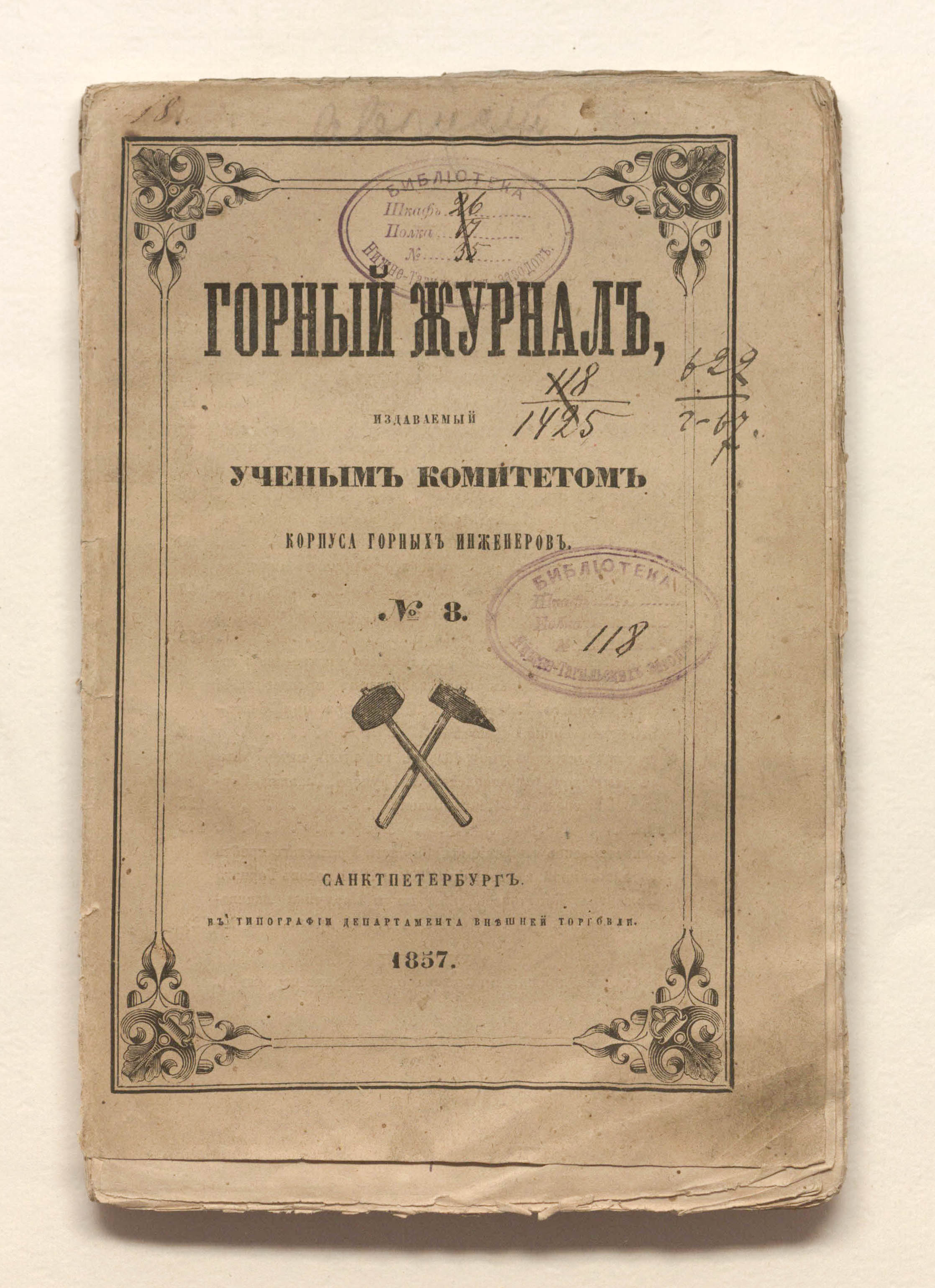 Горный журнал или Собрание сведений о горном и соляном деле, С присовокуплением новых открытий по наукам, к сему предмету относящимся. – Санкт-Петербург : печатано в Военной типографии Главнаго штаба его императорскаго величества ; в типографии Экспедиции заготовления государственных бумаг ; в типографии Карла Крайя ; в типографии императорской академии наук, 1825 - 1918.