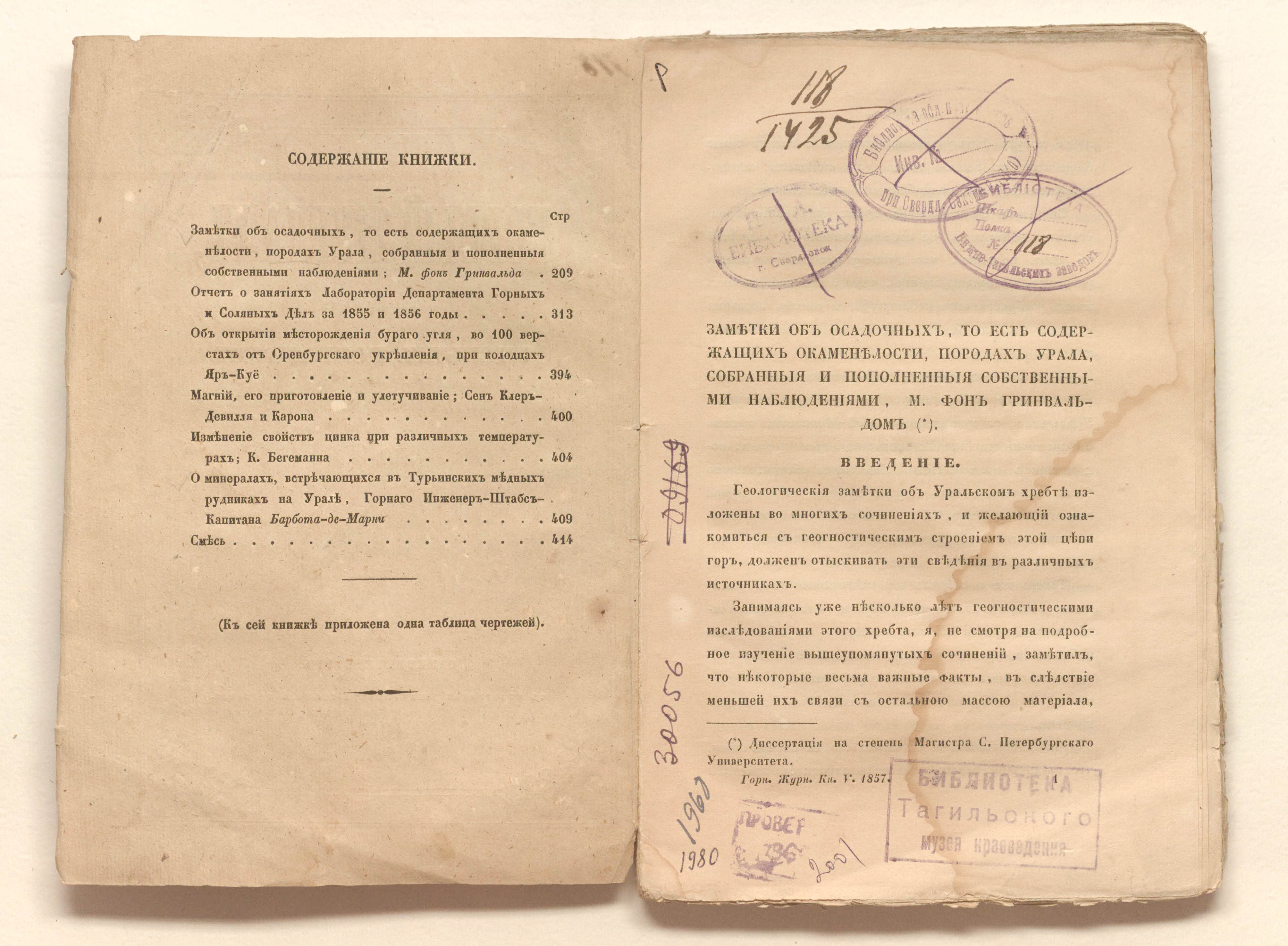 «Библиотека Нижне-Тагильских заводов.» (изд. обл., с. 209);