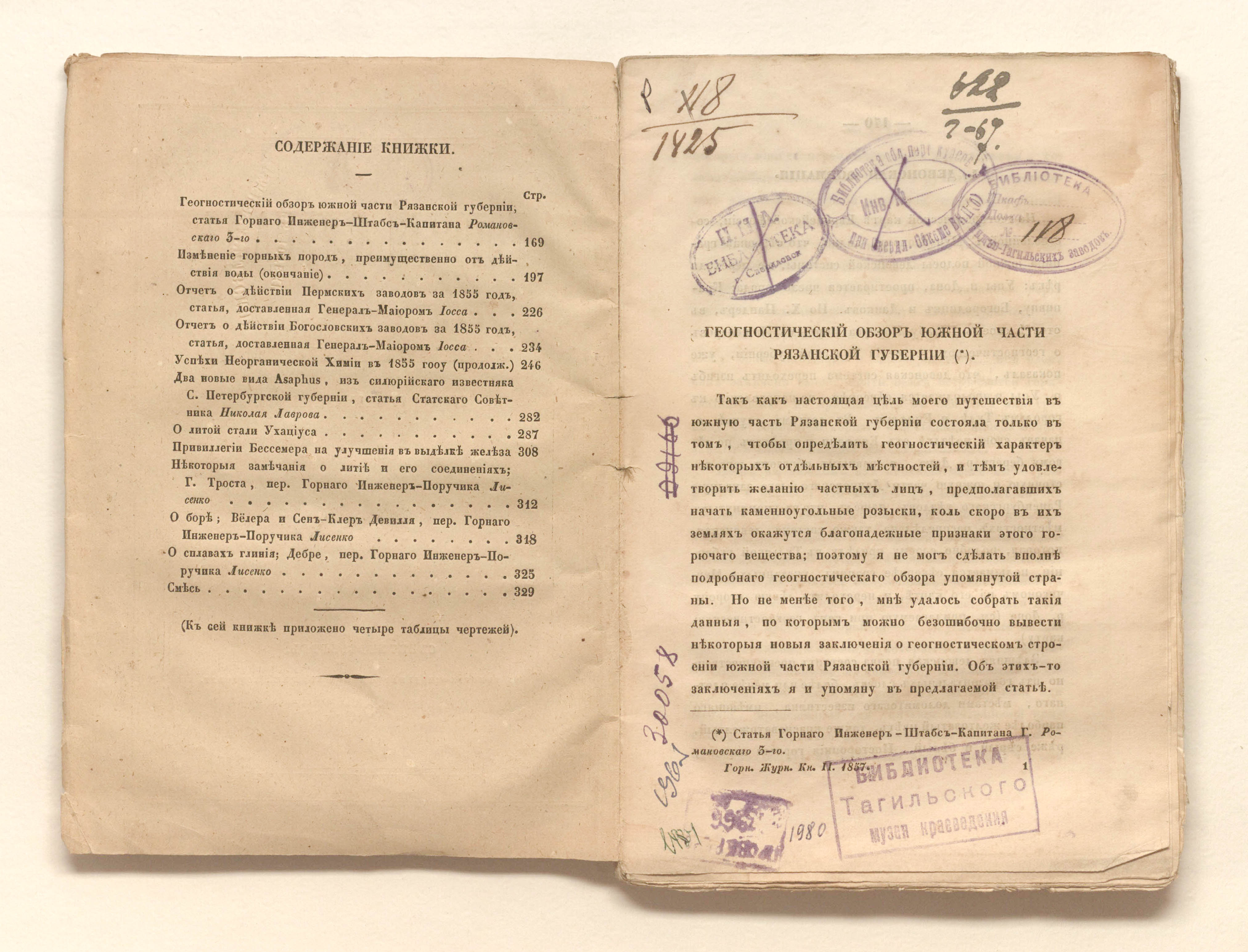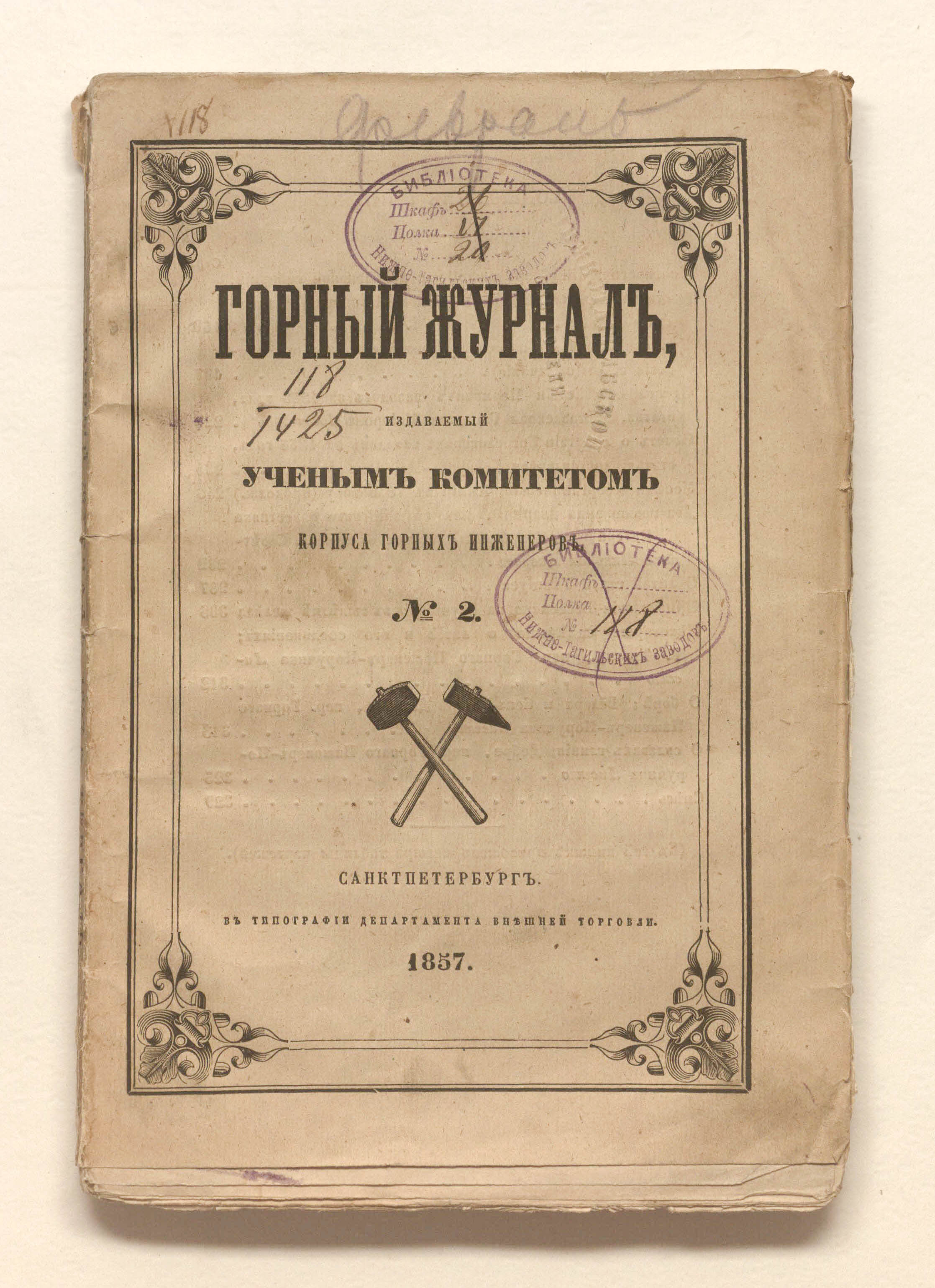 Горный журнал или Собрание сведений о горном и соляном деле, С присовокуплением новых открытий по наукам, к сему предмету относящимся. – Санкт-Петербург : печатано в Военной типографии Главнаго штаба его императорскаго величества ; в типографии Экспедиции заготовления государственных бумаг ; в типографии Карла Крайя ; в типографии императорской академии наук, 1825 - 1918.