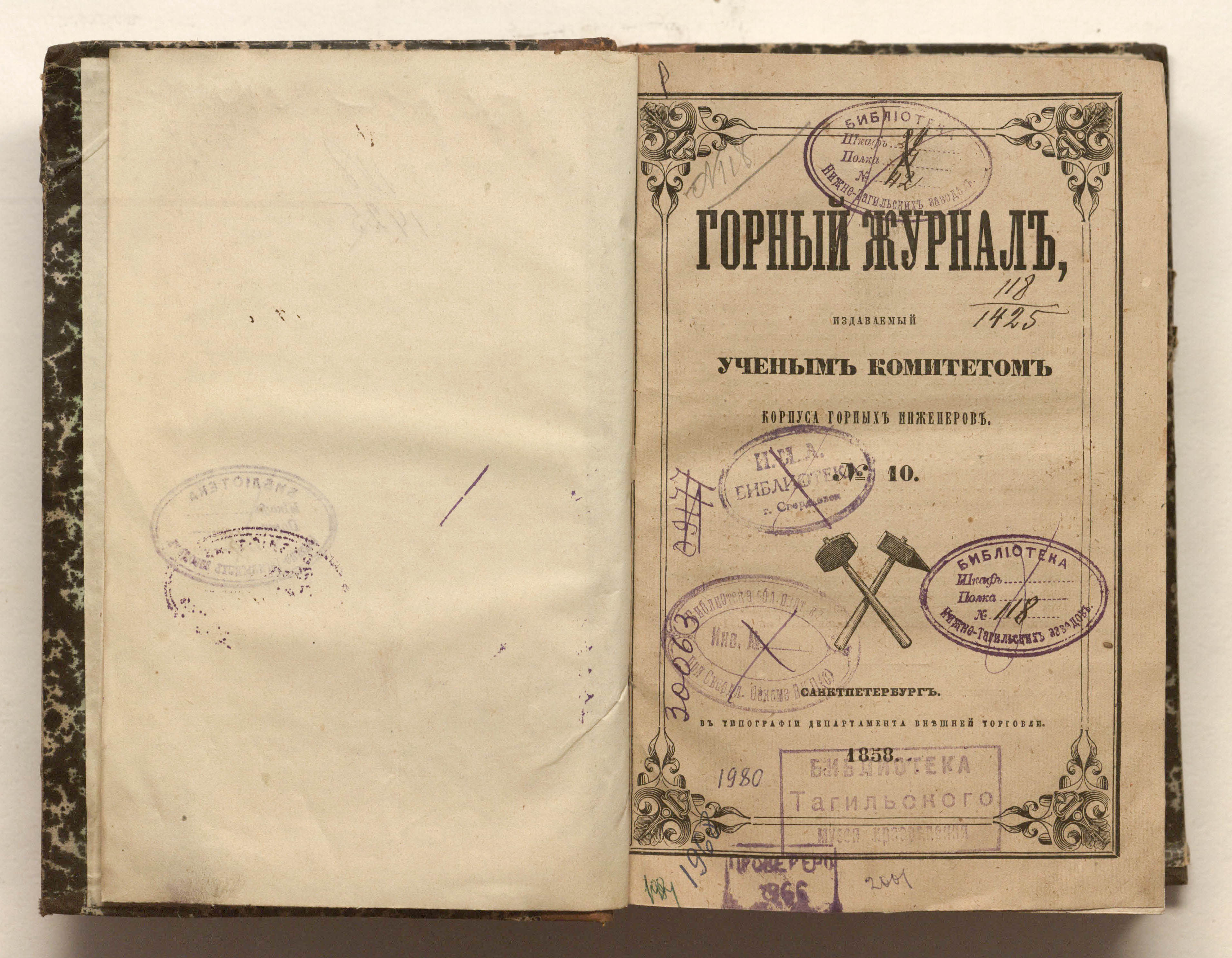 «Библиотека Нижне-Тагильских заводов.» (форзац, изд. обл.);
