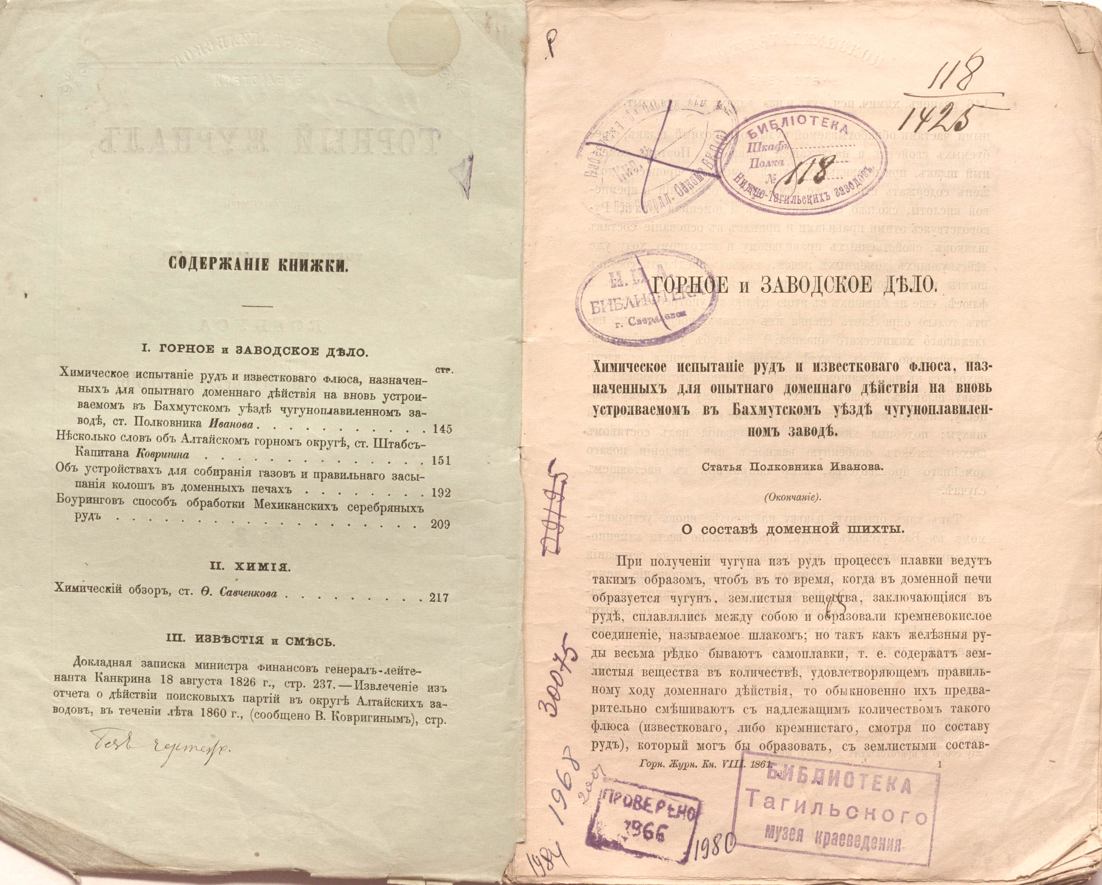 «Библиотека Нижне-Тагильских заводов.» (изд. обл., тит. л.);