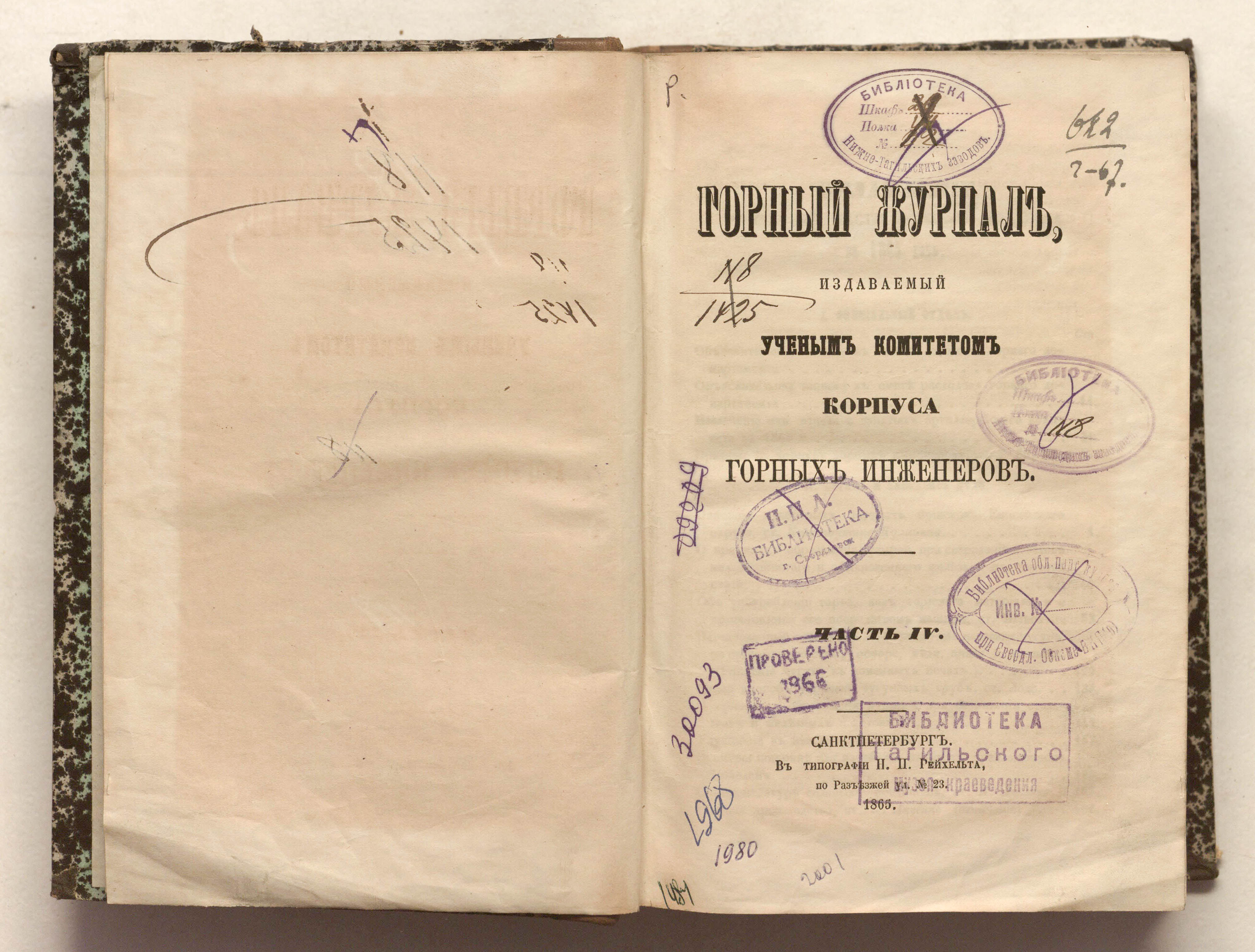 Горный журнал, издаваемый ученым комитетом корпуса горных инженеров.