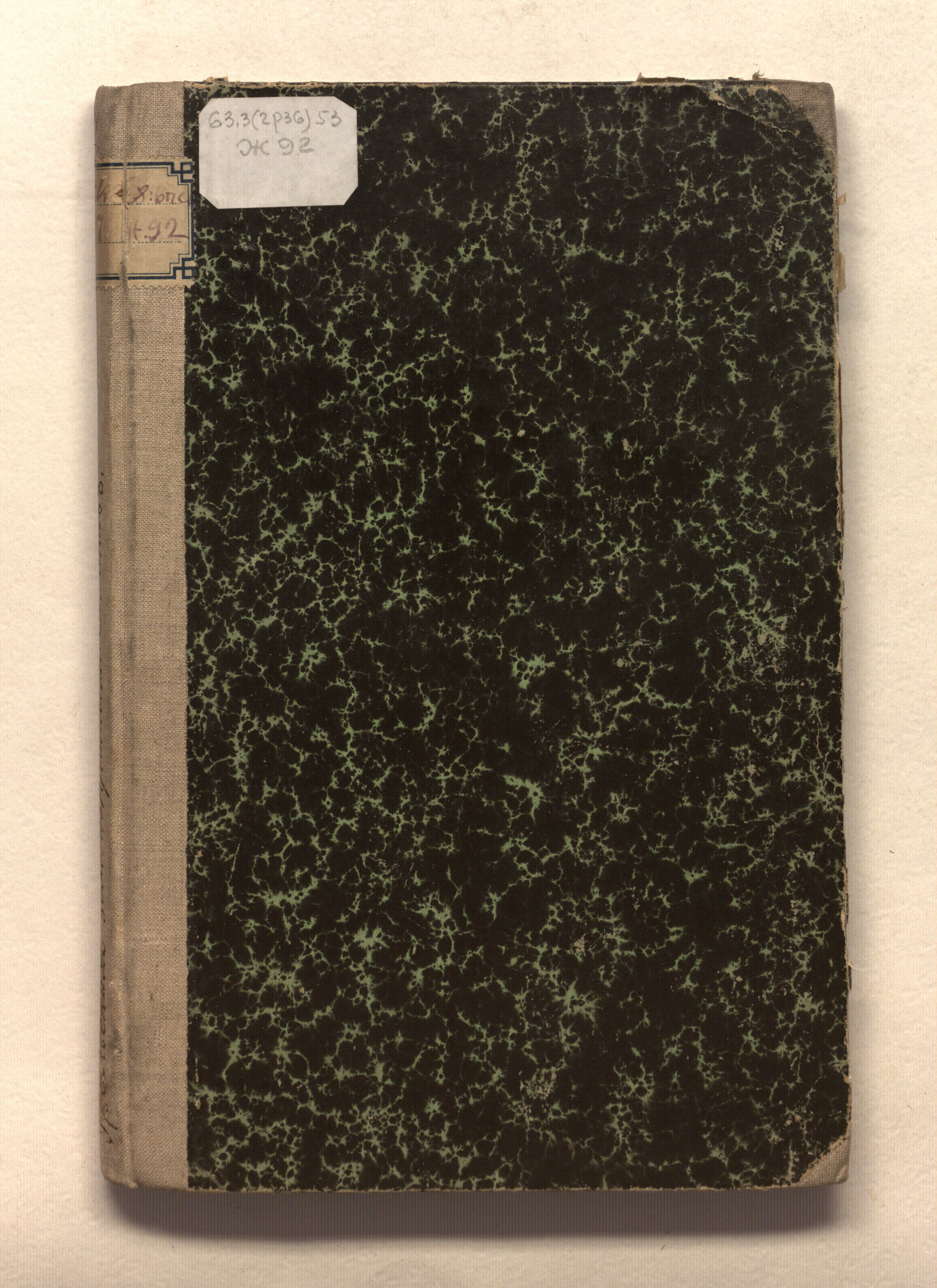 Книга в картонном владельческом переплете. Мраморная бумага.