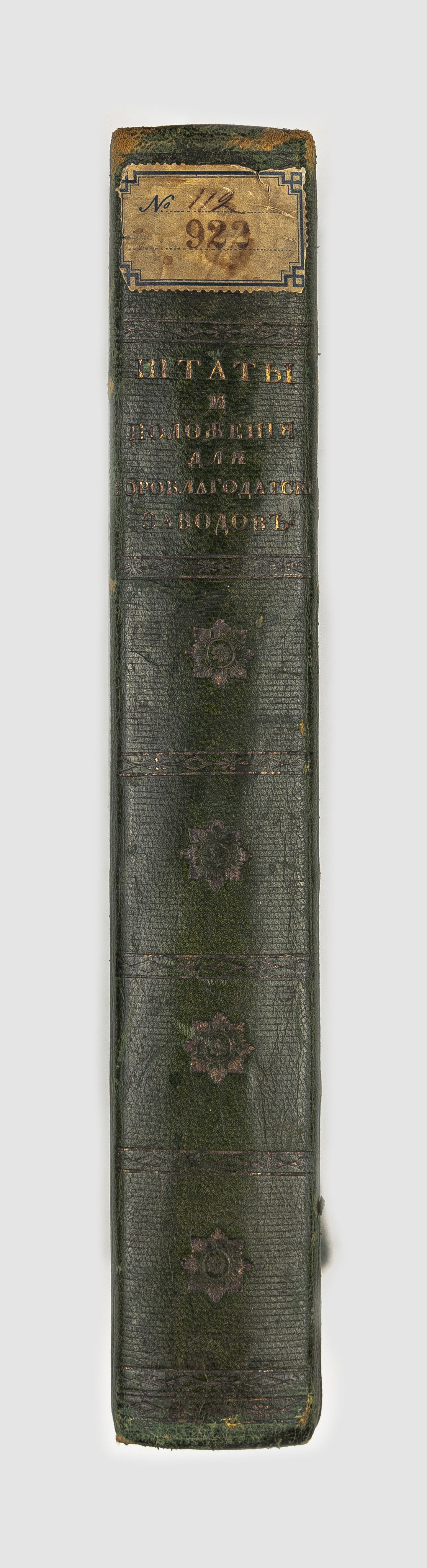 Бумажный ярлык «№ 112, 922» (на корешке перепл.).