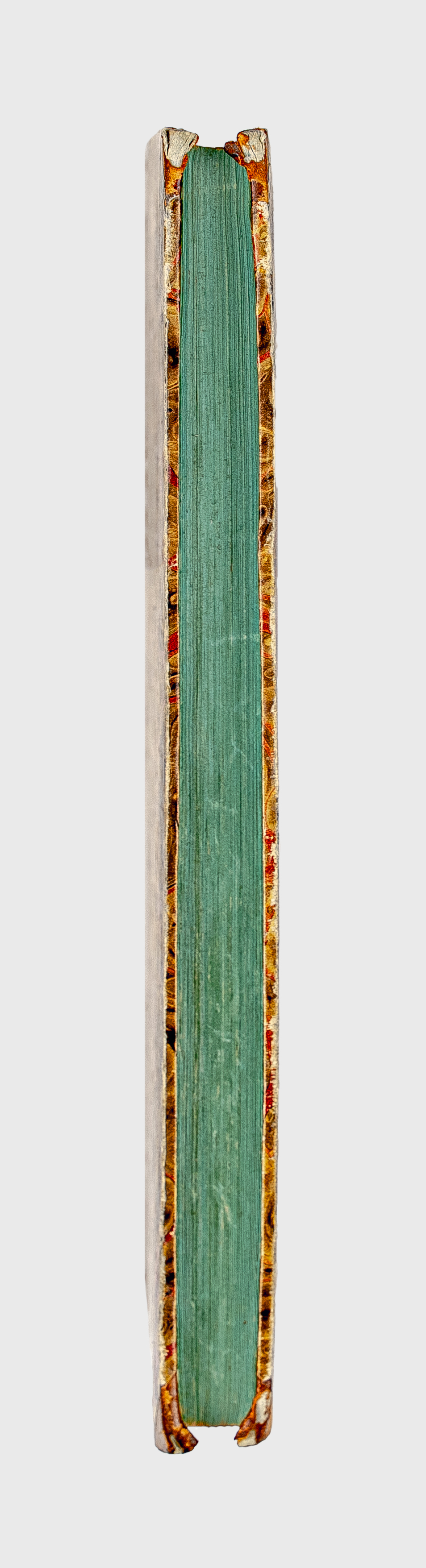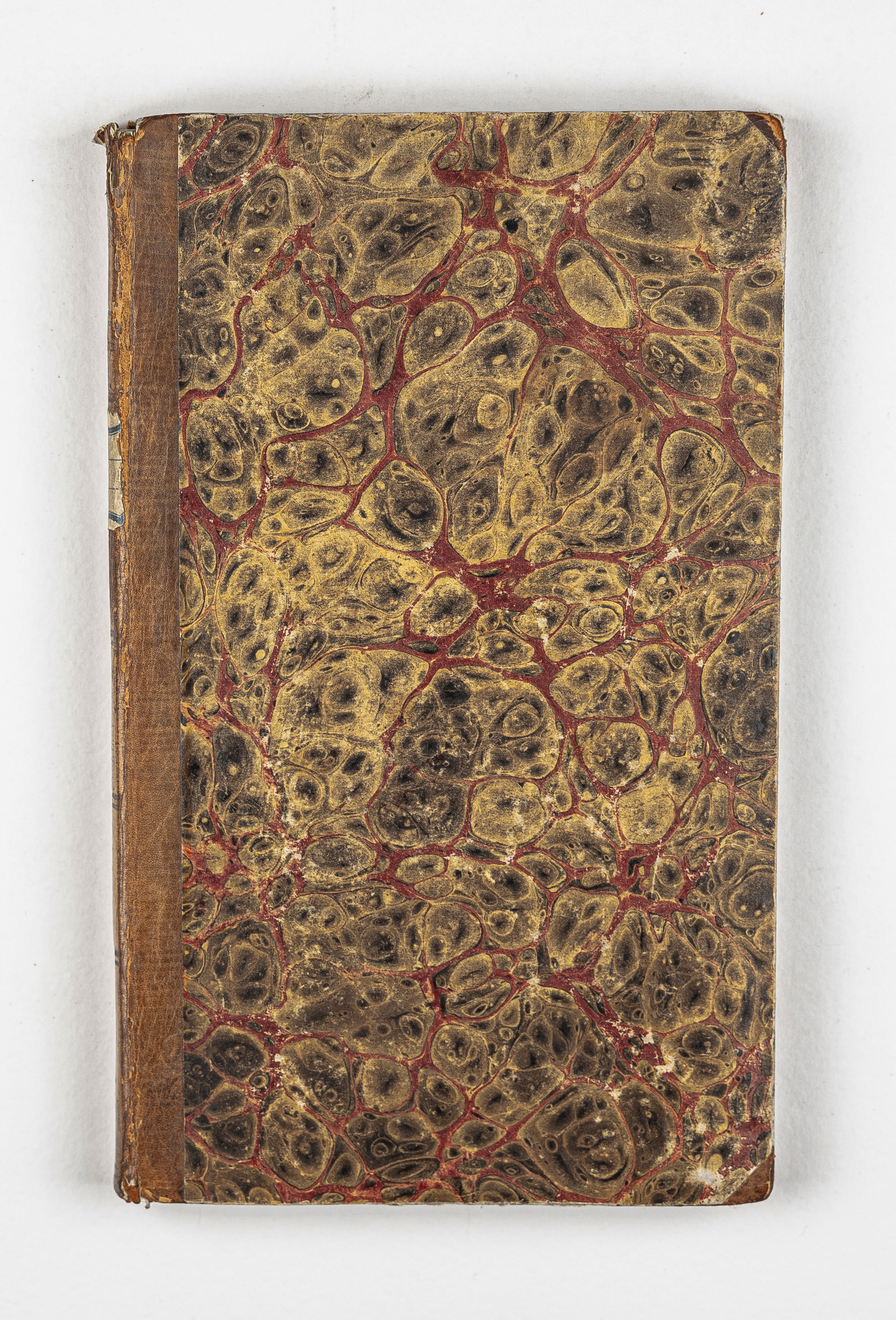 Книга в полукожаном владельческом переплете. Крышки переплета обтянуты бумагой с рисунком «под мрамор». Обрез тонированный. Бумага верже.
