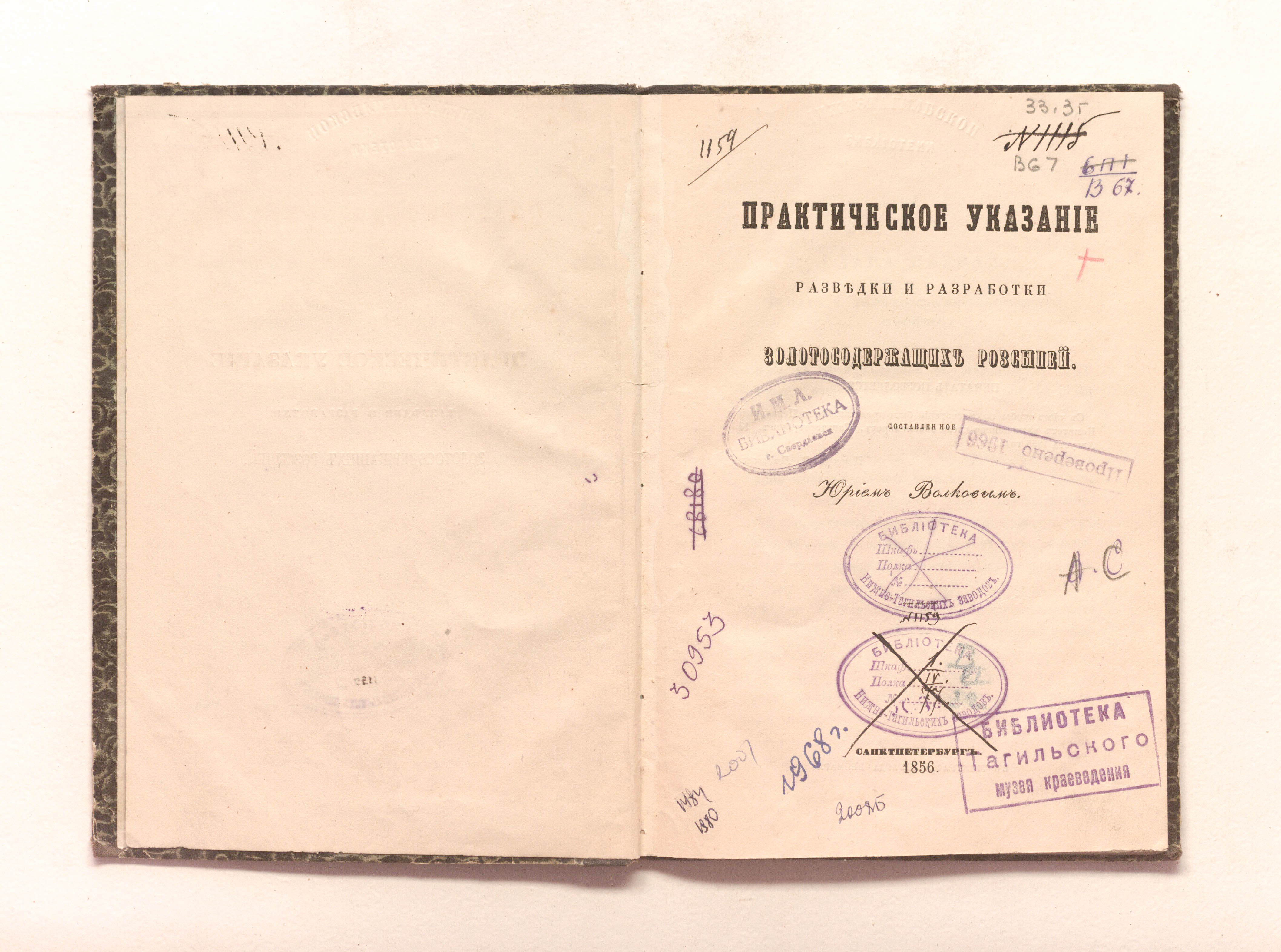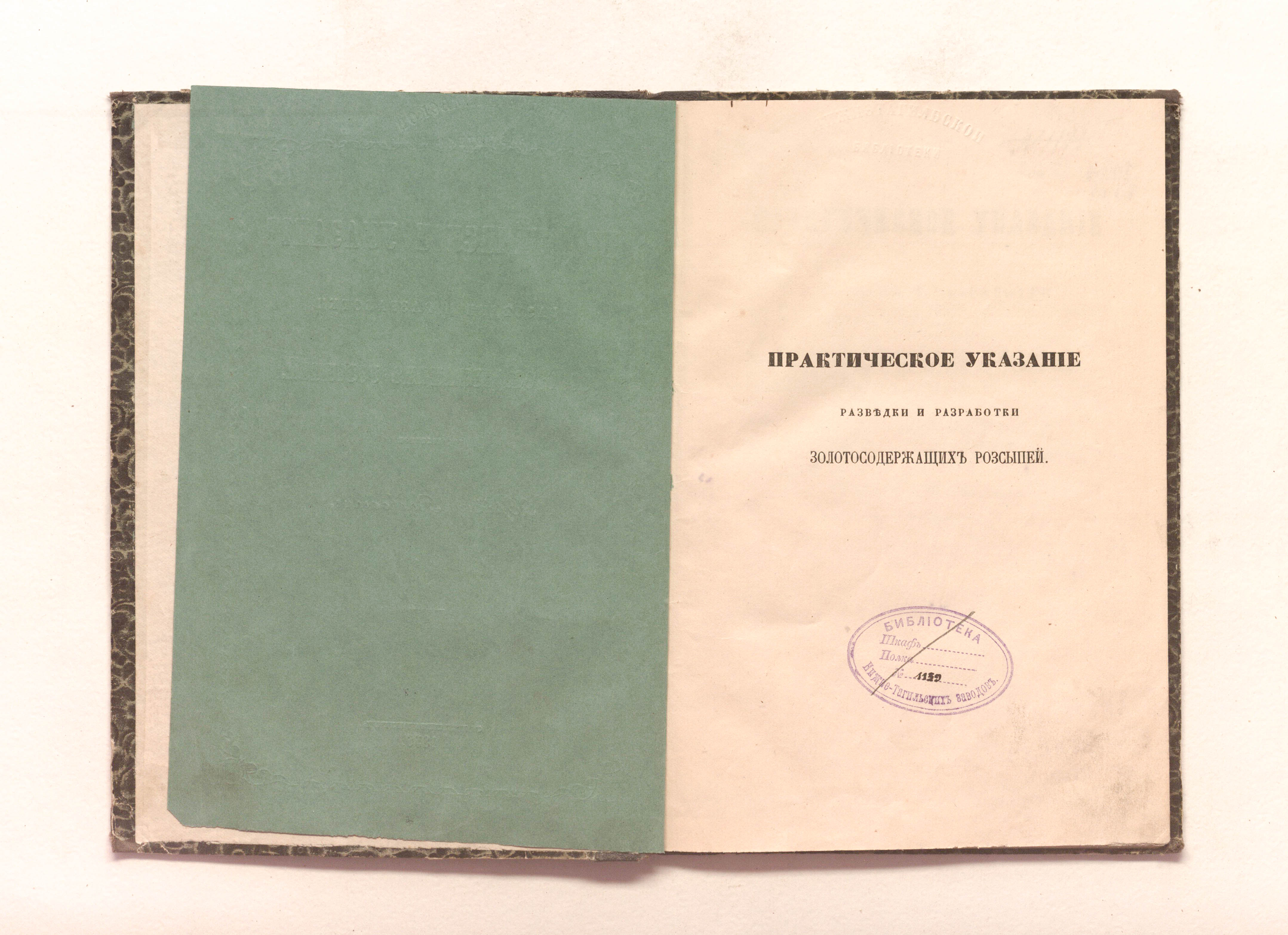 «Библиотека Нижне-Тагильских заводов. № 1159» (изд. обл., авантитул, тит. л.);