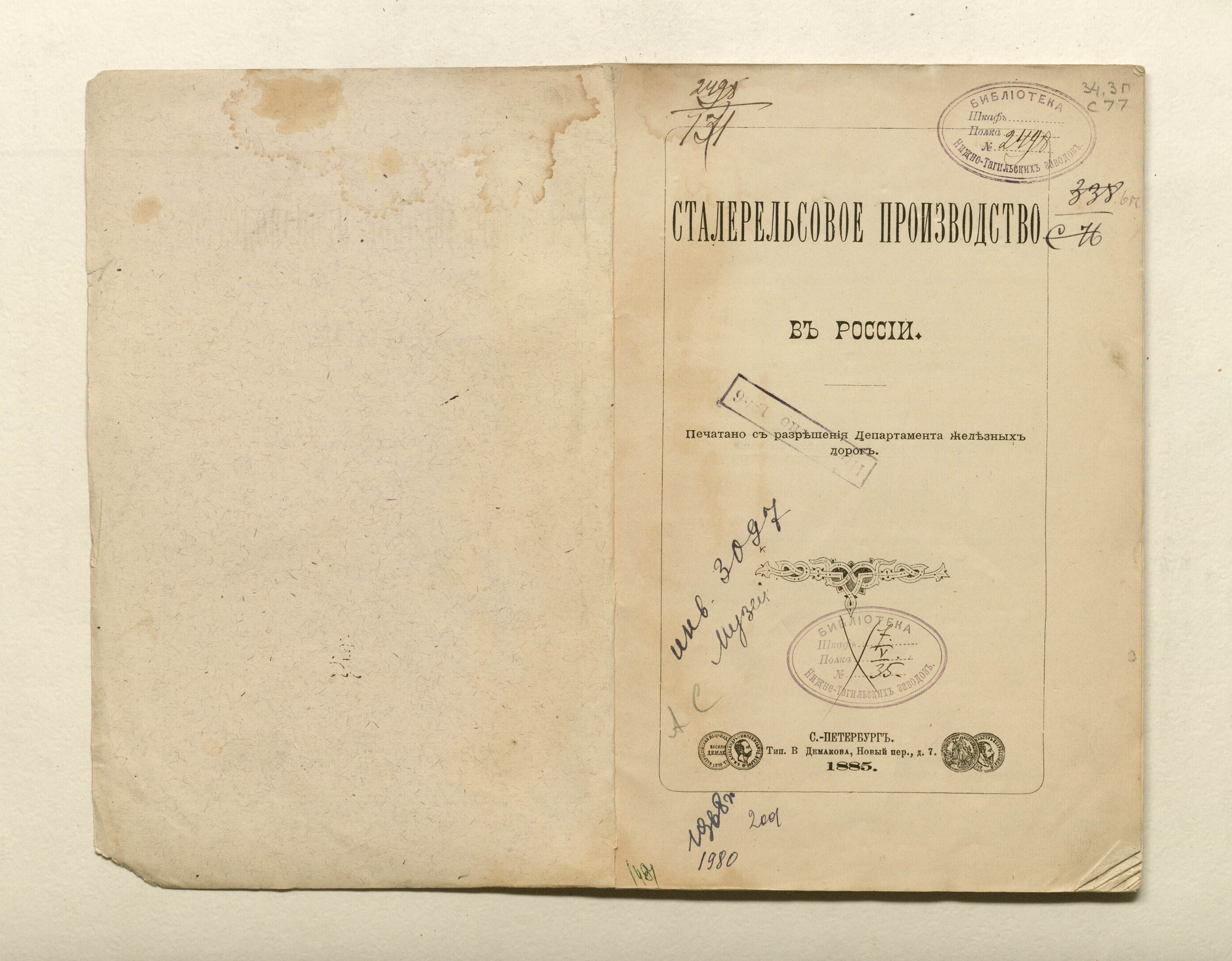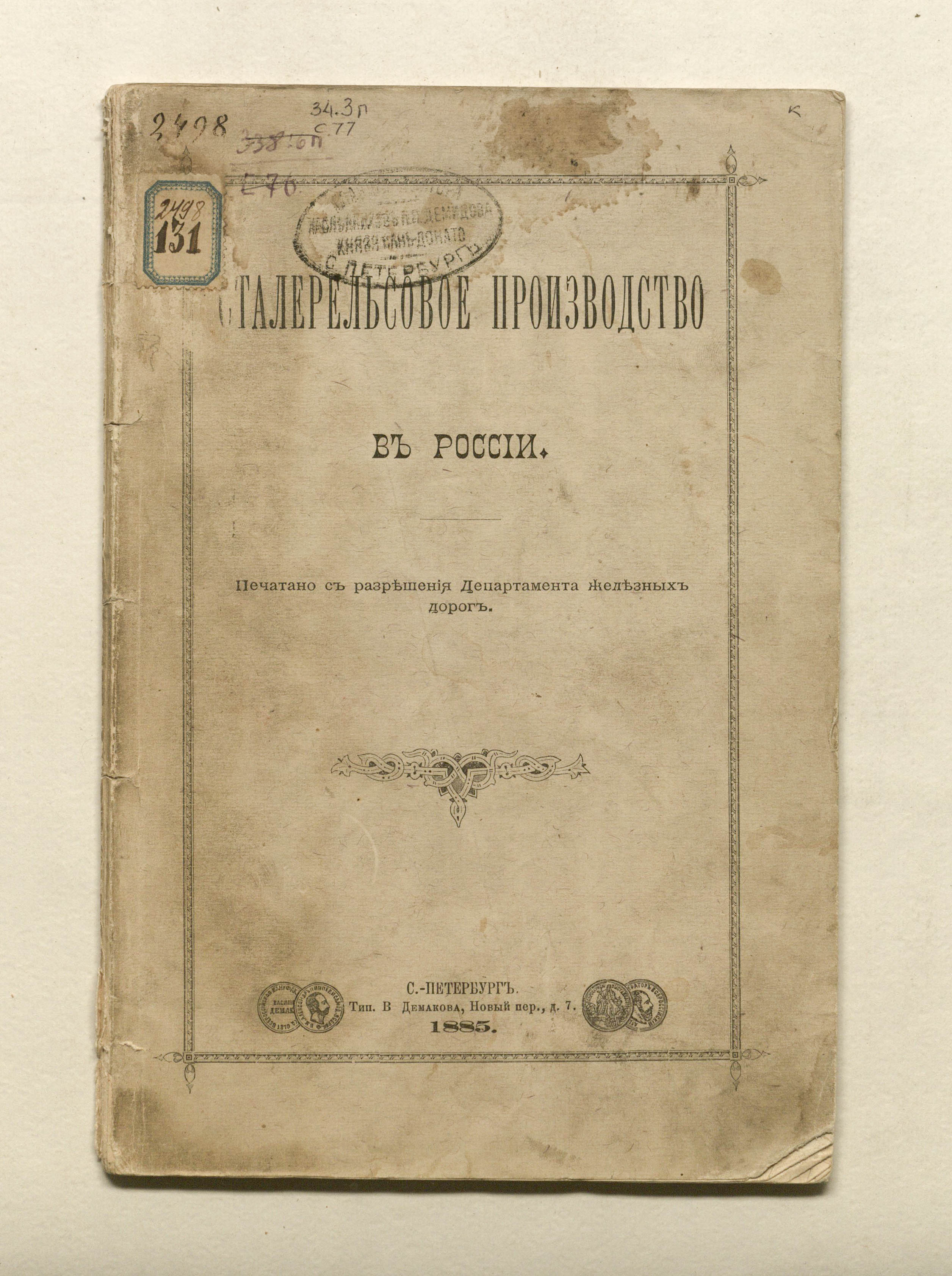 Сталерельсовое производство в России : печатано с разрешения Департамента железных дорог. — Санкт-Петербург : тип. В. Демакова, 1885. — 67 с.
