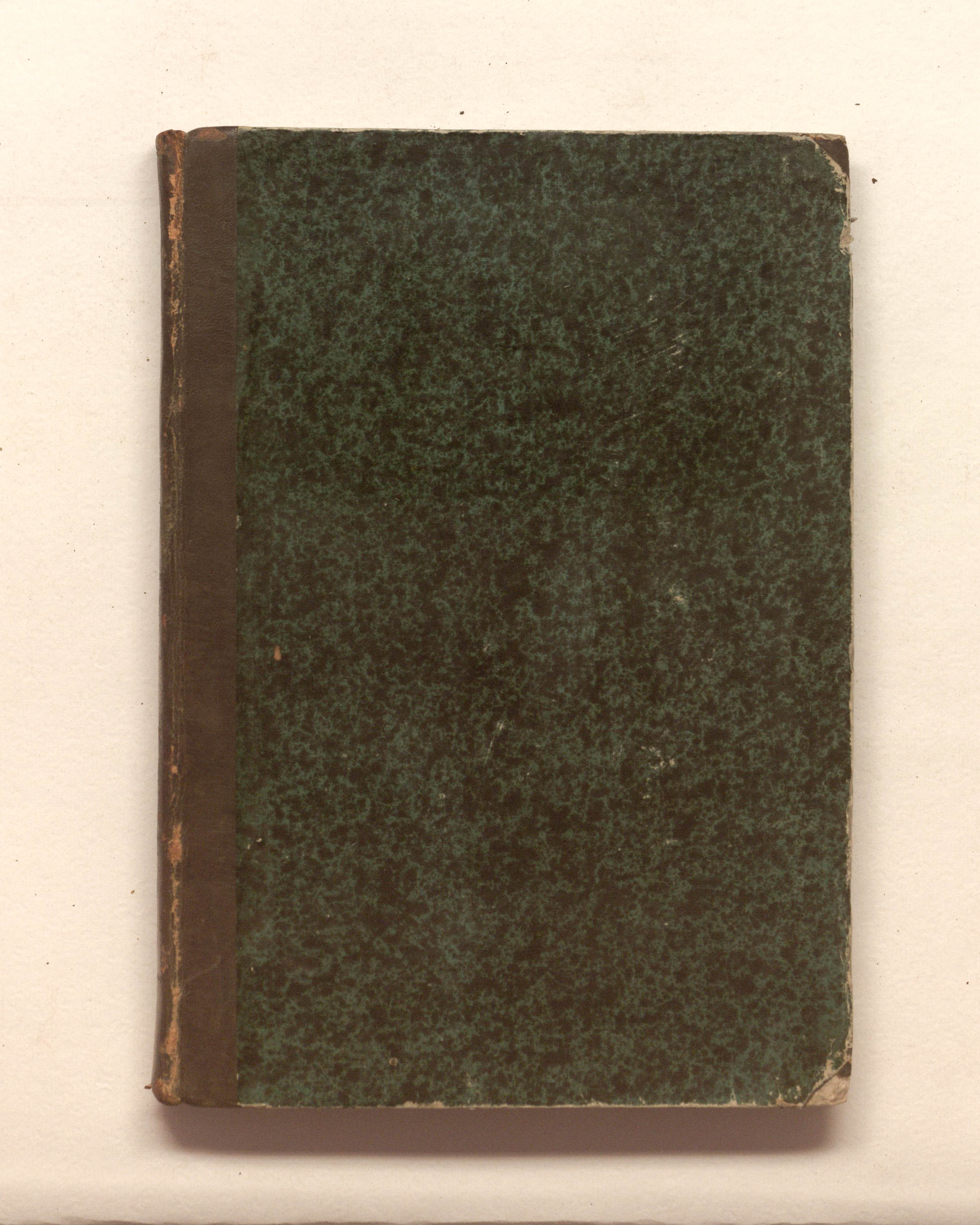 Книга в полукожаном владельческом переплете. Крышки переплета обтянуты бумагой с рисунком «под мрамор».