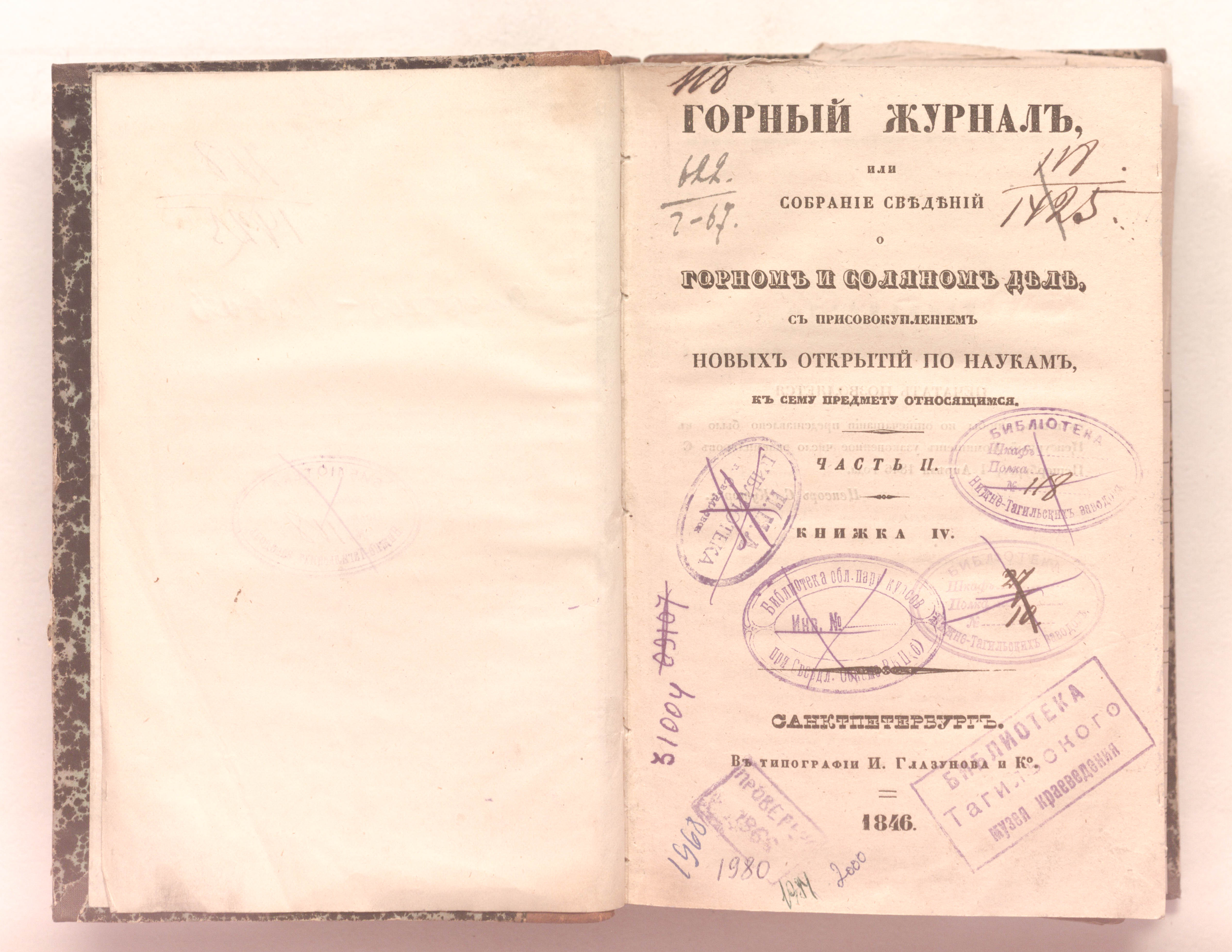 «Библиотека Нижне-Тагильских заводов.» (форзац, тит. л.);