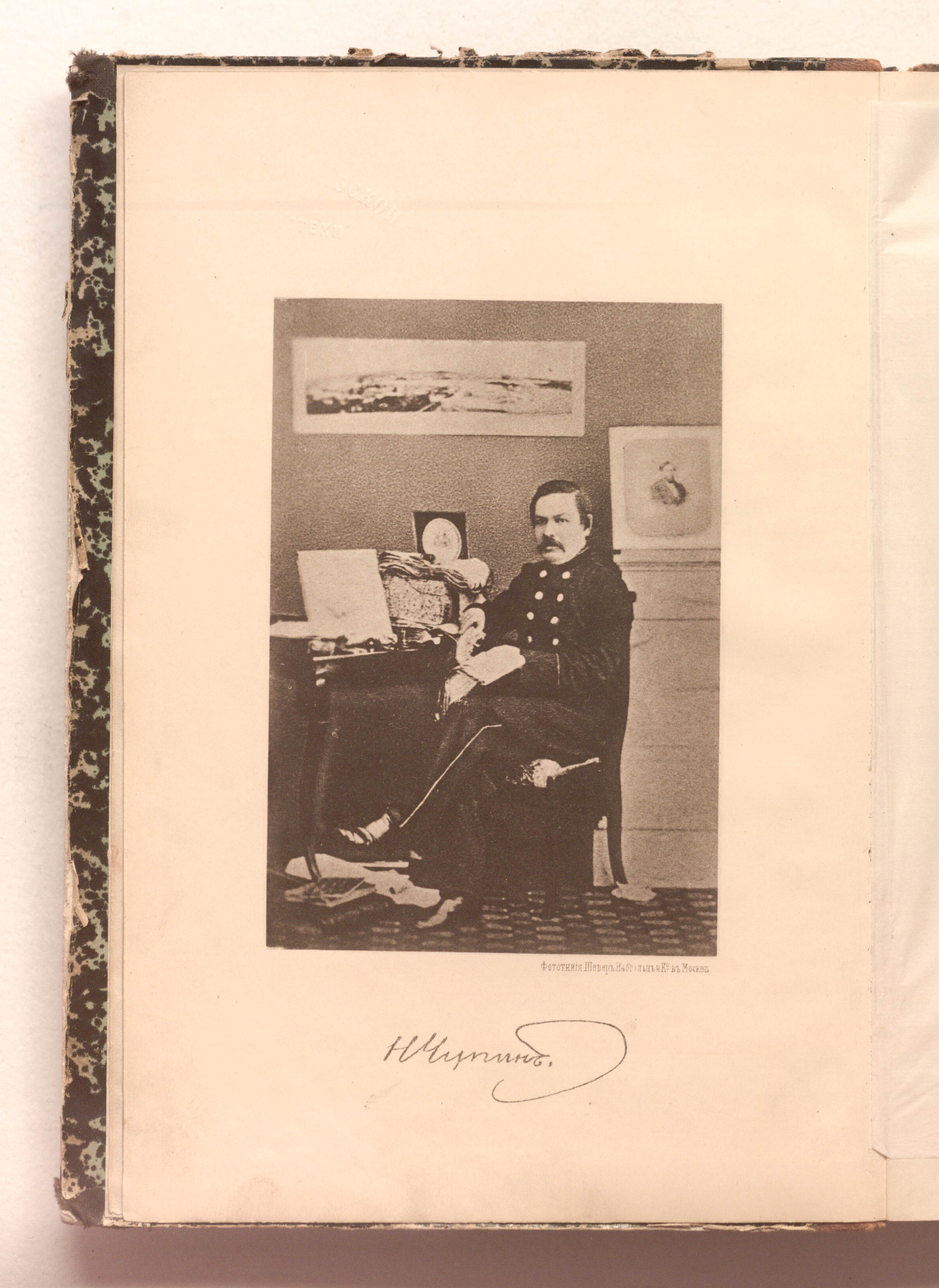 Книга в составном владельческом переплете. Мраморная бумага. Сохранилась оригинальная издательская обложка.