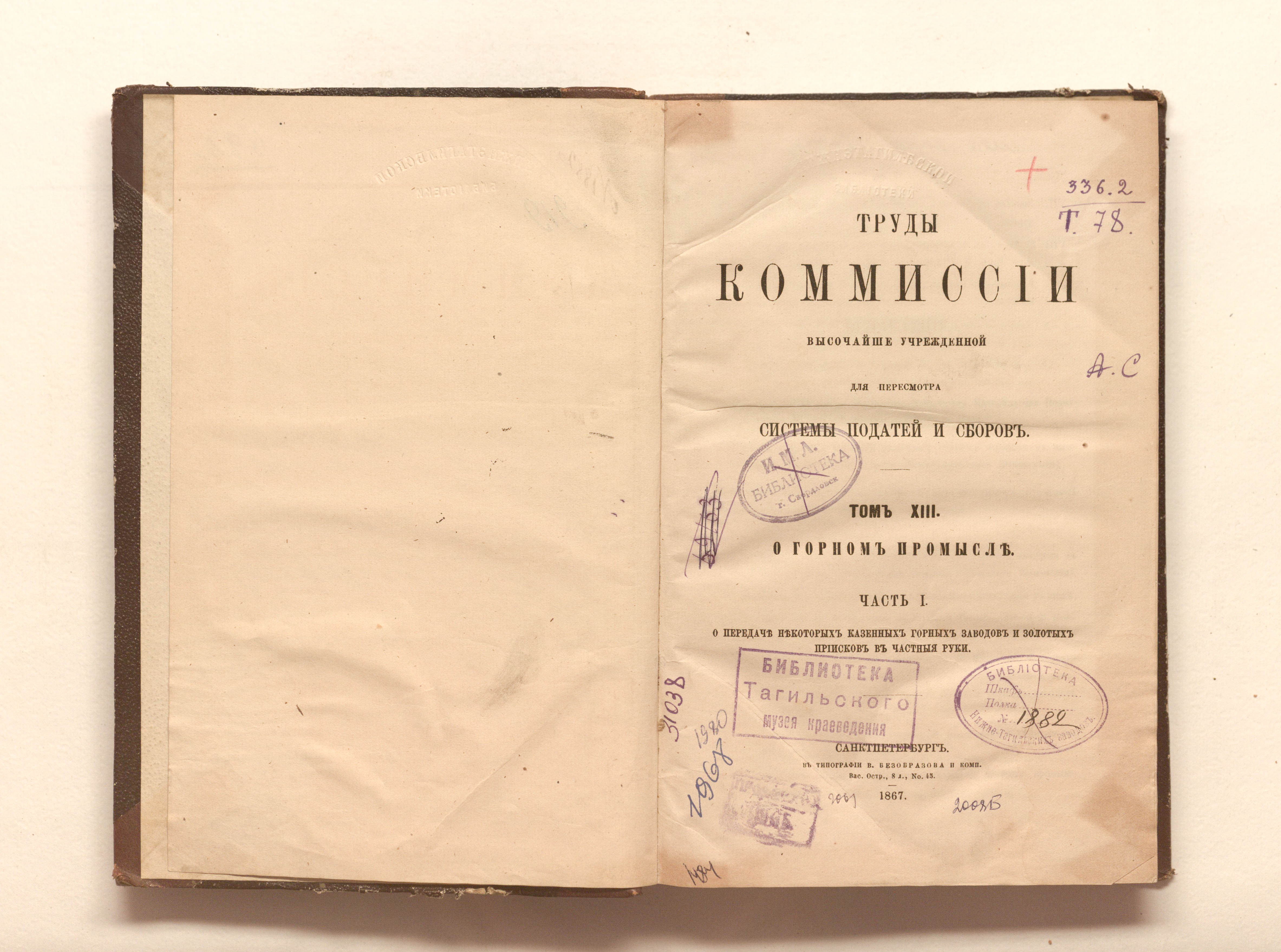 «Библиотека Нижне-Тагильских заводов. № 1882» (тит. л.);