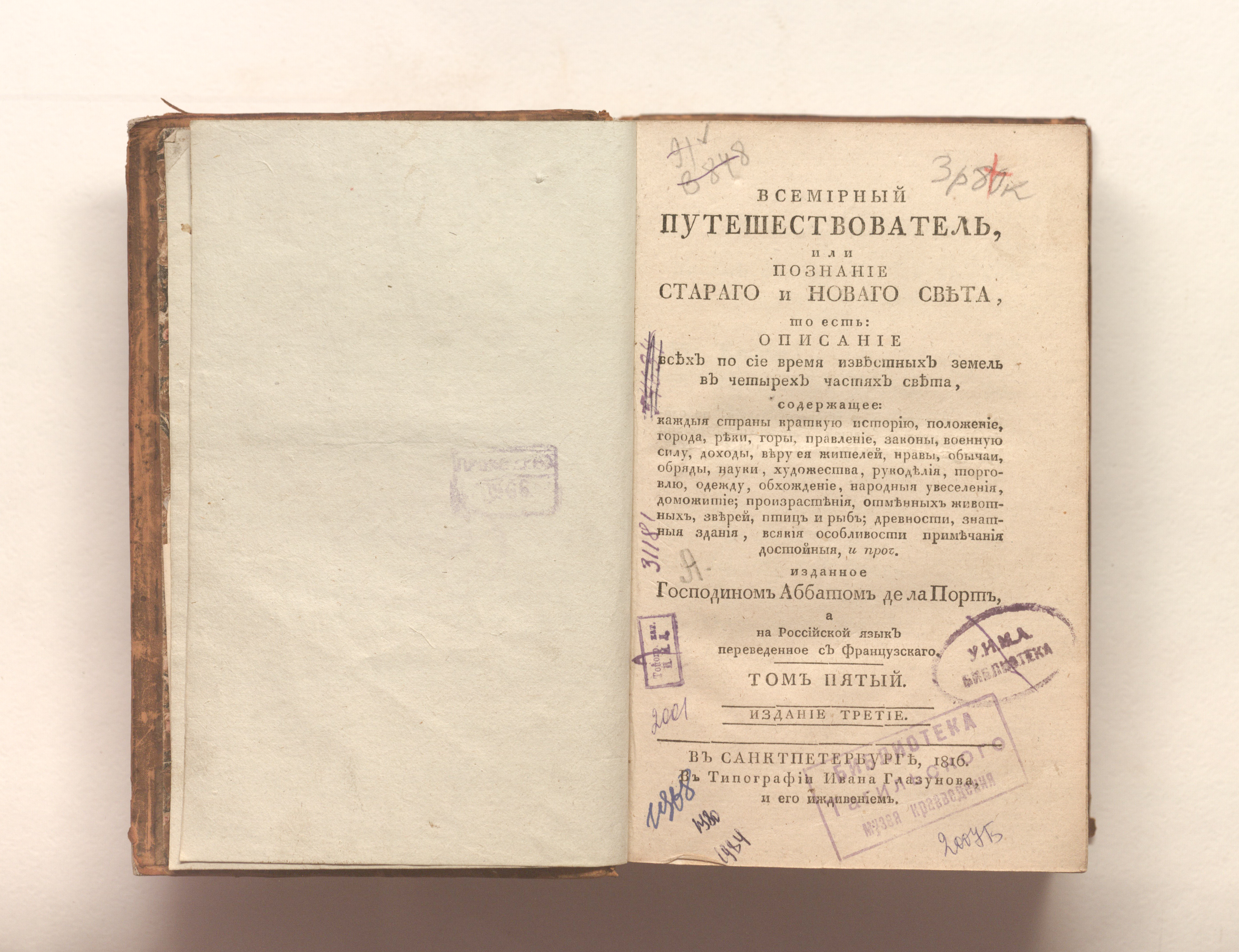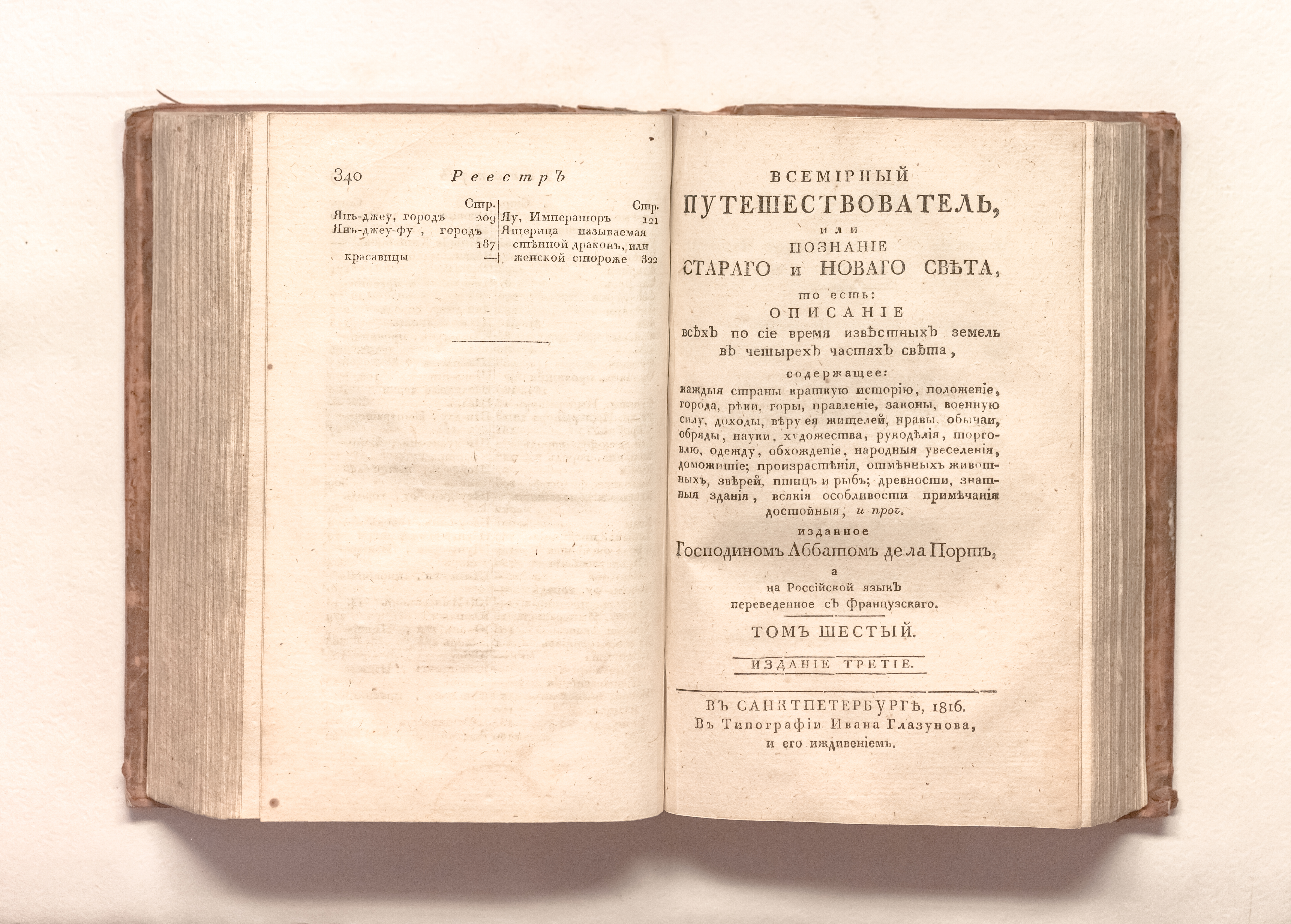 Всемирный путешествователь, или Познание Стараго, и Новаго света, то есть : описание по сие время известных земель в четырех честях света… изданное господином аббатом де ла Порт
