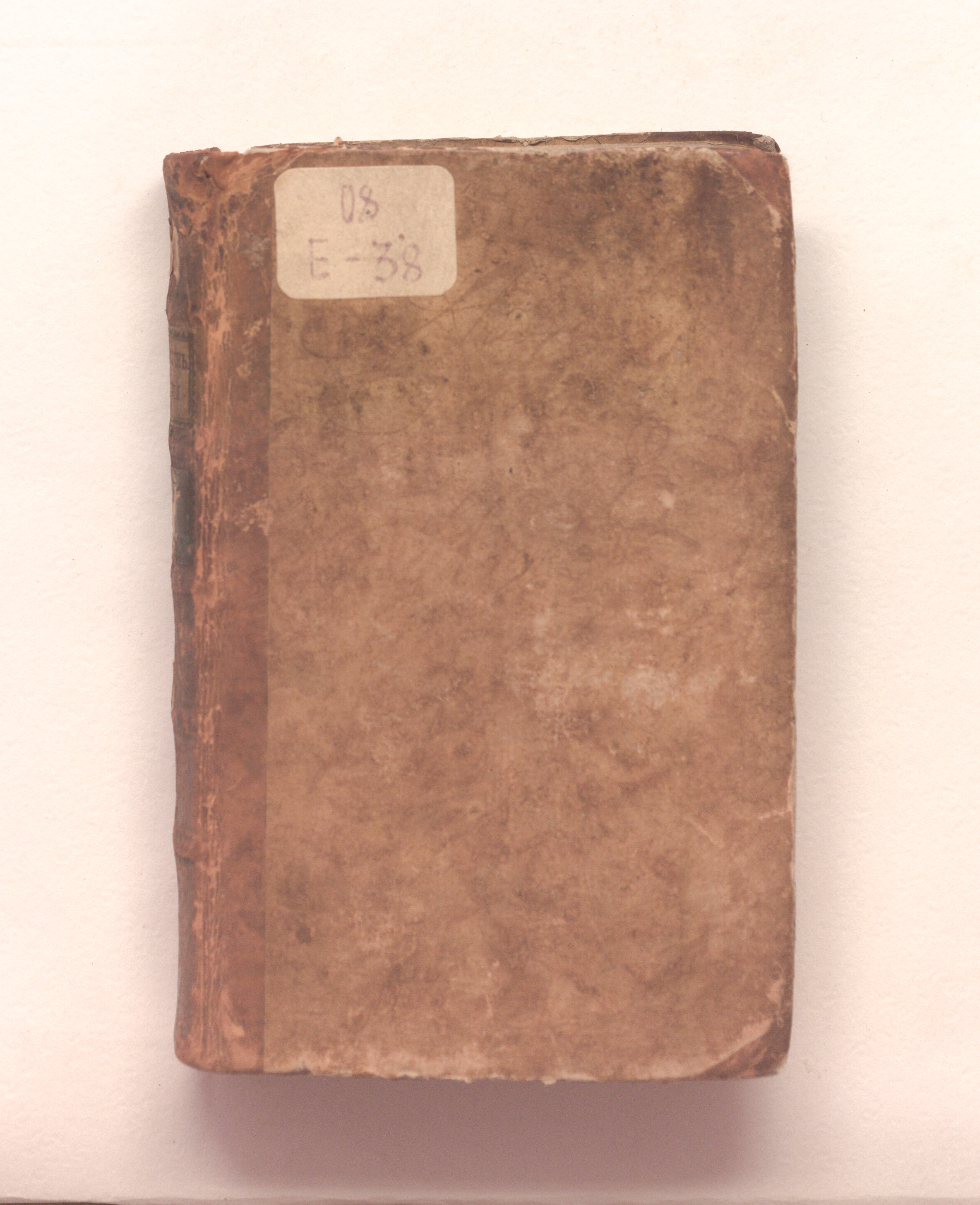 Книга в полукожаном владельческом переплете. Крышки переплета обтянуты бумагой с рисунком «под мрамор». Обрез тонированный. Бумага верже.