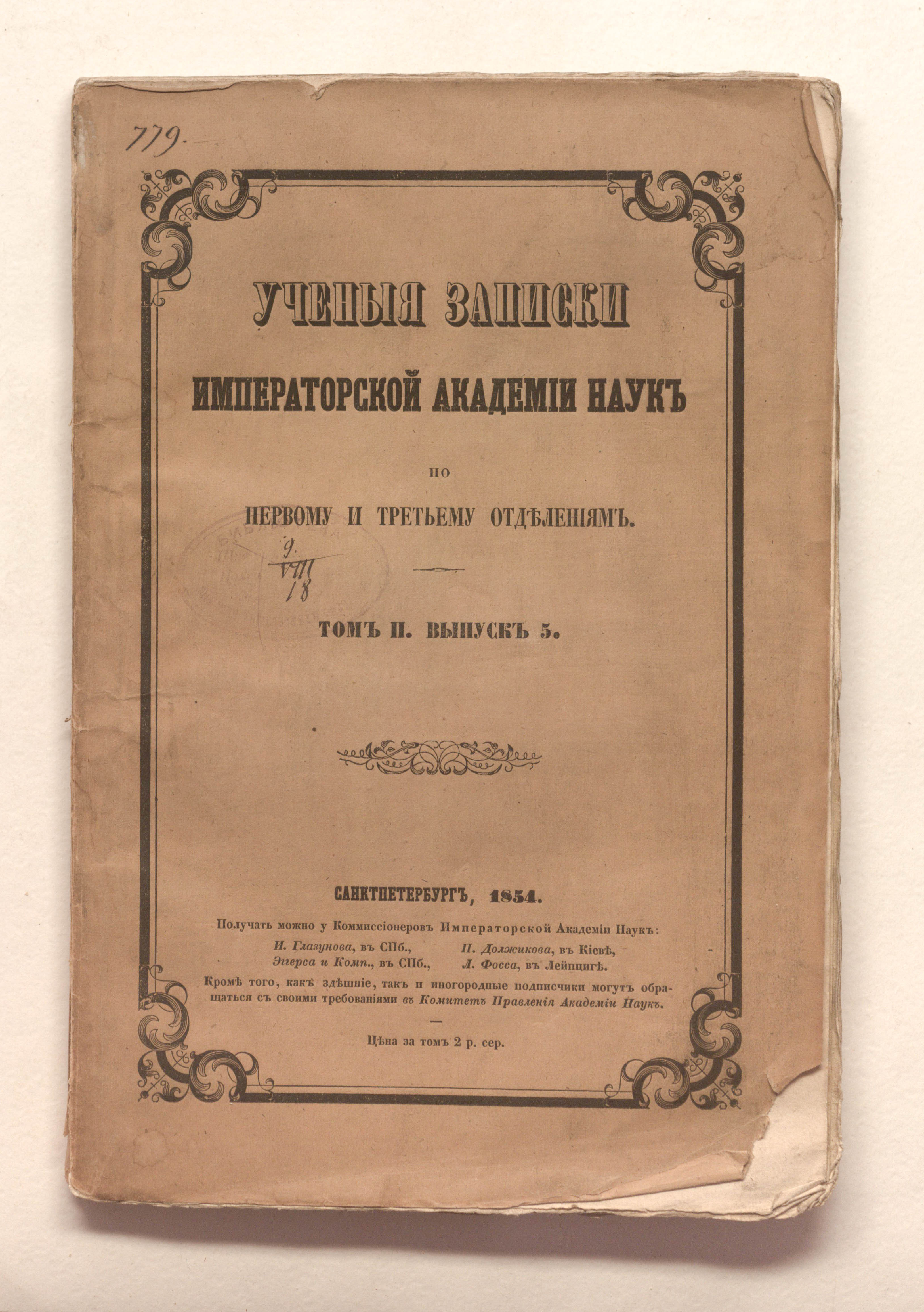 Ученые записки Императорской Академии наук по Первому и Третьему отделениям / Императорская академия наук (Санкт-Петербург). – Санкт-Петербург : типография Императорской Академии наук, 1852 - 1855. .