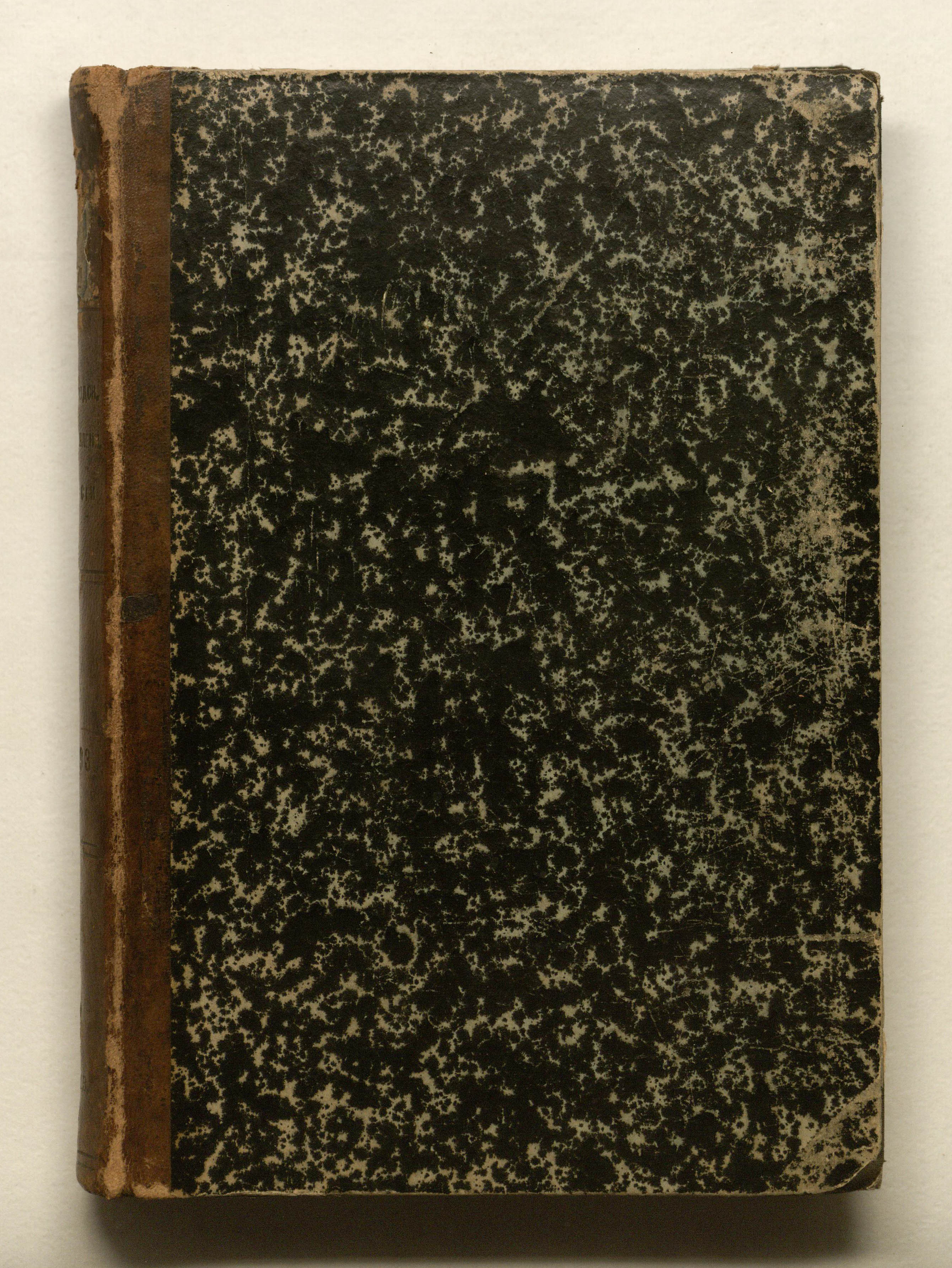 Книга в полукожаном владельческом переплете. Мраморная бумага. Сохранилась оригинальная издательская обложка.