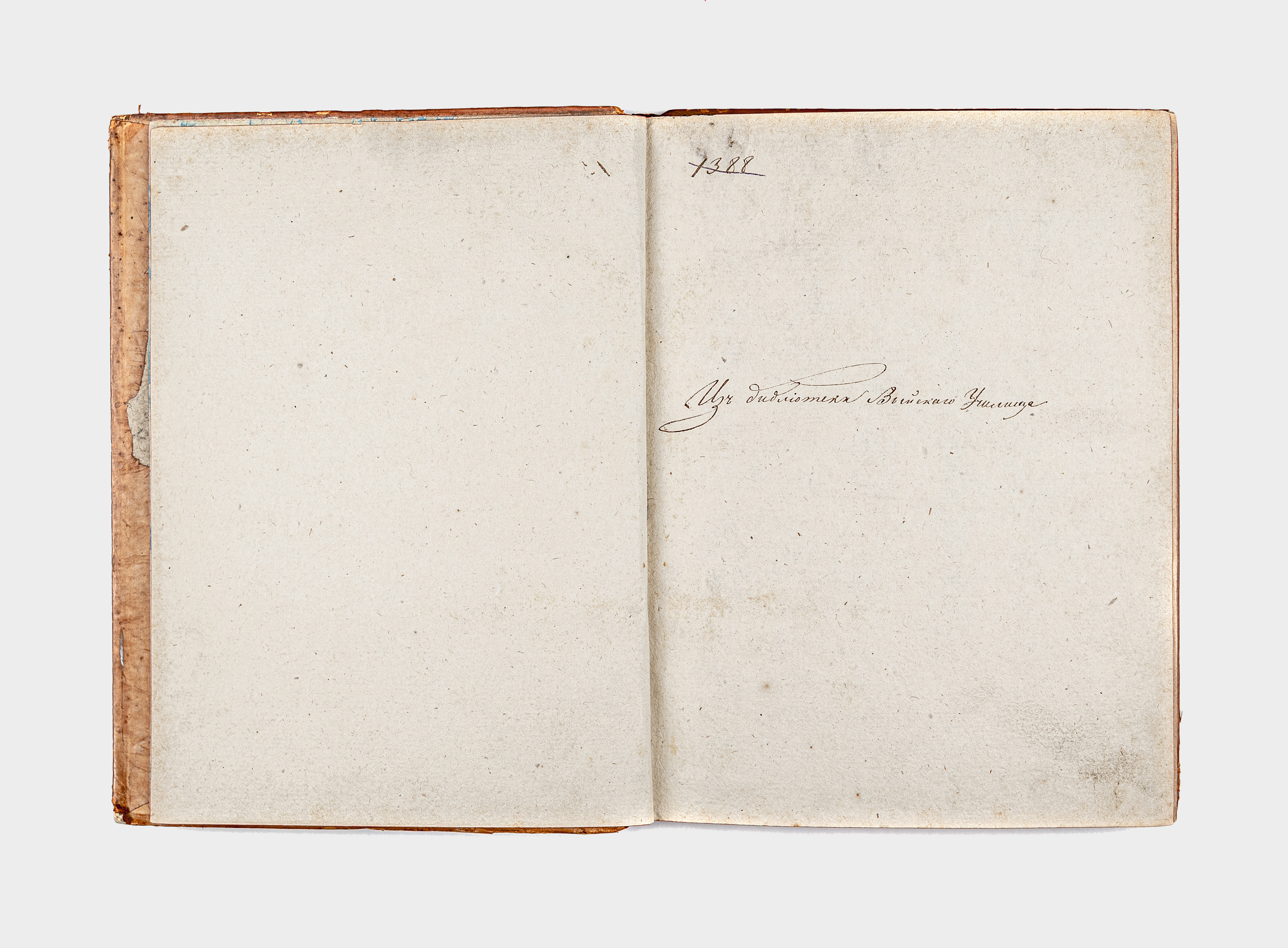 «Из библиотеки Выйскаго училища» (перепл. л.);