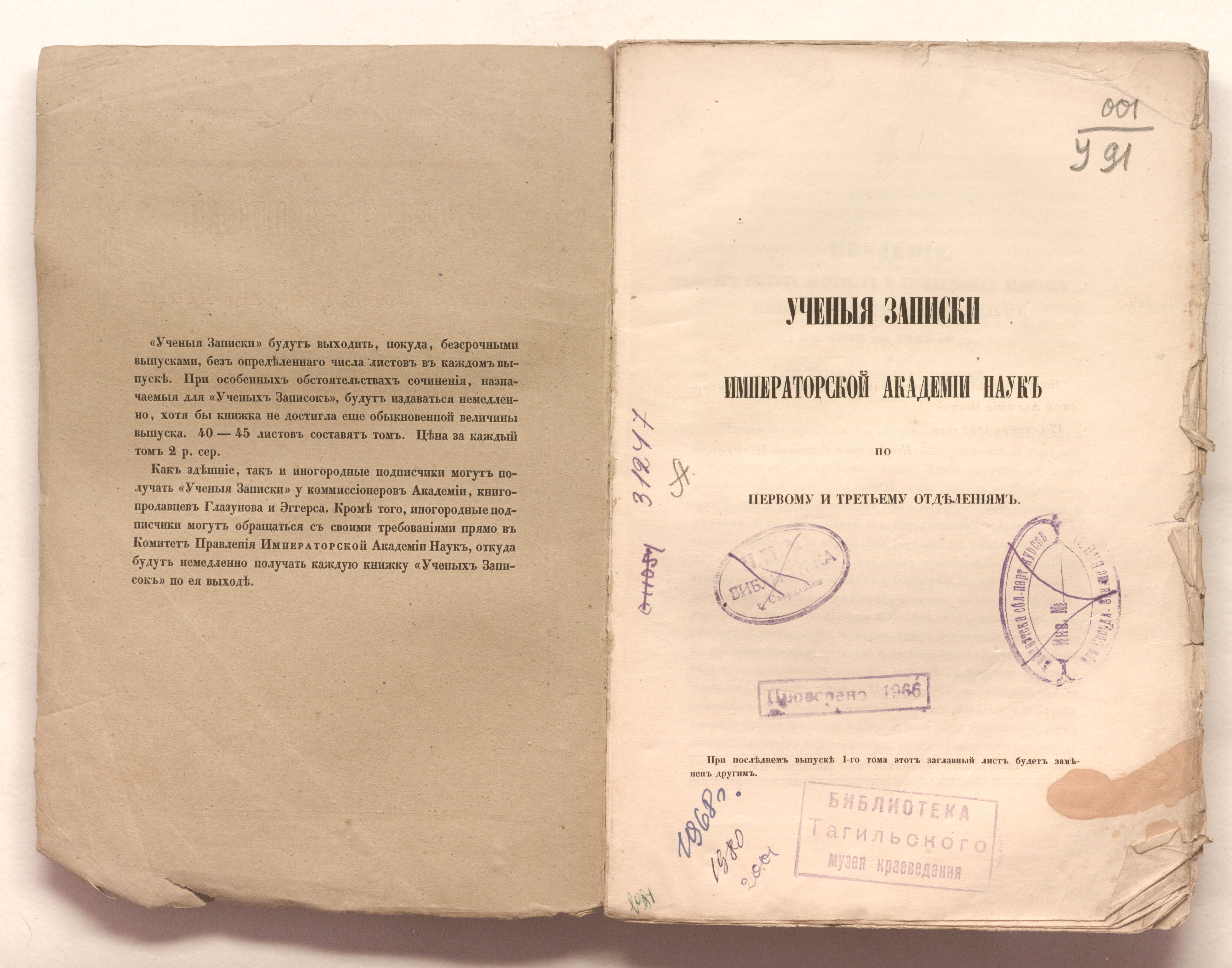 Ученые записки Императорской Академии наук по Первому и Третьему отделениям / Императорская академия наук (Санкт-Петербург). – Санкт-Петербург : типография Императорской Академии наук, 1852-1855.