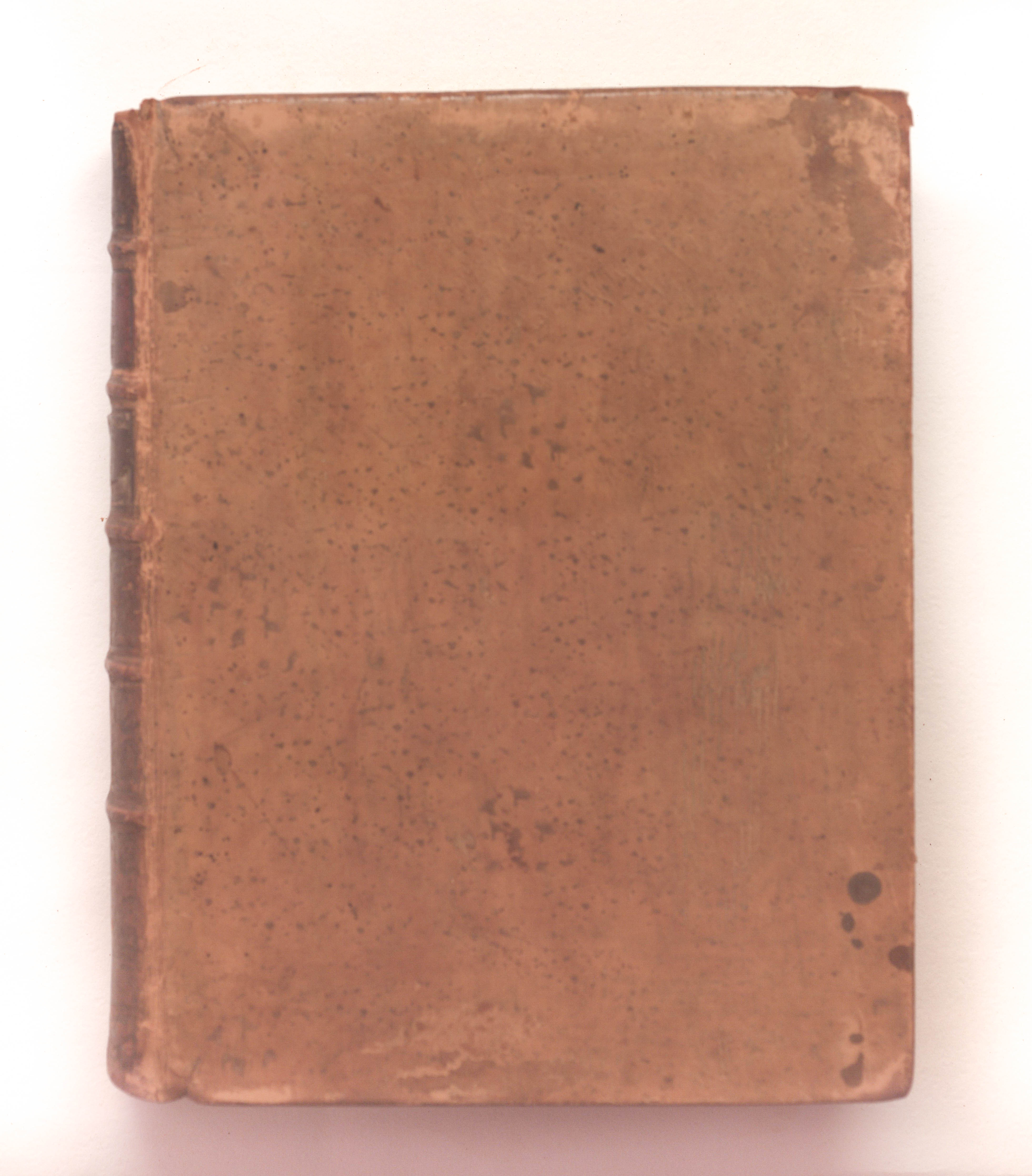 Книга в цельнокожаном владельческом переплете. Обрез тонированный. Бумага верже. Форзацы украшены бумагой с рисунком «павлинье перо».