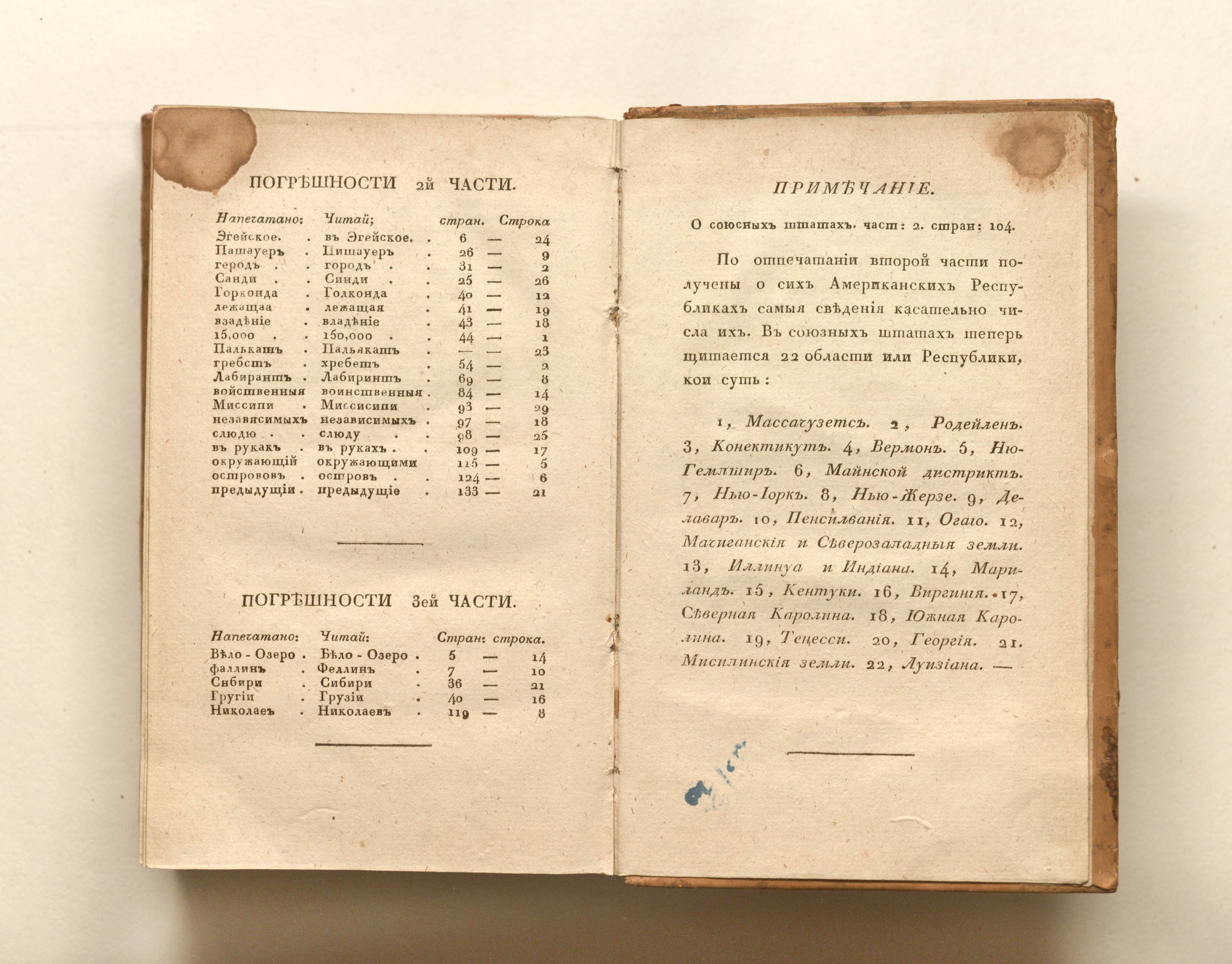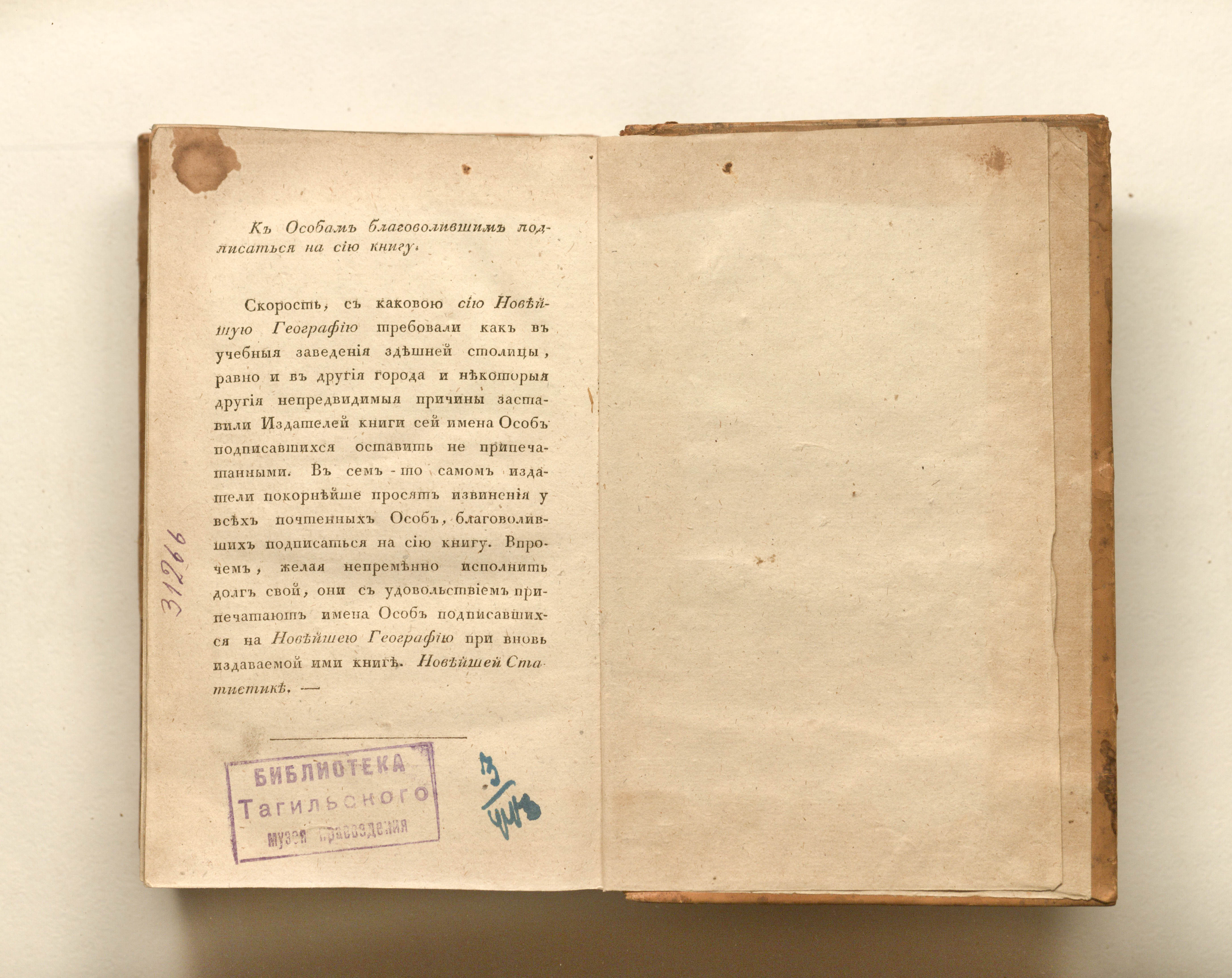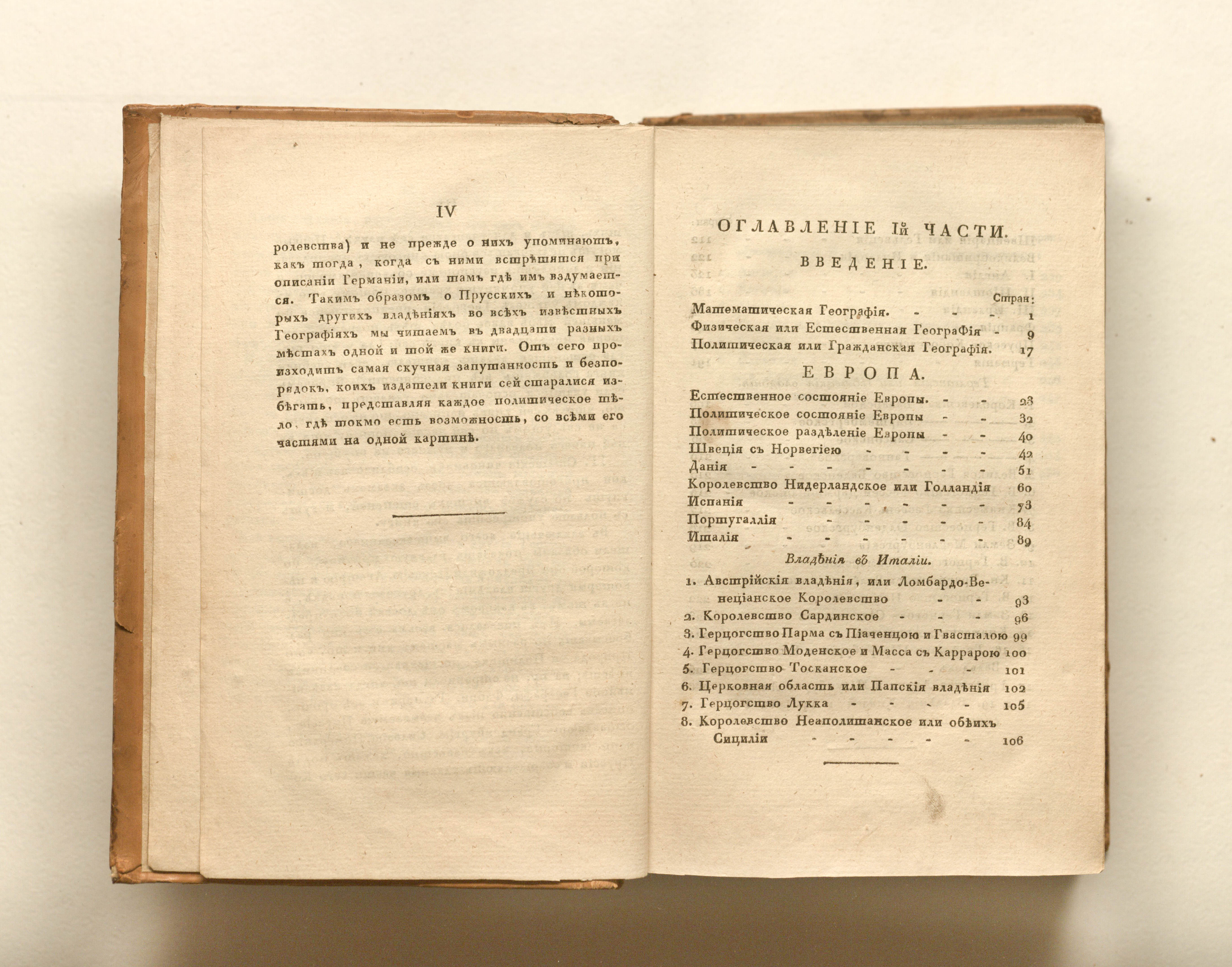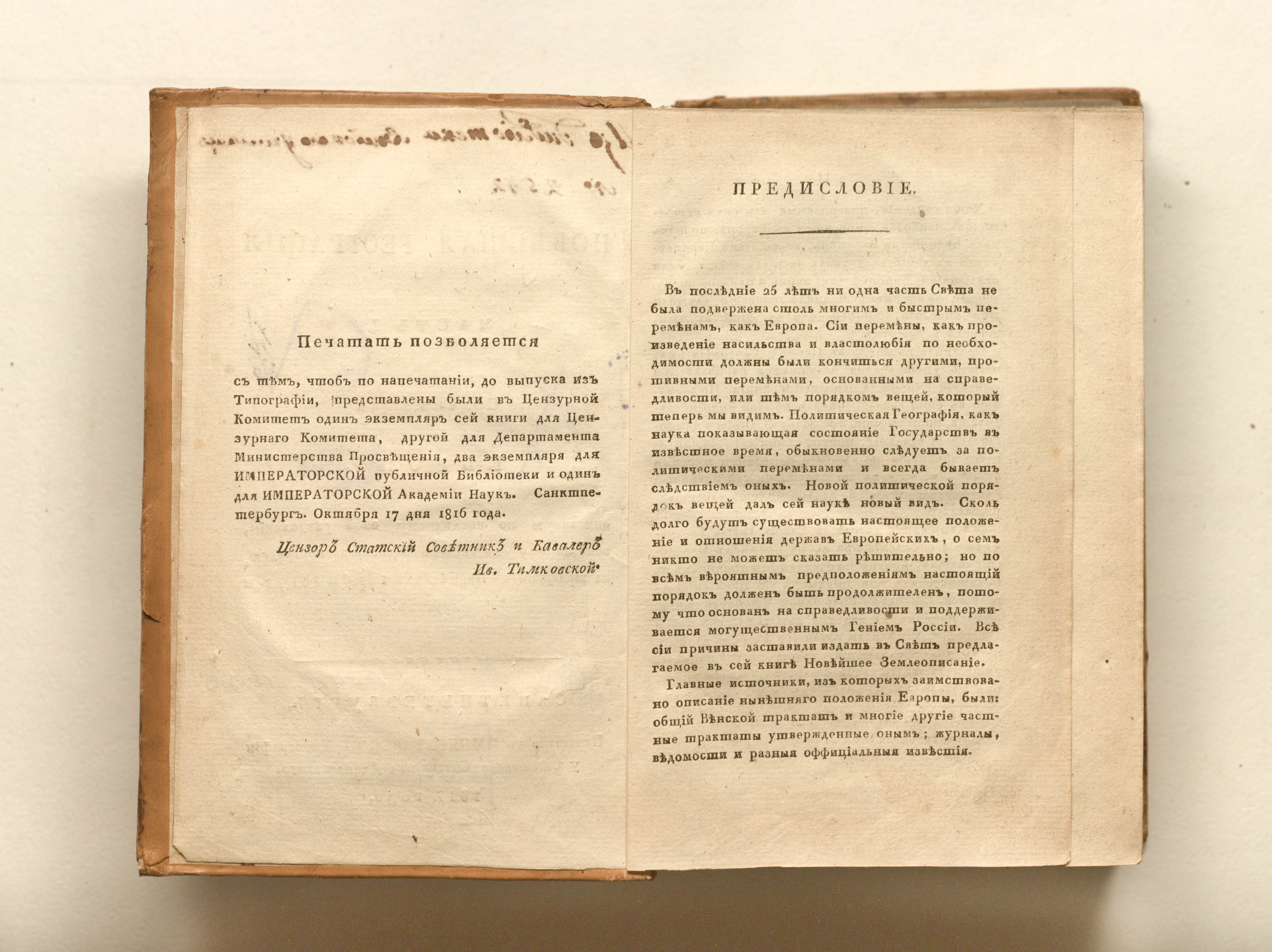 Пятунин, Андрей. Новейшая всеобщая география. Ч.1. Содержащая Европу, описанную по последнему оной разделению, основанному на актах Венскаго конгресса, на трактатах парижских 1814 и 1815 г. и других / А. Пятунин. — Санкт-Петербург :печатаго в Императорской типографии у статского советника Даниловскаго, 1818. — [2], IV, [2],17-218, [2] с. ; 21.5х13 см.