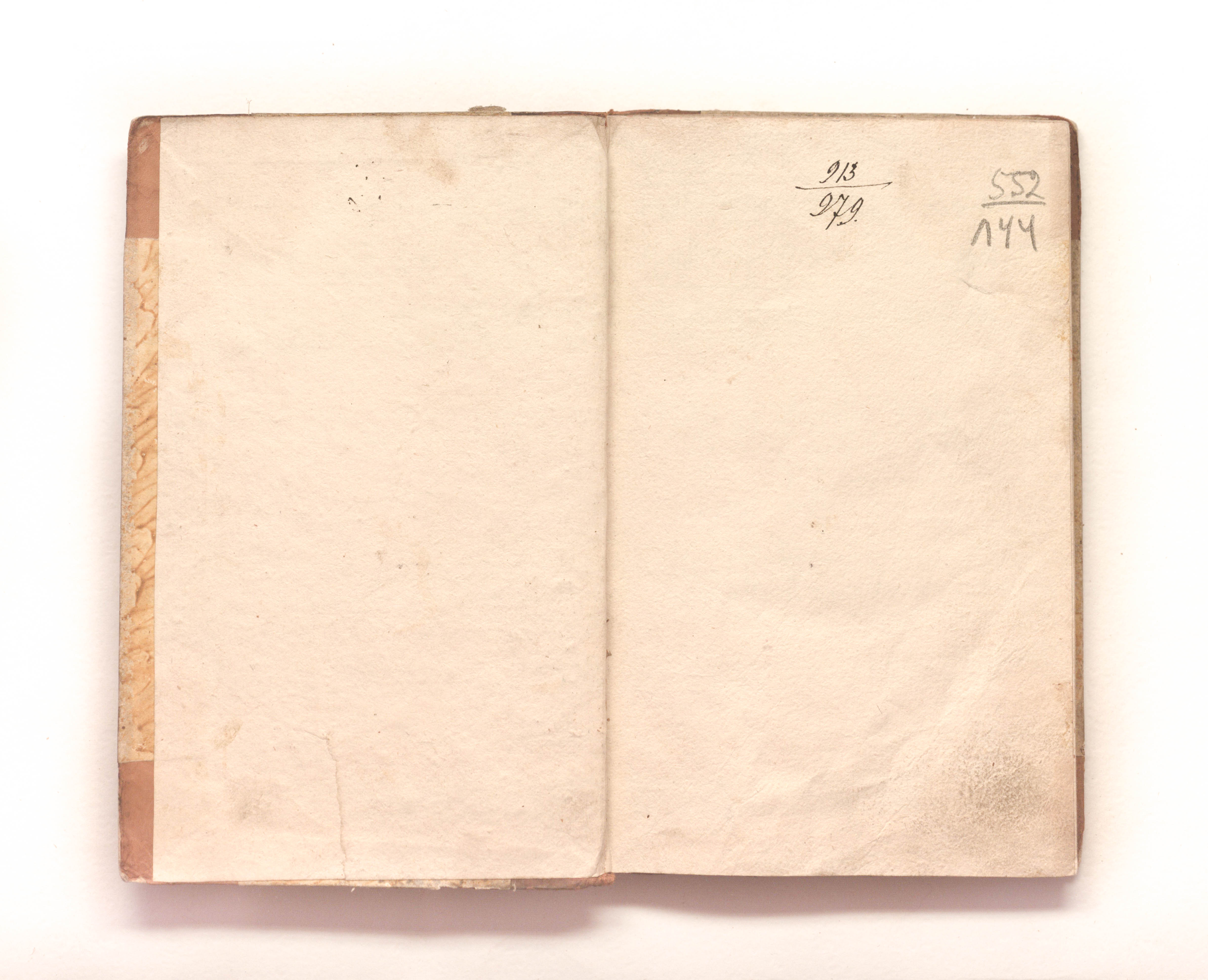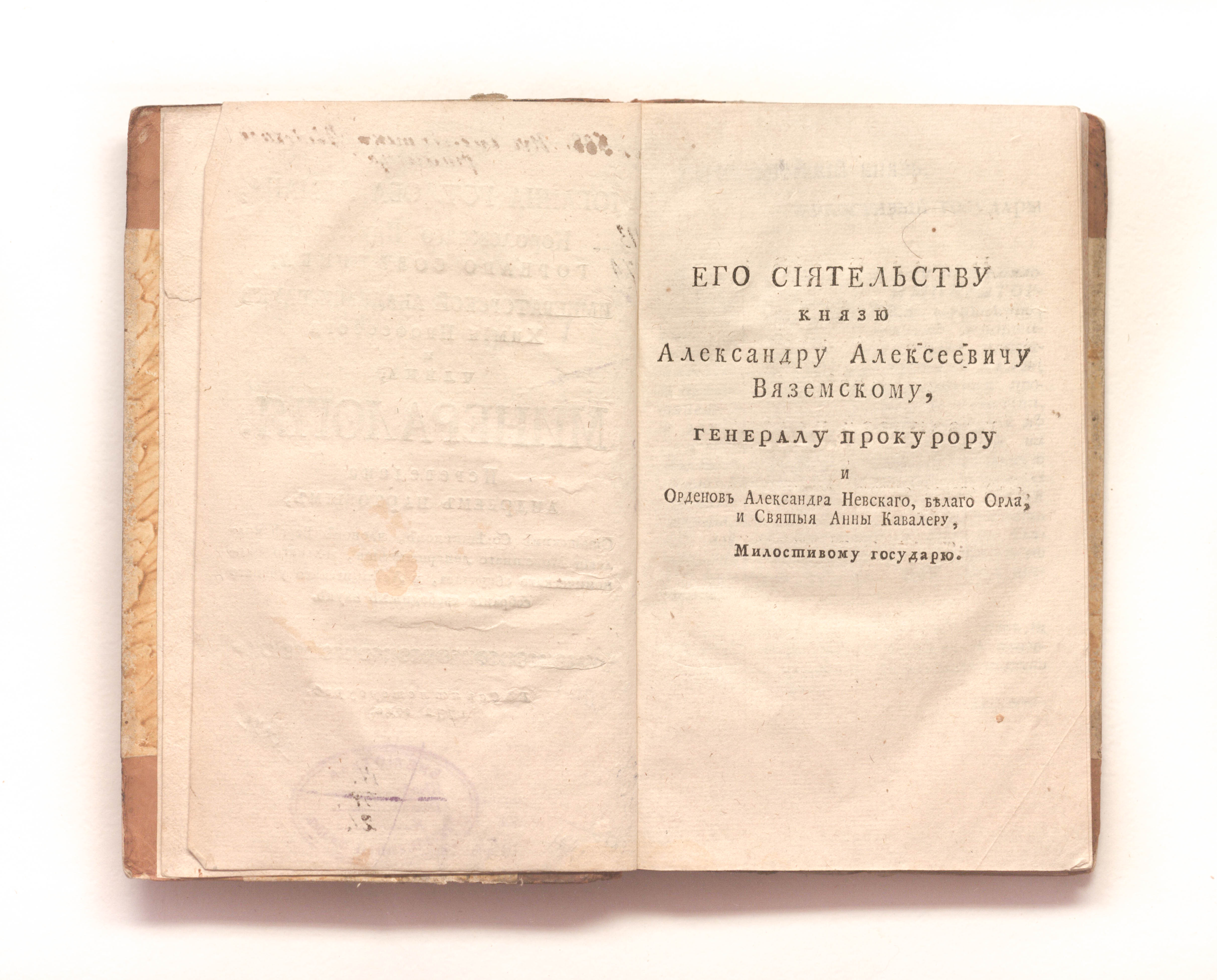 Книга в полукожаном владельческом переплете. Крышки переплета обтянуты бумагой с рисунком «под мрамор». Обрез тонированный. Бумага верже. Водяной знак (форзац).