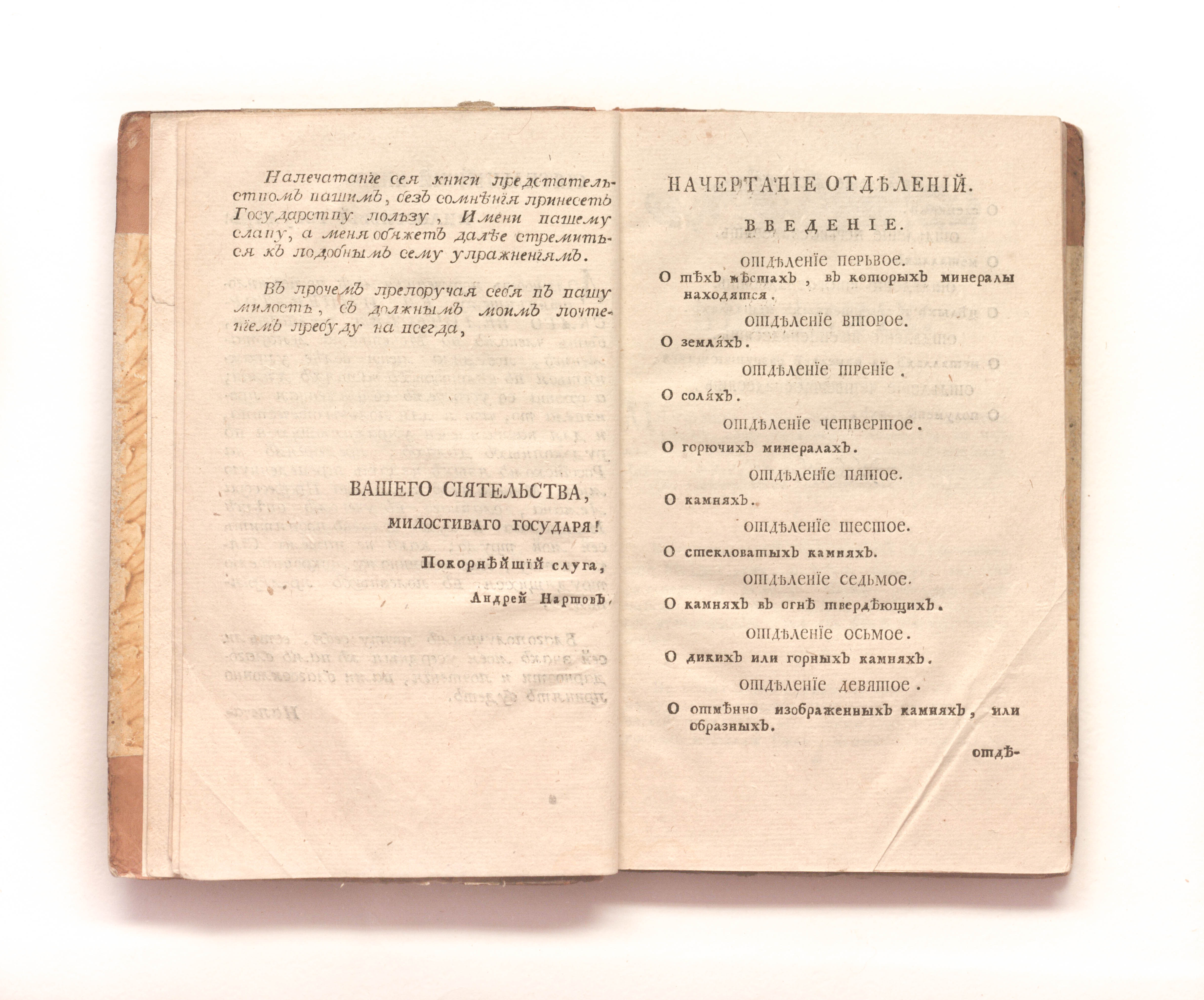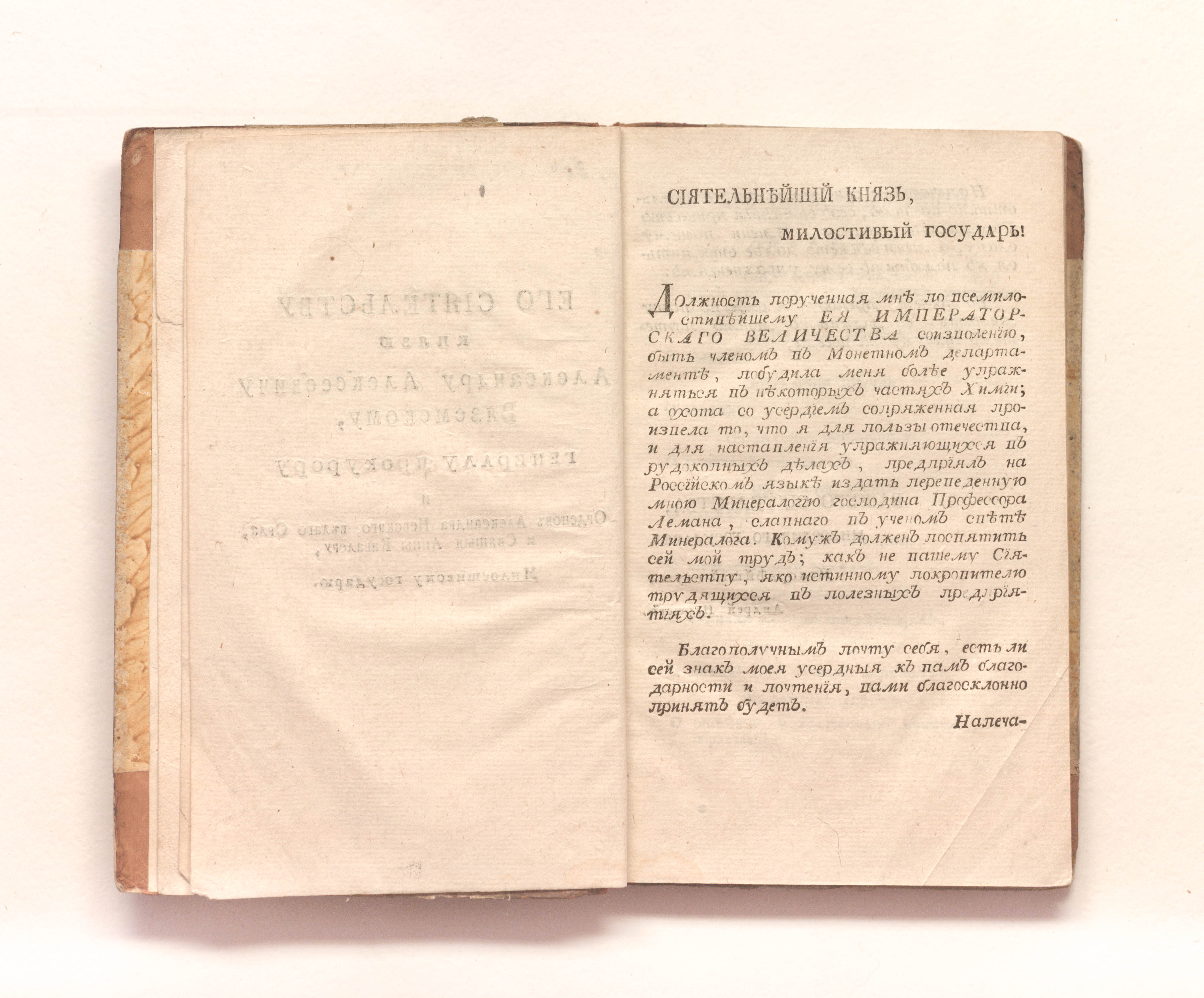 Леман, Иоганн Готлоб (1719-1767). Иоганна Готлоба Лемана, королевскаго прусскаго горного советника, Имп. Академии наук химии профессора и члена Минералогия. Переведена Андреем Нартовым, статским советником, членом Берг-коллегии Монетнаго департамента, Вольнаго экономическаго общества, и Лейципскаго собрания свободных наук / Иоганн Готлоб Леман – Санкт-Петербург : [тип. Акад. наук], 1772. – [8], 141, [1] с. ; 20х12,5 см.