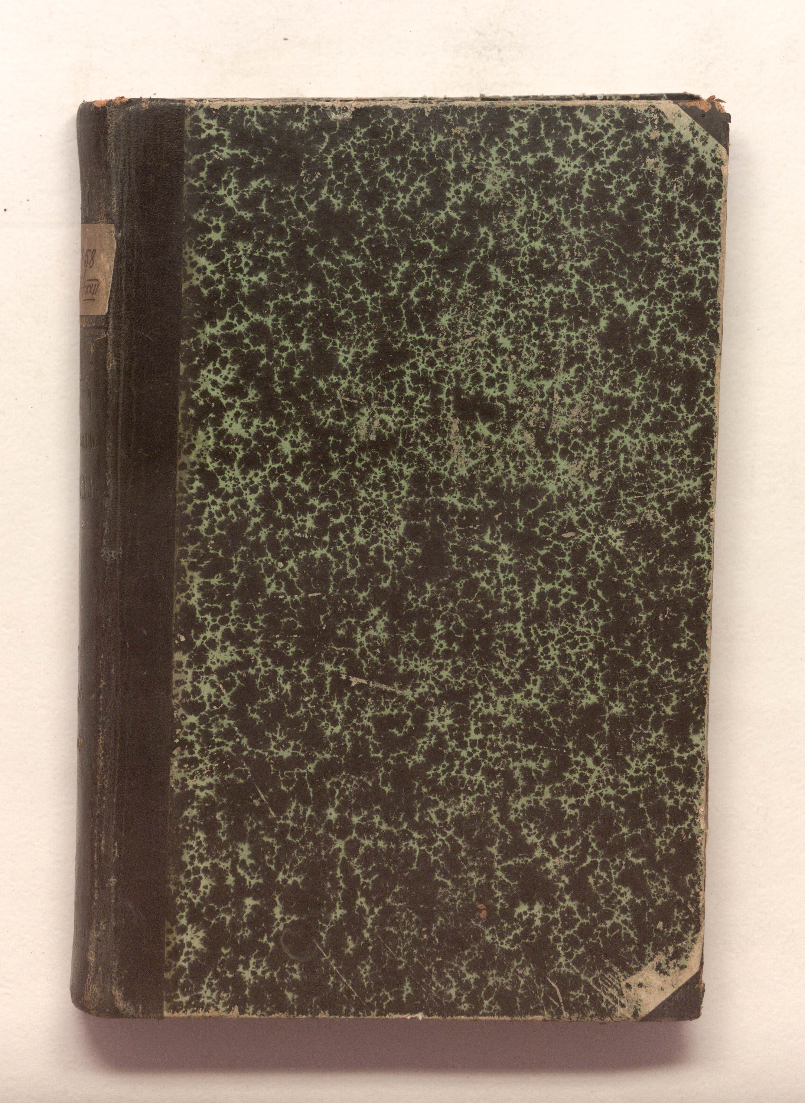 Книга в полукожаном владельческом переплете. Мраморная бумага. Сохранилась оригинальная издательская обложка.