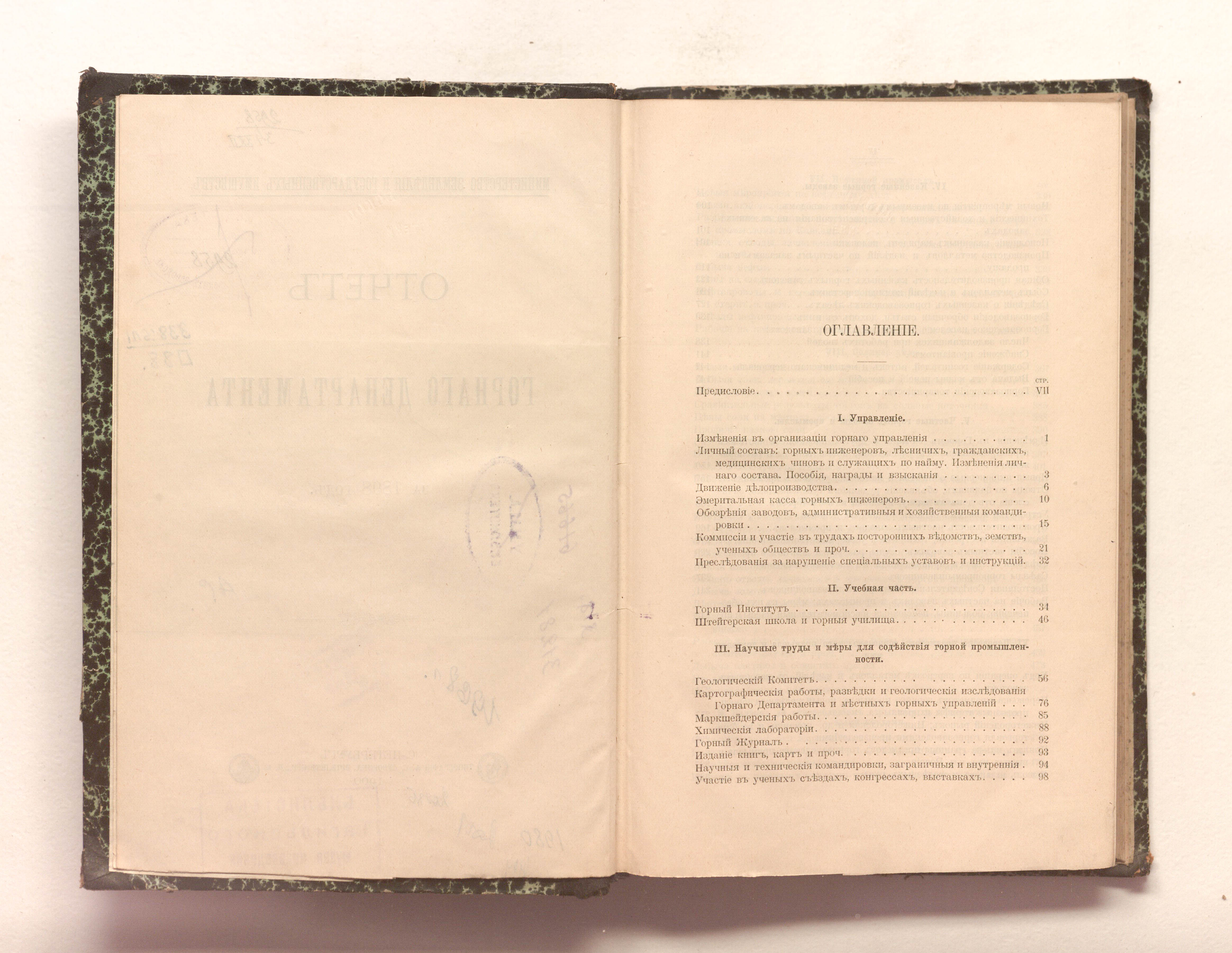 Отчет горного департамента за 1898 год / М-во земледелия и государственных имуществ. — Санкт-Петербург : Типография А. С. Суворина, 1900. — VIII, 523 с. : 24,5х17 см.