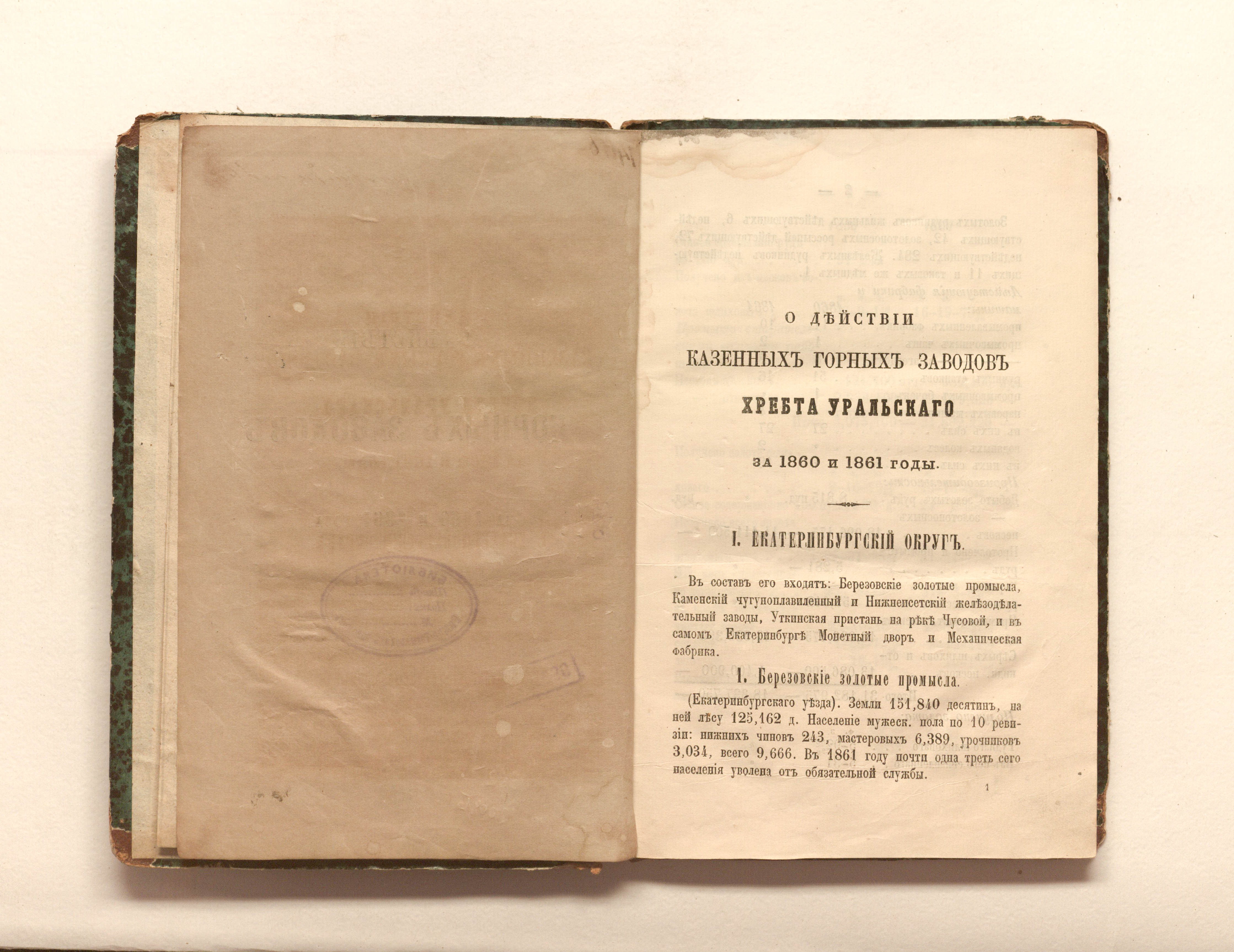О действии горных заводов за 1860 и 1861 года. — [Б. м.] : в типографии Н. П. Рейхельта, 1862. — 207 с. ; 22,5х15 см.