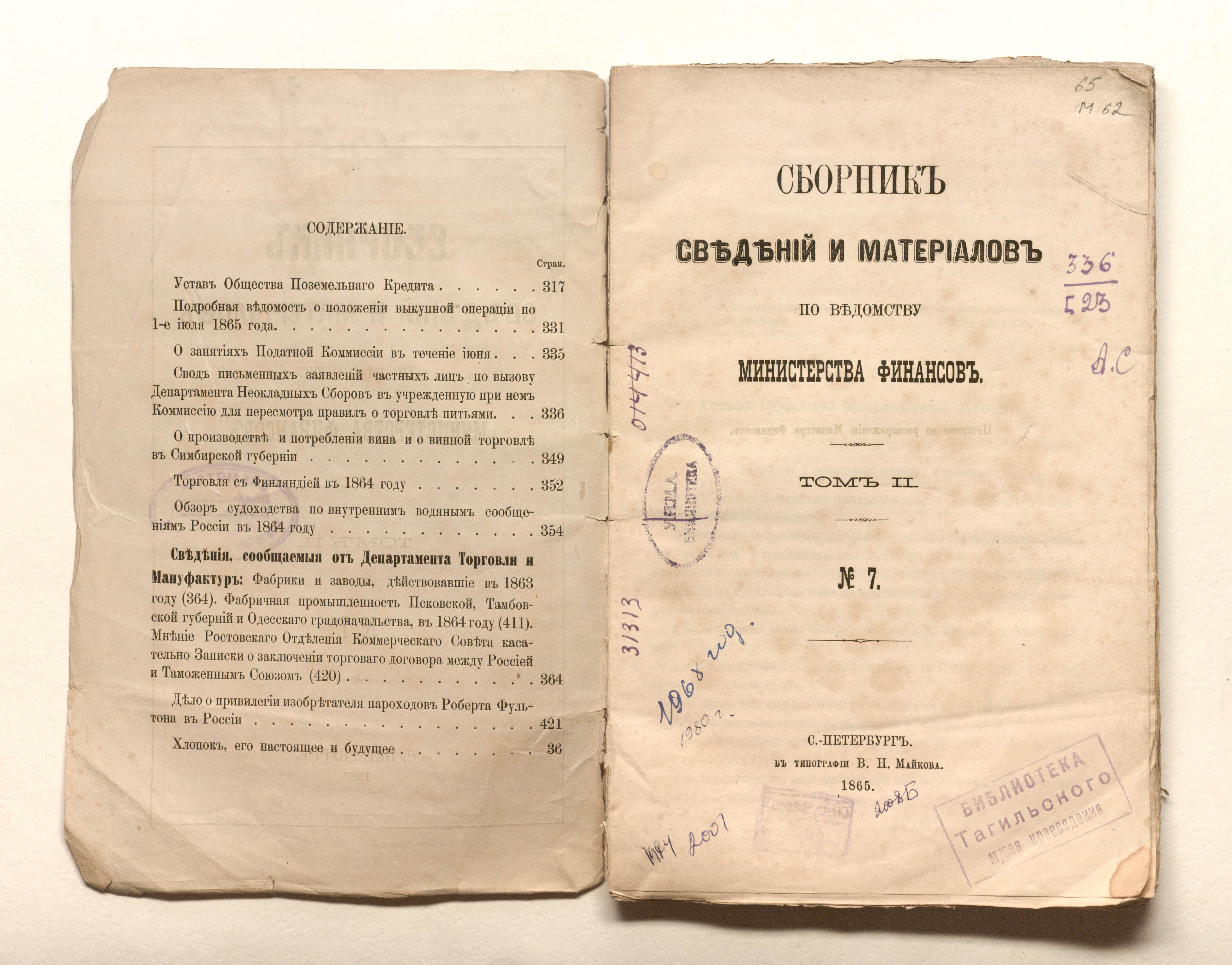 Сборник сведений и материалов по ведомству Министерства Финансов. Т. 2. № 7 / ред. А. Корсак. — Санкт-Петербург : в тип. В. Н. Майкова, 1865. — 317-428, 36-97 с. ; 25х16,5 см.