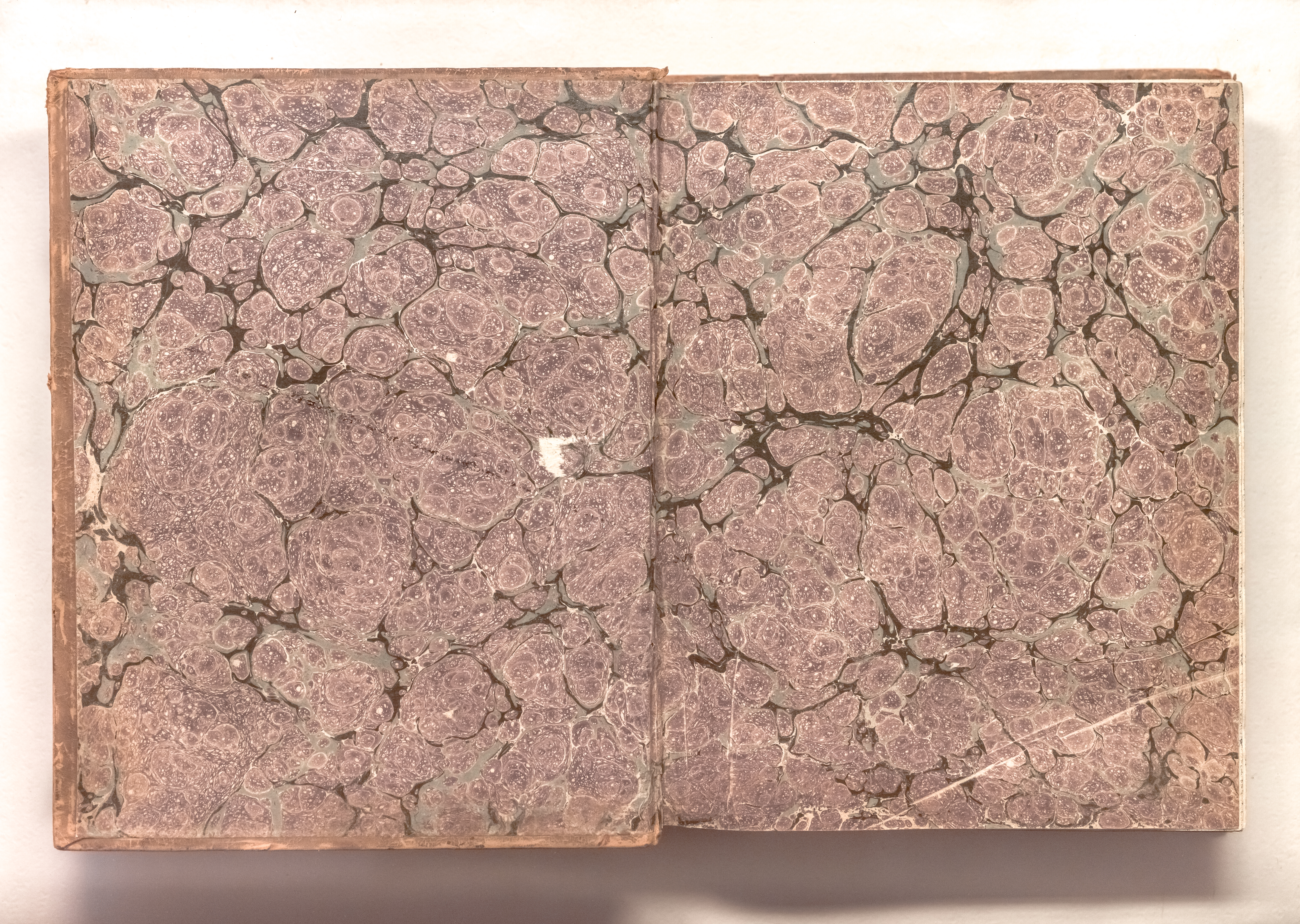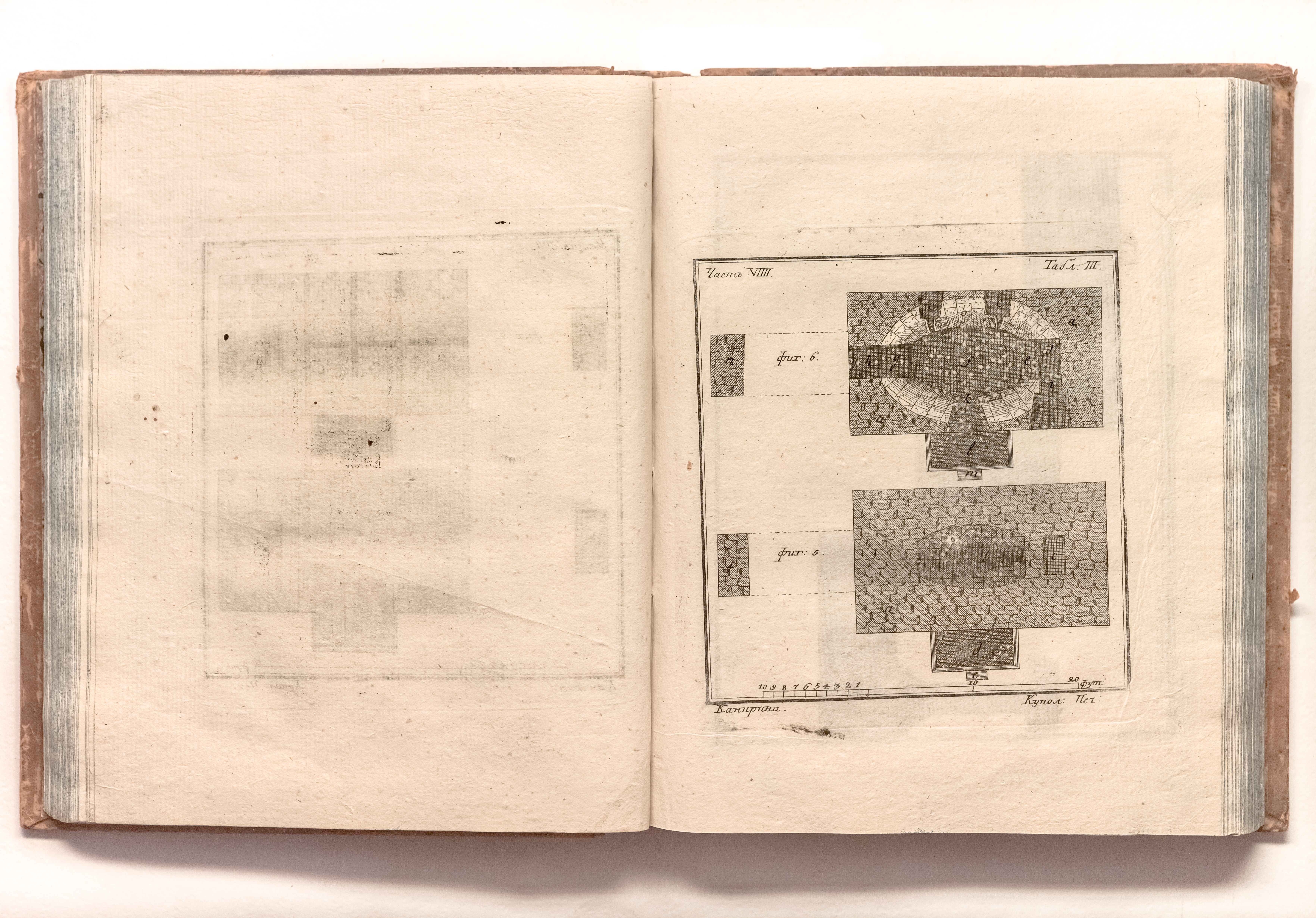 Книга в цельнокожаном владельческом переплете. Форзацы украшены бумагой с рисунком «под мрамор». Обрез тонированный. Бумага верже. Водяной знак (перепл. л.).