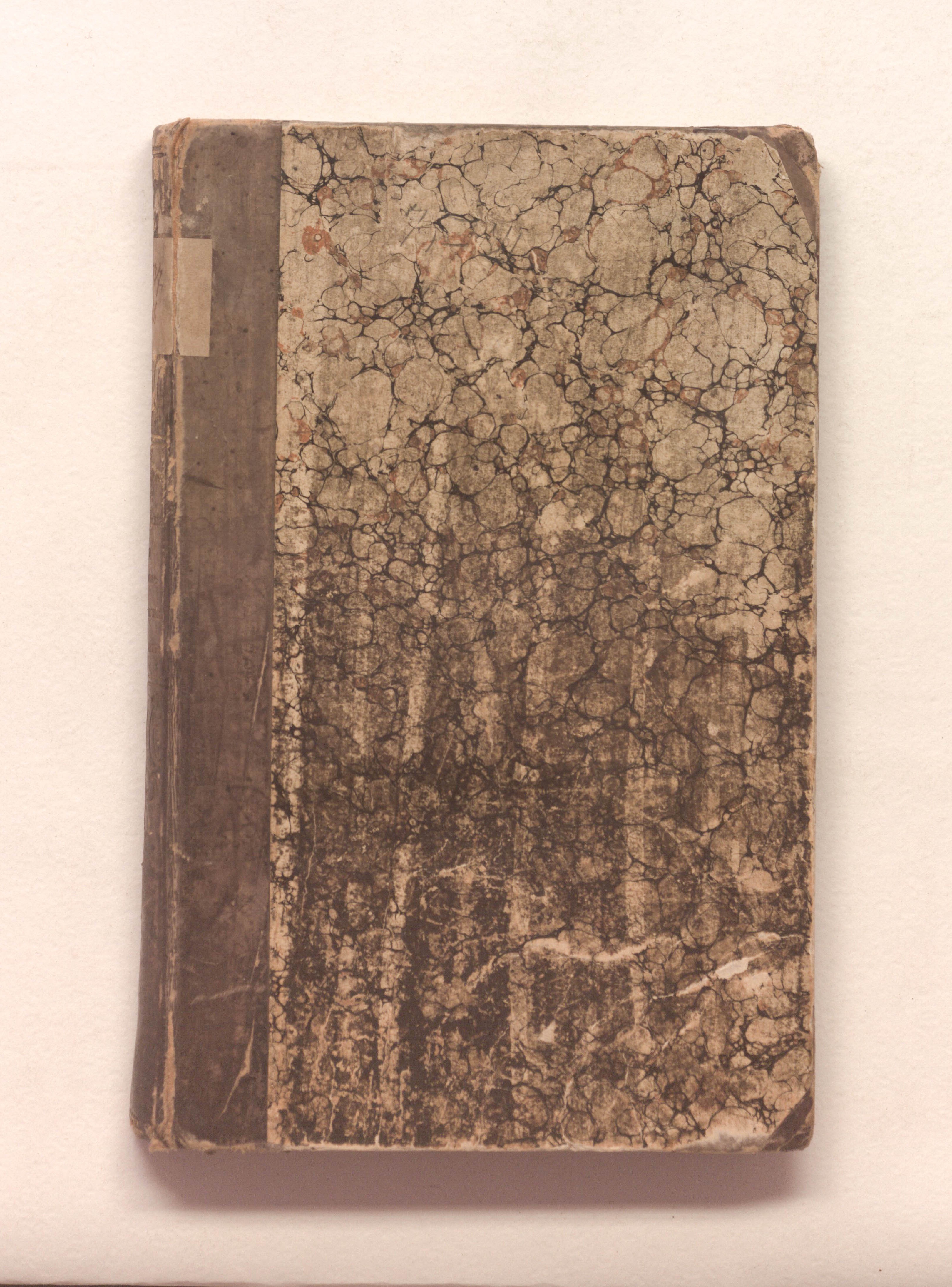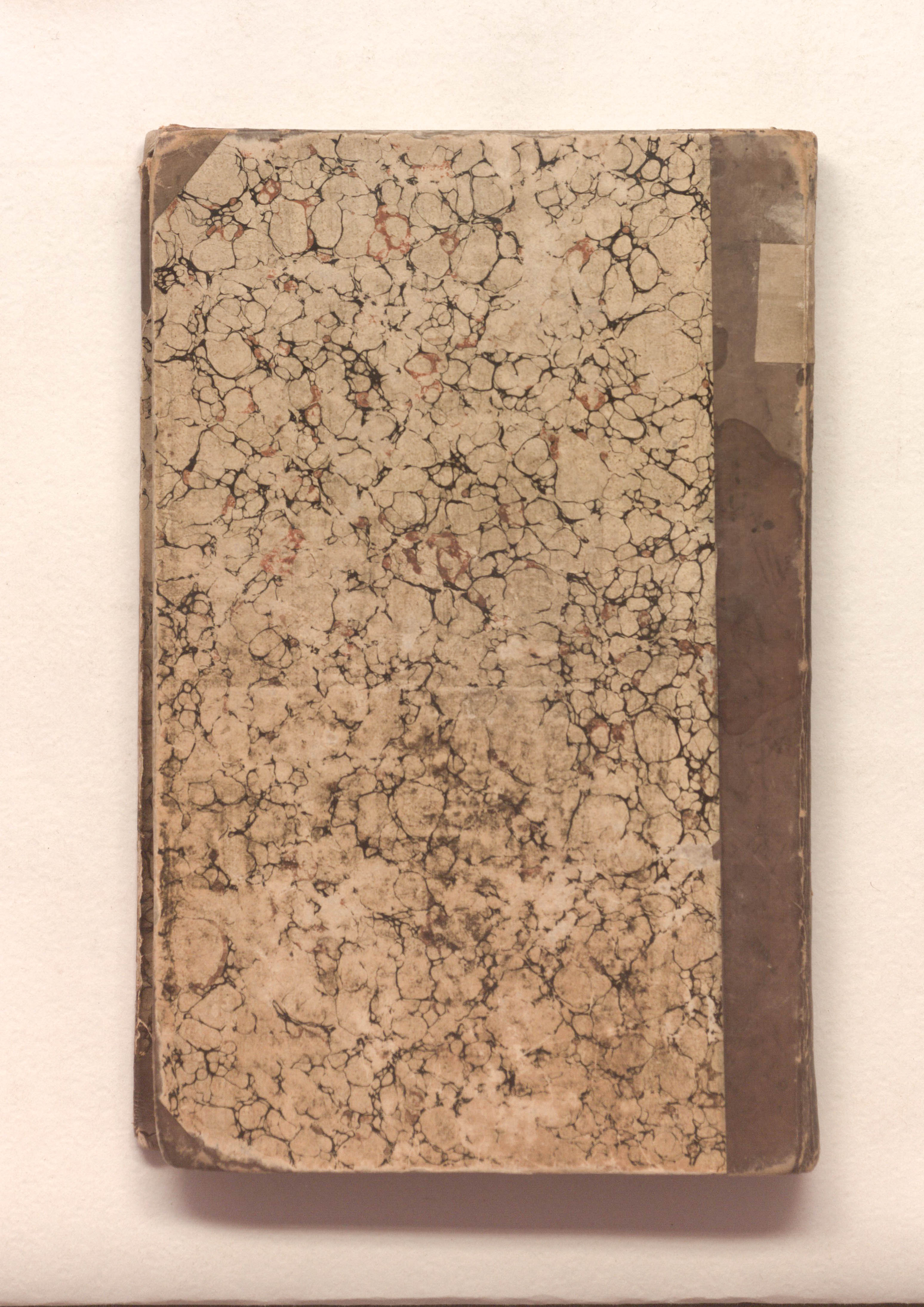 Книга в полукожаном владельческом переплете. Крышки переплета обтянуты бумагой с рисунком «под мрамор».