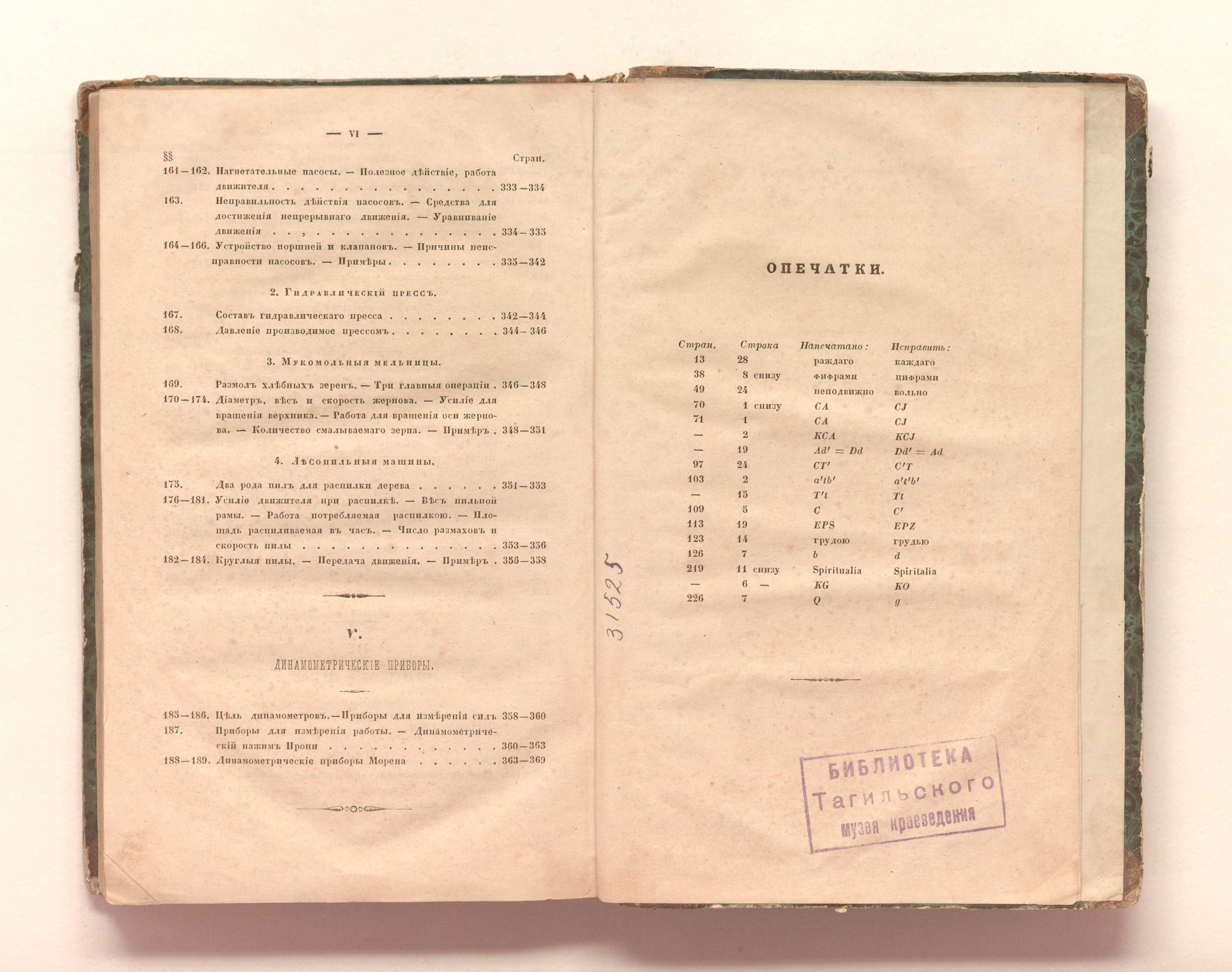«Библиотека Нижне-Тагильских заводов. Шкаф 10. Полка V. № 6.» (тит. л.);