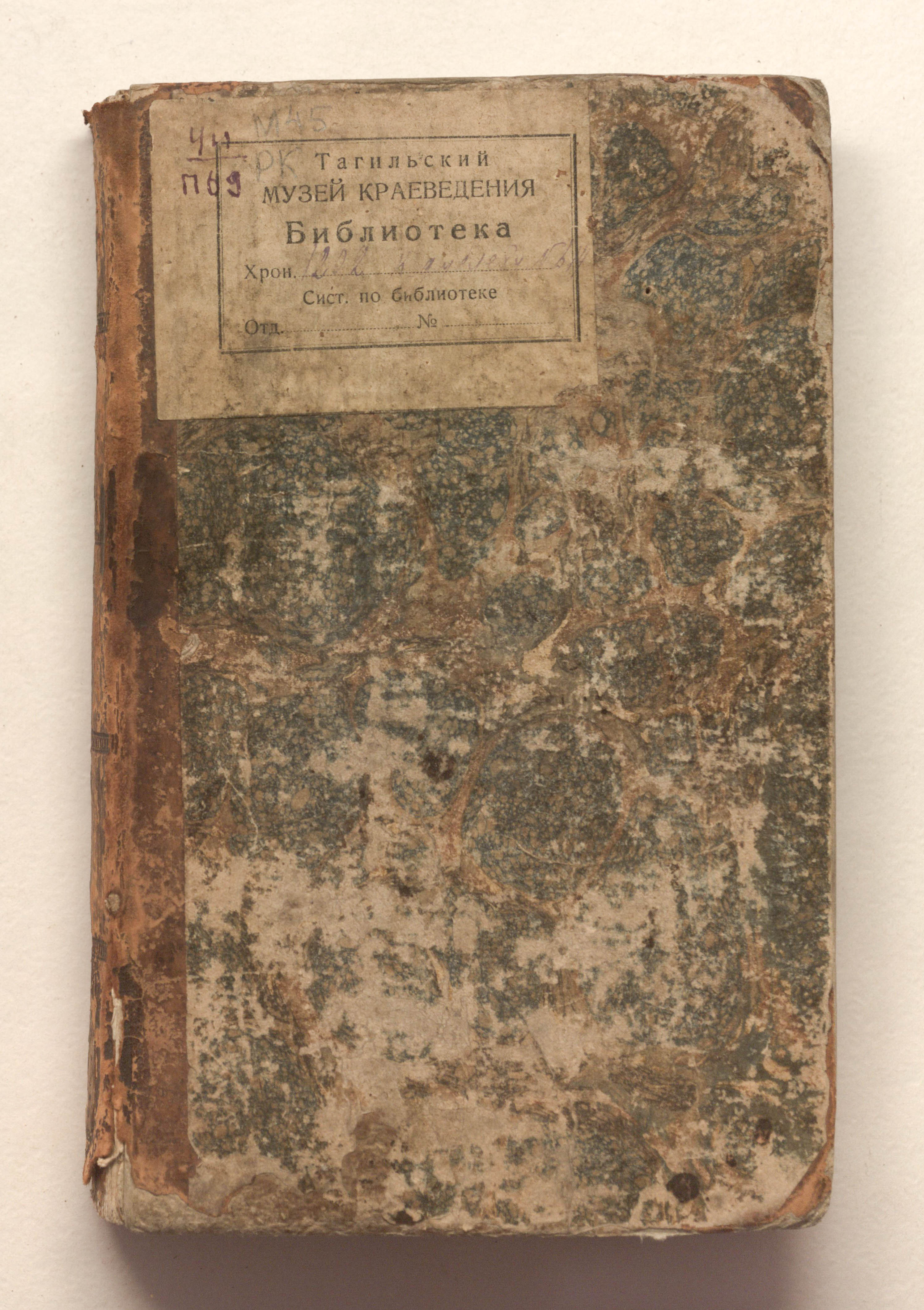 «Библиотека Нижне-Тагильских заводов. Шкаф 2. Полка V. № 8» (форзац);