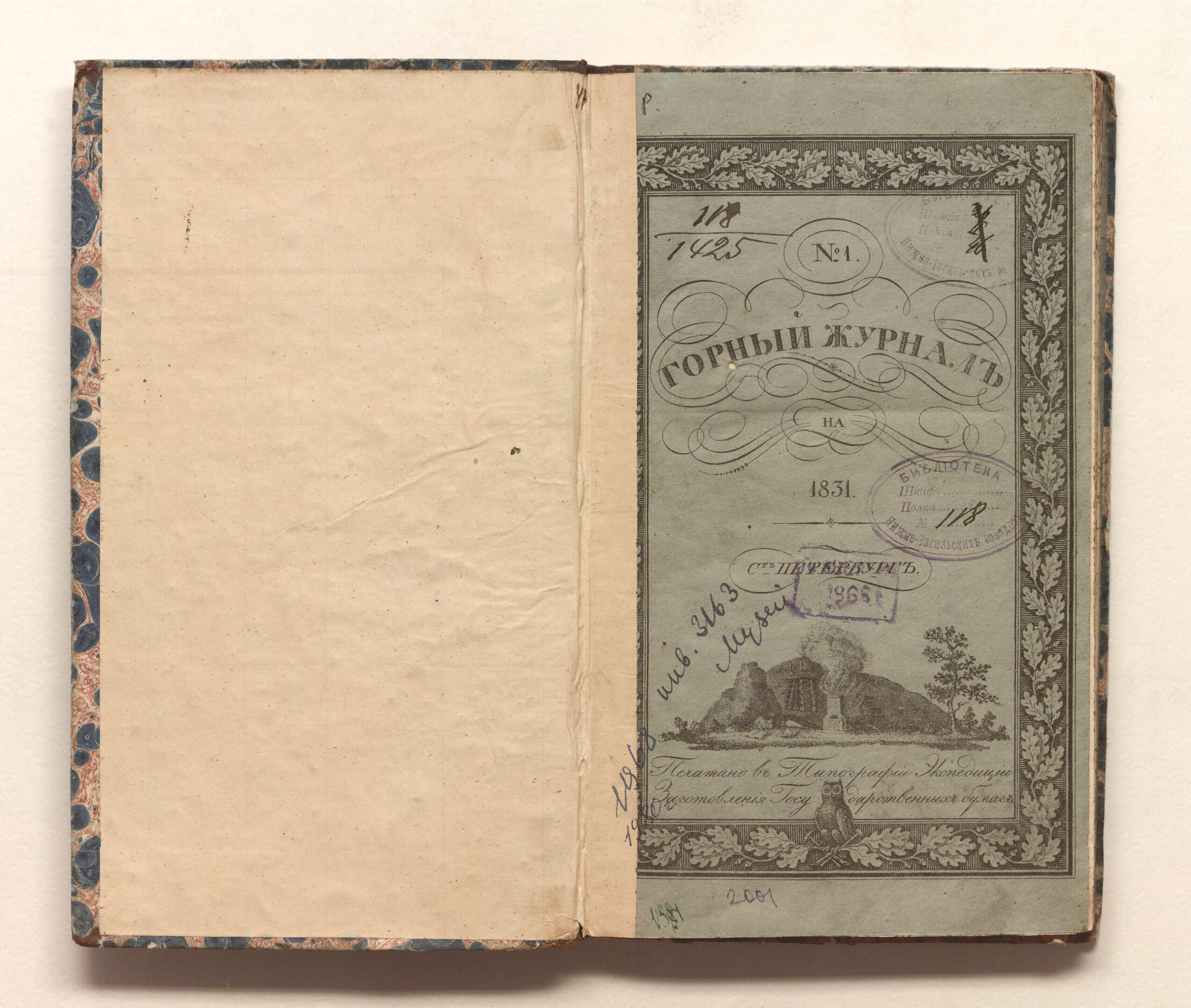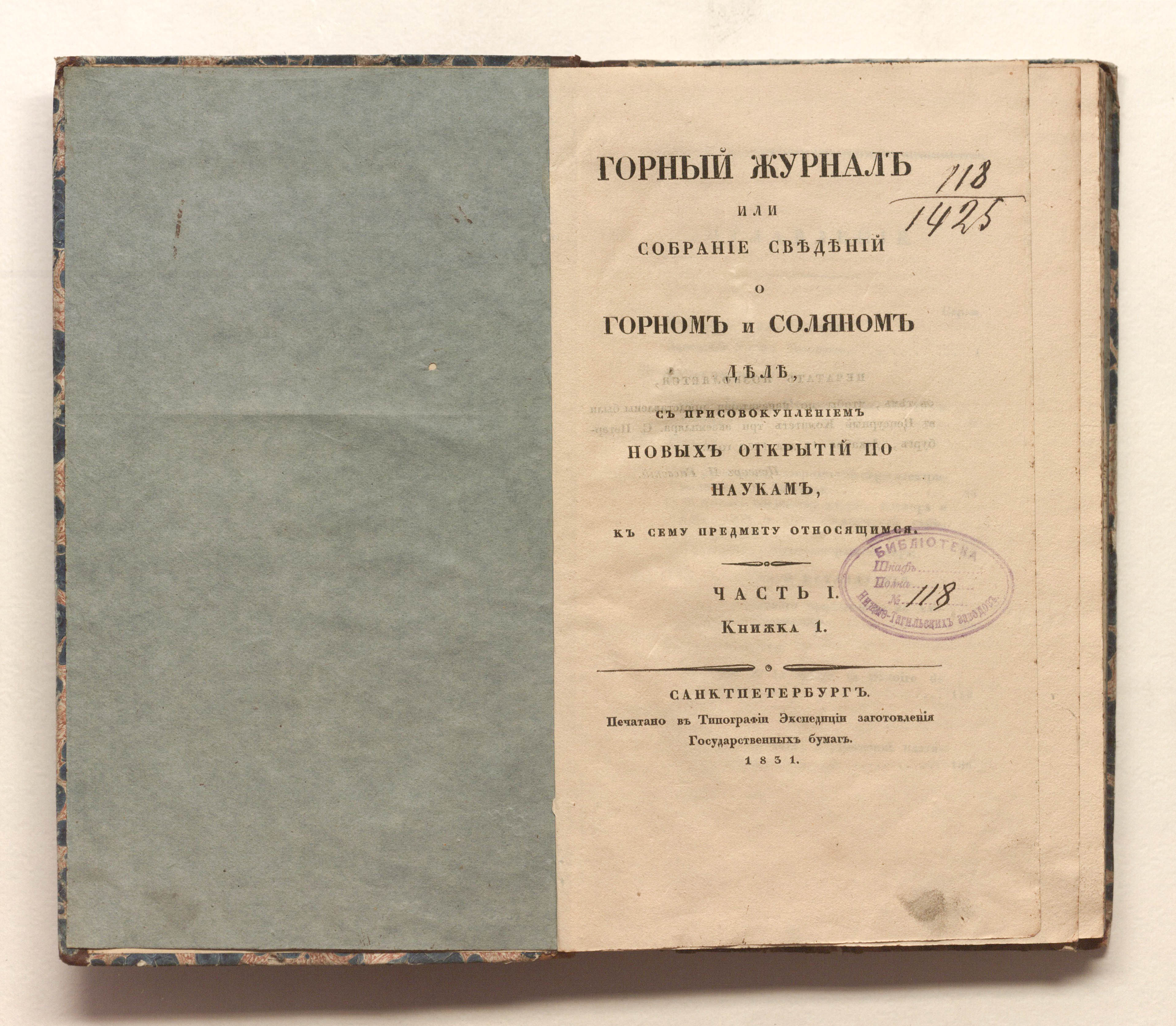 «Библиотека Нижне-Тагильских заводов. № 118» (изд. обл., тит. л.).