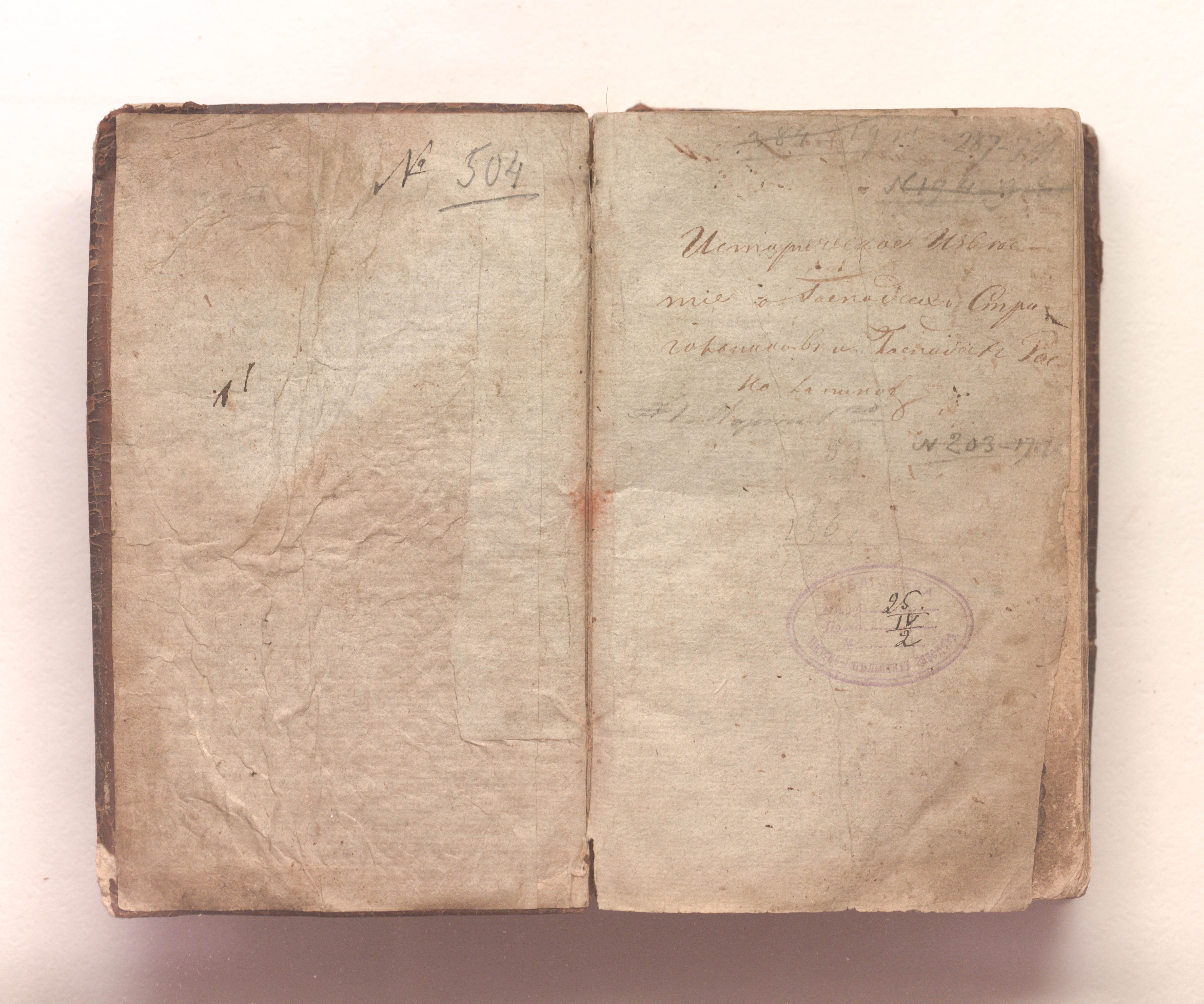 Штампы: «Библиотека Нижне-Тагильских заводов. Шкаф 25. Полка IV. № 2» (форзац); «И.М.Л. Библиотека г. Свердловск» (тит. л.).