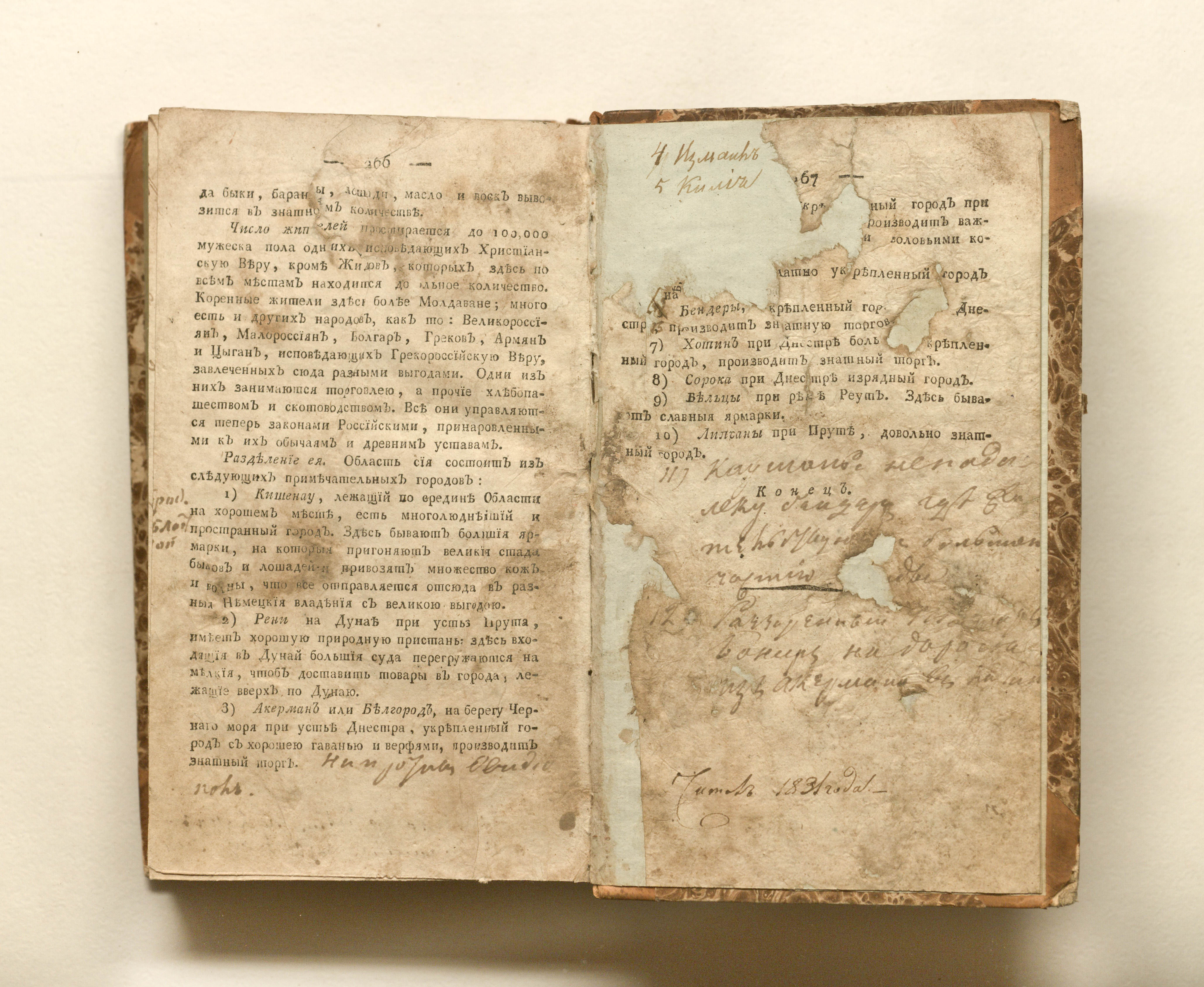 «Искажена и разобрана в наводнение 7 ноября 1824. вновь переплетена 1826 года. Меновщиков» (оборот форзаца);
